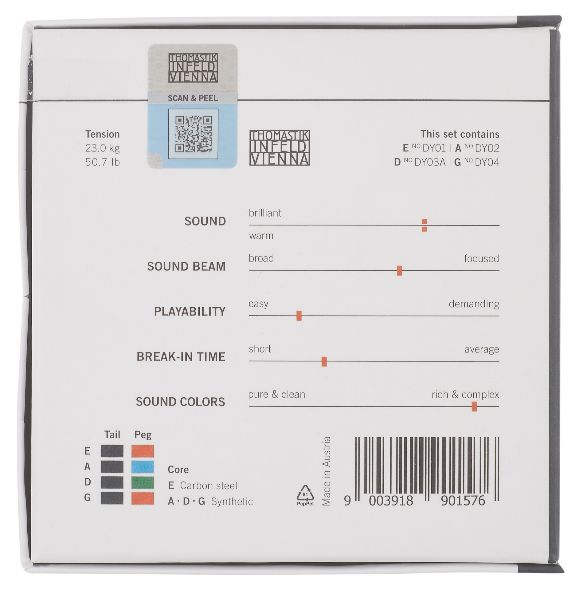 Husľové struny Husľové struny DYNAMO od spoločnosti Thomastik-Infeld kombinujú široký zvuk a vynikajúcu odozvu so schopnosťou modulovať tónové odtiene v celom dynamickom rozsahu. Tieto struny znejú skvele na starších aj novších nástrojoch a sú ideálne pre orchestrálnych hudobníkov, komorných hráčov a sólistov. Po jednom alebo dvoch dňoch od naťahovania struny naplno rozvinú svoj potenciál a dokážu zaujať nielen hudobníka, ale predovšetkým publikum.