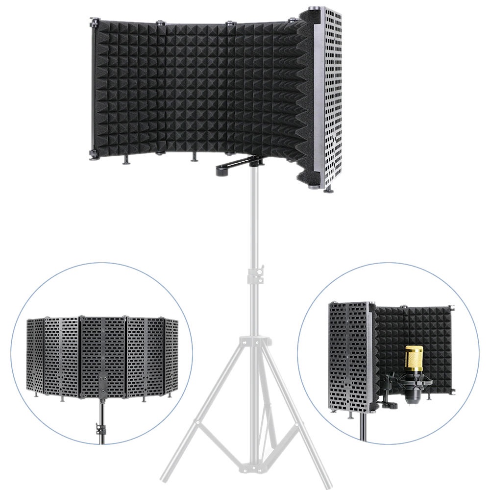 Akustický paraván Obrazovka mikrofónu na získanie čistého signálu bez nežiaduceho šumu a rušenia. Skvelé na nahrávanie vokálov, podcastov pre rádio alebo YouTube, čo určite ocenia mladí a začínajúci vlogeri. Vnútorná stena je vyrobená z vysokokvalitnej akustickej peny pohlcujúcej hluk a vonkajšia stena je pokrytá plastovým materiálom EVA na bezpečnú prepravu a skladovanie. Obrazovka sa skladá z piatich voľne nastaviteľných častí, takže ju môžete ľahko prispôsobiť svojim požiadavkám a preferenciám. Zásteru m