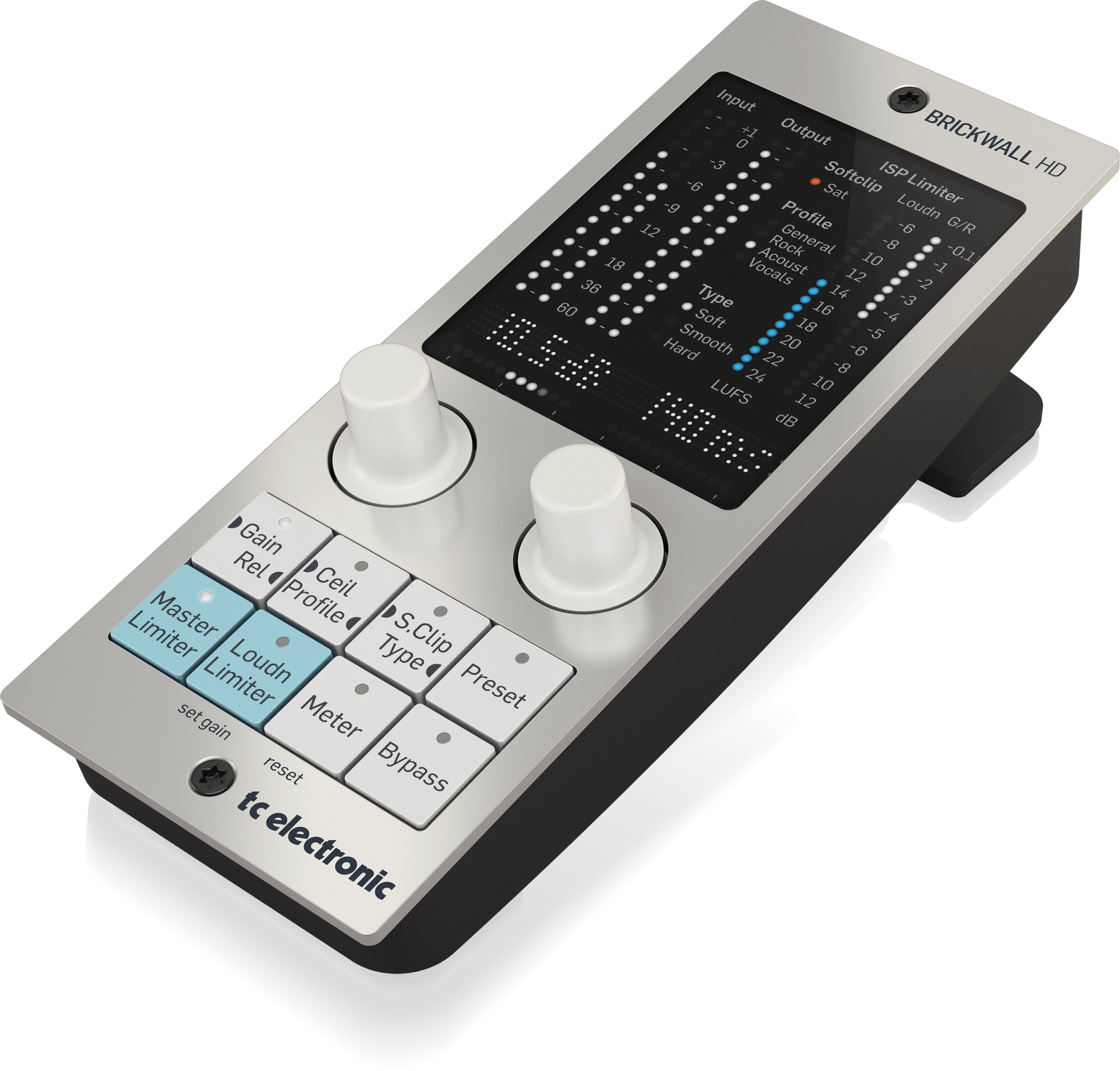 Kompresor, limiter, gate Vysoko výkonný limitér s integrovaným ovládačom pre softvér DAW vhodný na mastering vašich nahrávok. Získate komplexný nástroj na úpravu hlasitosti vášho zvukového signálu so zvukovou presnosťou, aby spĺňal štandardy streamovacích aplikácií, ako sú Spotify, Apple Music, SoundCLoud, Tidal a mnohé ďalšie. Zariadenie obsahuje aj algoritmus ISP s mimoriadne čistým a transparentným signálom, tri typy Soft Clip, prehľadný displej a intuitívny ovládací panel na úpravu váženého zvuku s abso