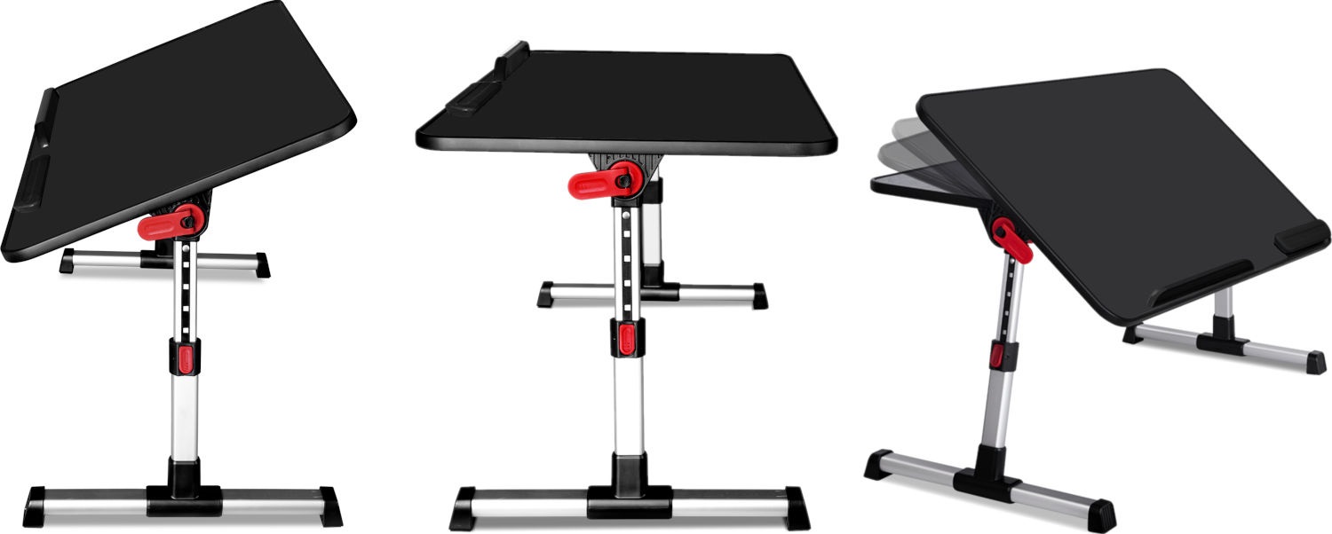 Stojan na notebook Vysoko kompaktný stôl na notebook vhodný pre všetkých hráčov a pracovníkov s počítačmi, ktorí radi pracujú z pohodlia gauča alebo vyhrievanej postele. Vďaka teleskopickej a nastaviteľnej konštrukcii budete mať vždy vzpriamenú polohu tela a chrbát vás nikdy nebude bolieť. Hlavná doska je vyrobená z odolného materiálu MDF a zmestia sa na ňu notebooky s veľkosťou až 17", navyše obsahuje zarážky pre maximálne zabezpečenie vášho zariadenia. Odolná hliníková konštrukcia je potom vybavená päťúro