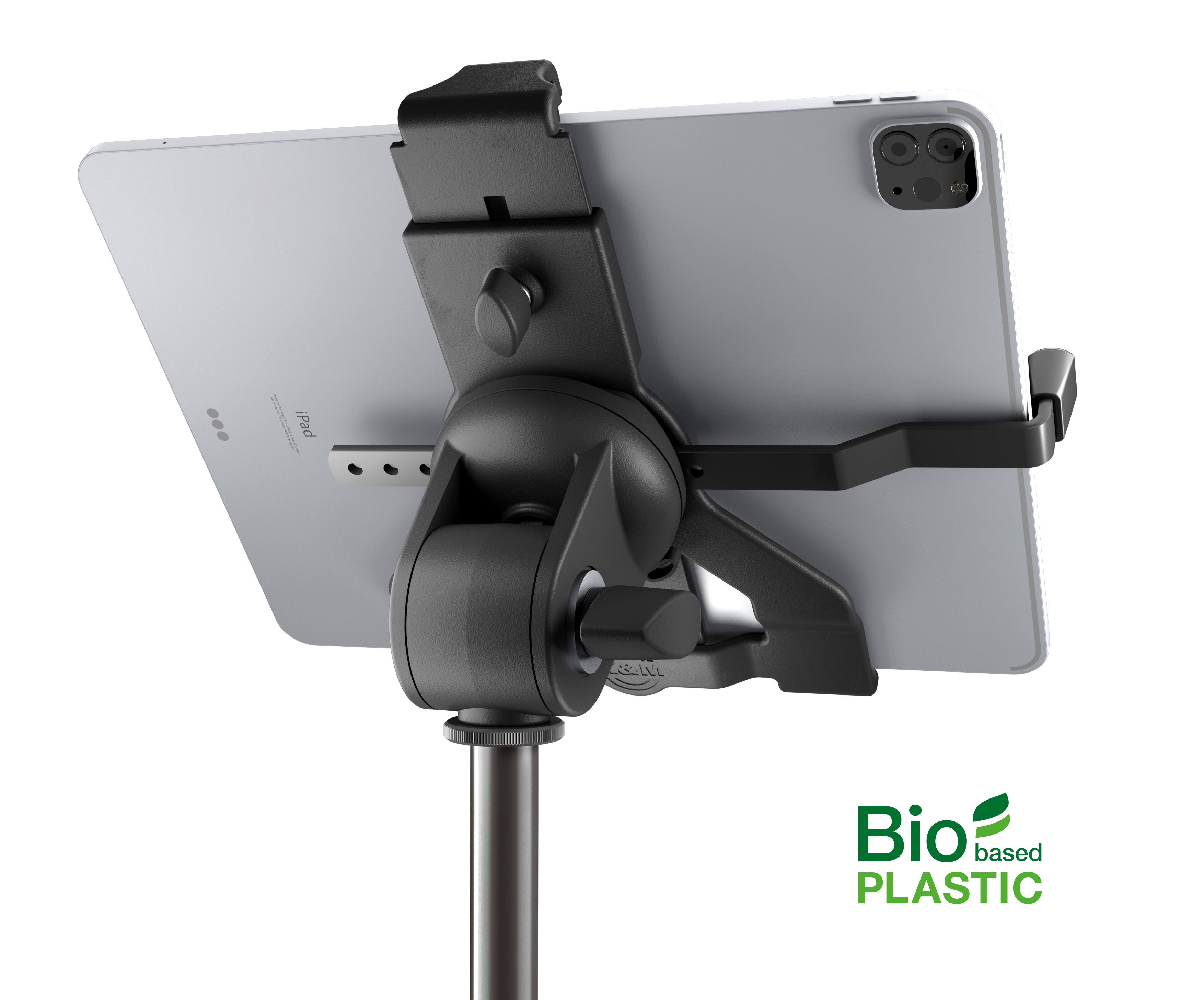 Držiak na tablet Univerzálny držiak na tablet s praktickým uzamykacím systémom pre maximálnu bezpečnosť vášho zariadenia a výškovo nastaviteľným stojanom. Držiak je vyrobený z kombinácie recyklovaného plastu a ocele a má aj skvelé antivibračné vlastnosti, takže ho môžete používať nielen v štúdiu, ale aj počas hlasných živých vystúpení. Držiak je vhodný pre tablety s veľkosťou 10 – 16 palcov. Držiak má tiež nastaviteľnú výšku 158 – 280 mm a nastaviteľnú šírku 150 – 330 mm.