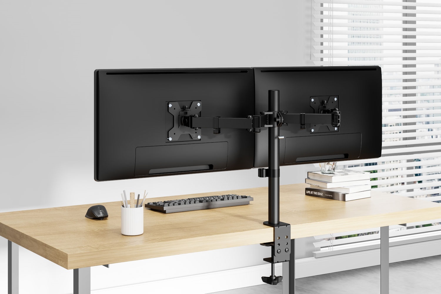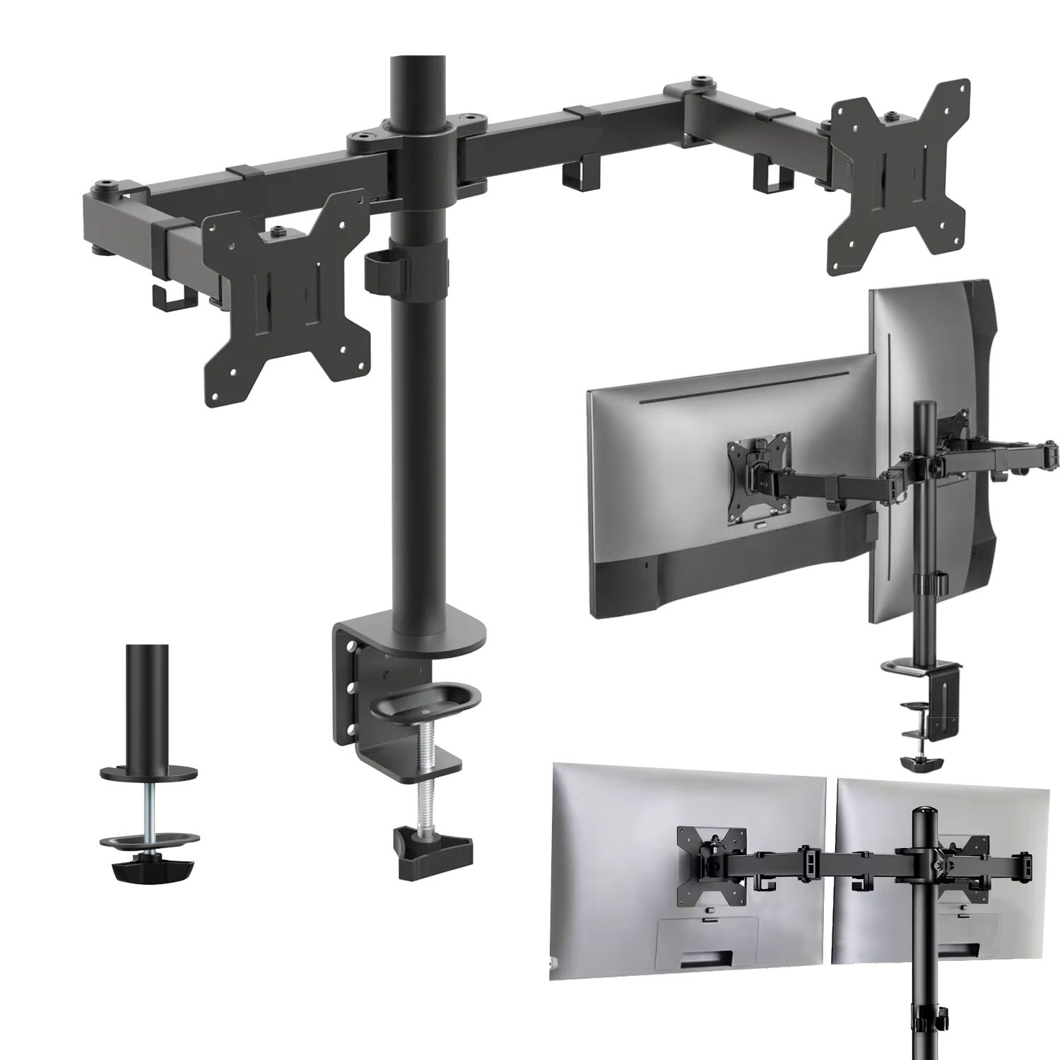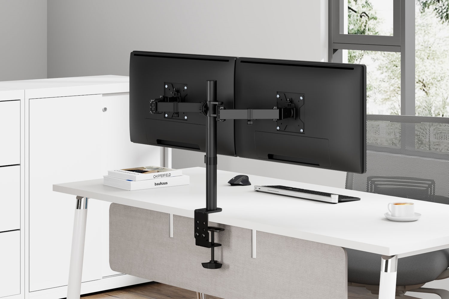 Držiak Ak máte radi poriadok na pracovnom stole alebo bojujete s každým centimetrom pracovného priestoru, pretože na svoju prácu potrebujete dva monitory LCD, potom by pre vás mohol byť tým správnym riešením profesionálny dvojitý držiak na stôl. Model Mozos MS3 v sebe spája funkčnosť, ergonómiu a moderný dizajn. Je určený pre 2 monitory s uhlopriečkou 17 – 32" a umožňuje úplnú voľnosť pri nastavovaní obrazoviek, čím zvyšuje pohodlie pri práci a organizáciu priestoru. Vďaka