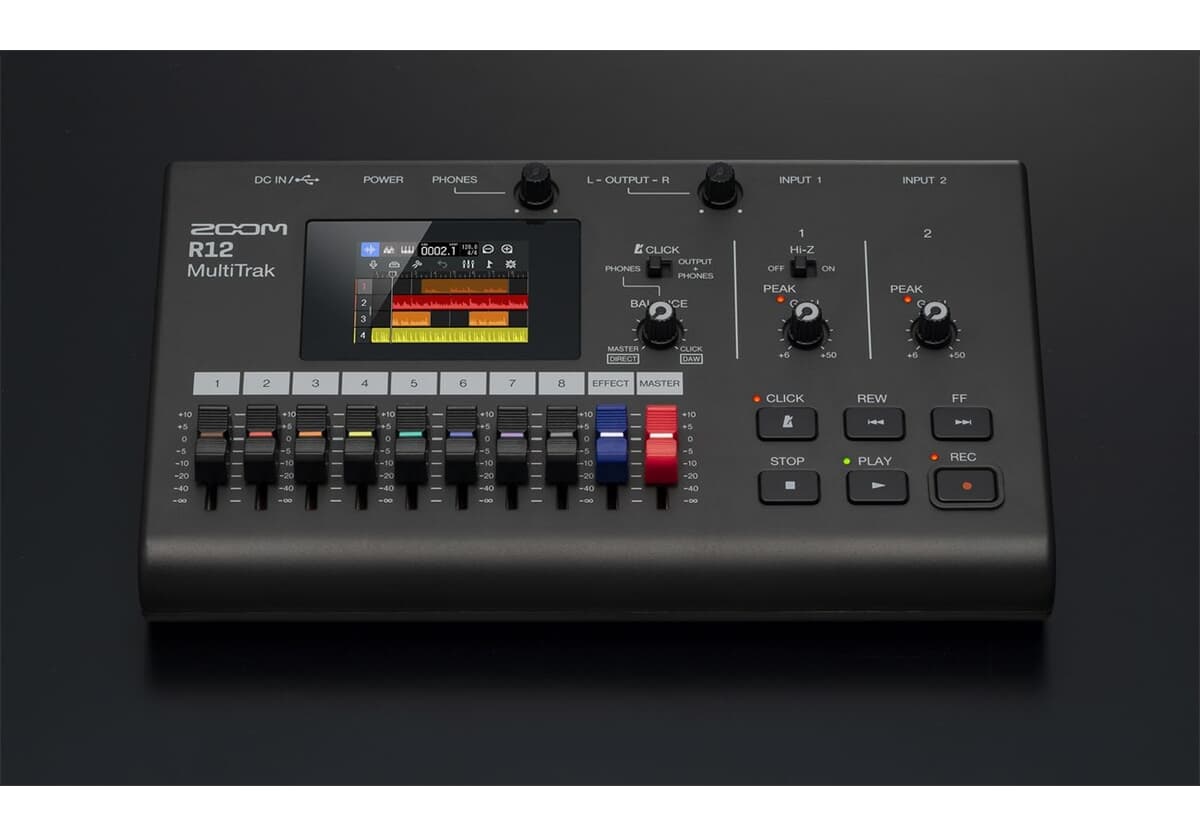 Multistopový rekordér Viacstopý rekordér Zoom R12 je určený pre hudobníkov, ktorí žijú hudbou a chcú mať možnosť nahrávať svoje nápady kdekoľvek. Kompaktný Zoom R12 ponúka možnosť nahrávať a mixovať skladby bez notebooku alebo počítača. Jednoducho použite farebný 2,4" dotykový LCD displej na kopírovanie, vytváranie slučiek, úpravu alebo vymazanie svojich výtvorov podľa ľubovôle. Zoom R12 má mimoriadne čisté predzosilňovače a jeho zvuk si jednoducho zamilujete. S dvoma vstupmi XLR/TRS a ôsmimi zvukovými stop
