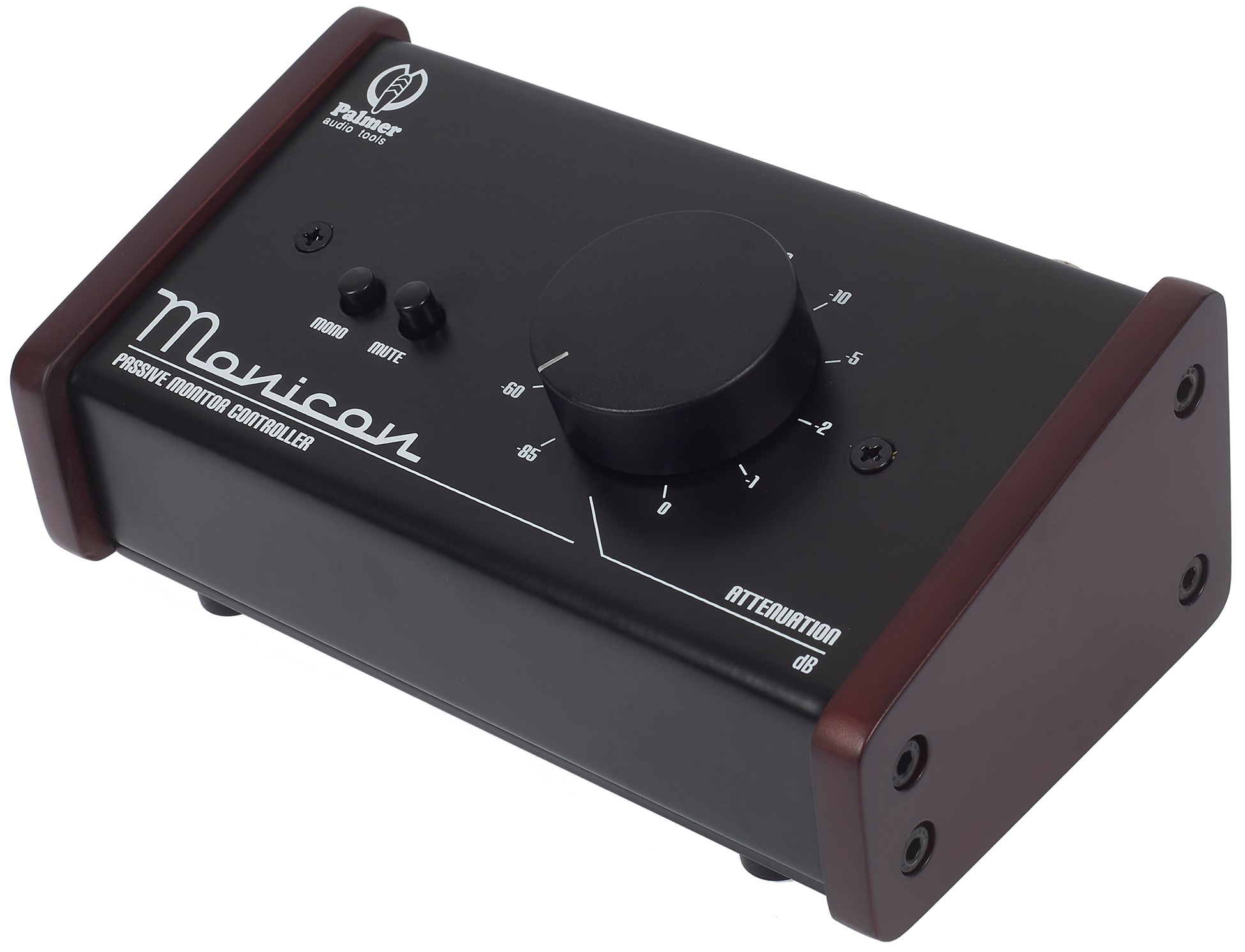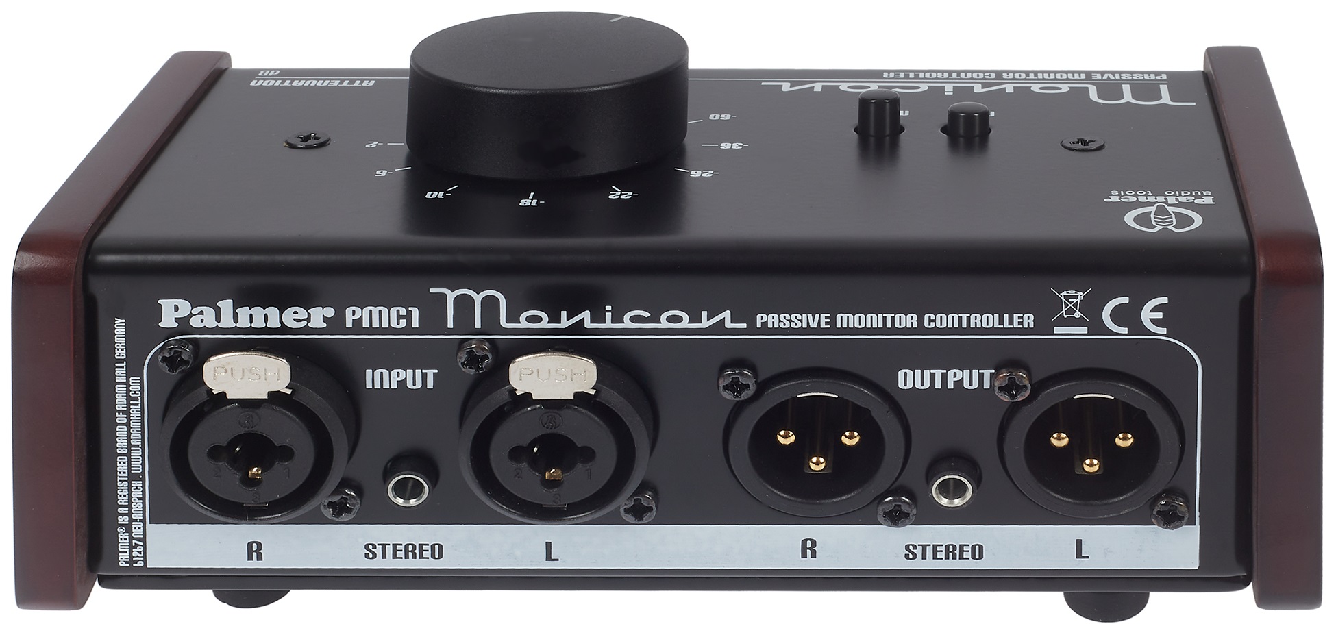 Ovládač štúdiových monitorov So zariadením Palmer Monicon máte vždy pod kontrolou hlasitosť svojich monitorov. Pasívny minimixér s možnosťou pripojenia stereo výstupu notebooku , počítača alebo zvukového rozhrania umožňuje pohodlné a presné ovládanie hlasitosti monitorov z vášho pracovného stola. Tlačidlá Mute a mono umožňujú vypnúť výstupy a zlúčiť stereo výstupný signál s hlavným mono signálom. Maximálna výstupná úroveň: 20 dB Výstupná impedancia: 600 Ohm(ov) Frekvenčný rozsah: 10 – 40000 Hz Skreslenie TH