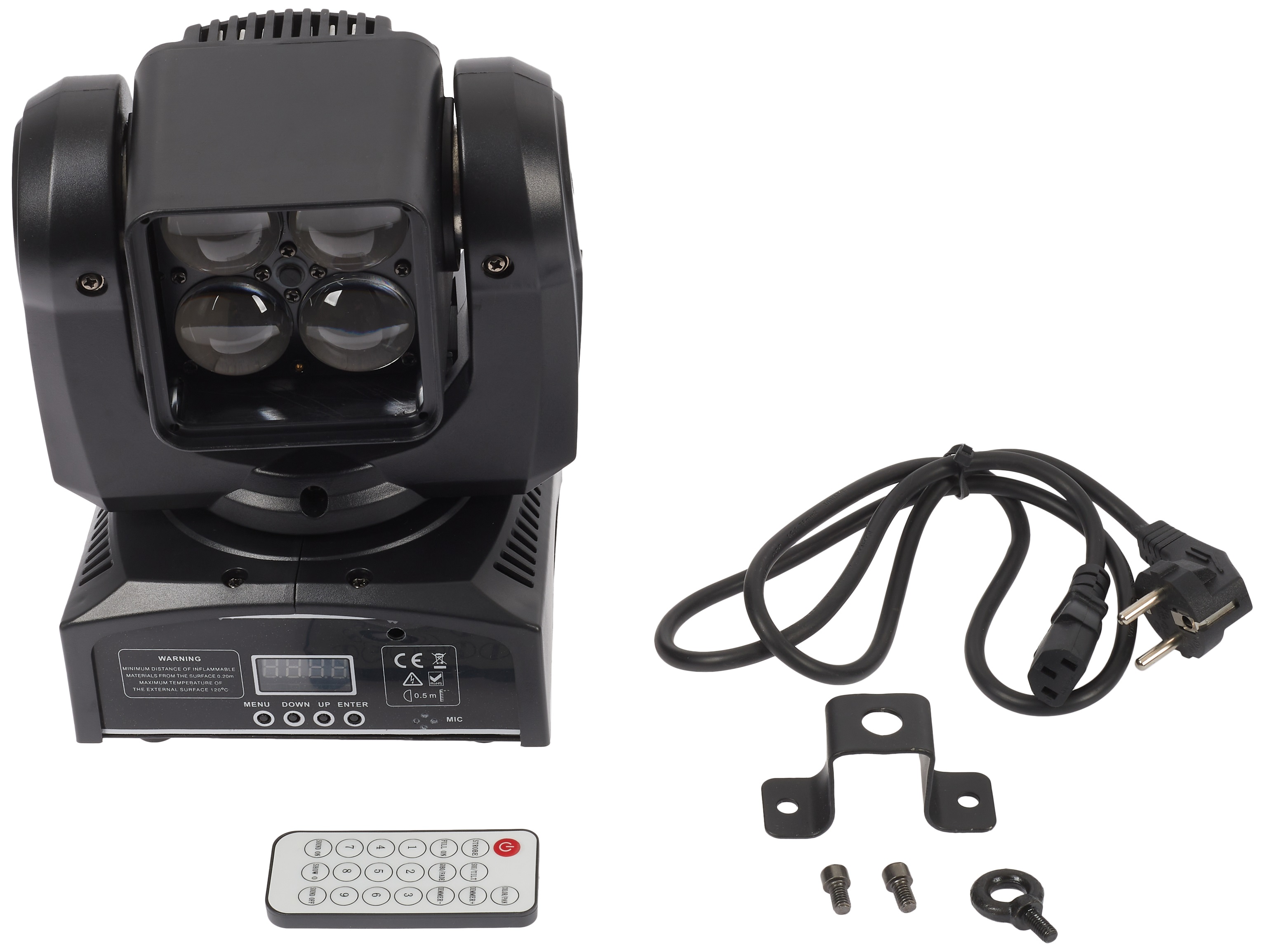 Inteligentná hlava Táto rotačná hlava od spoločnosti Flash je vybavená štyrmi 15W LED OSRAM RGBW, ktoré poskytujú rôznorodú paletu farieb. Zároveň využíva všetky výhody technológie LED, ako je úspora energie, nízka produkcia tepla a dlhá životnosť. Kľúčovou vlastnosťou tohto svietidla je funkcia zoomu, ktorá umožňuje flexibilne meniť uhol lúča od 10° do 60°, takže môžete ovplyvniť mäkkosť osvetlenia. Nízka hmotnosť a malé rozmery svietidla umožňujú jeho inštaláciu takmer kd