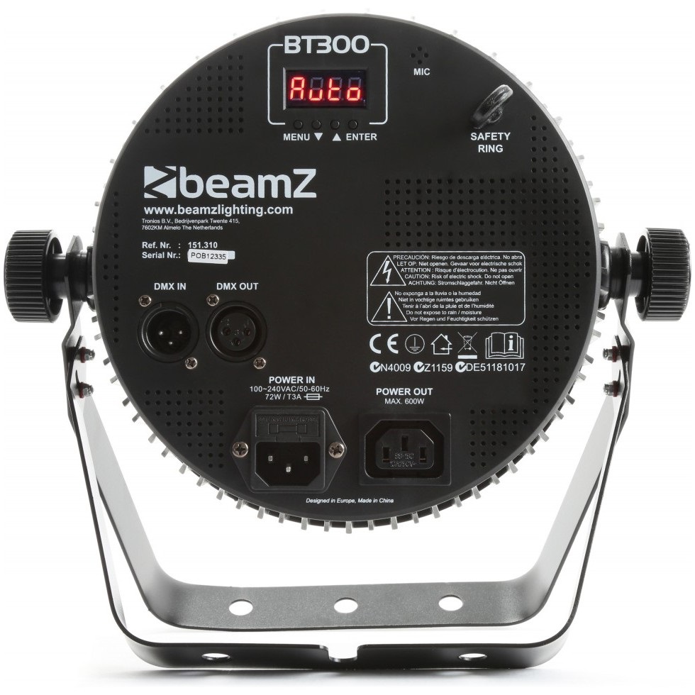 LED PAR reflektor BT300 Flat PAR RGBWA-UV od spoločnosti beamZ je prenosný LED PAR reflektor navrhnutý tak, aby bol čo najkompaktnejší, čo z neho robí ideálne zariadenie pre všetkých hudobníkov, DJ-ov a osvetľovačov, ktorí veľa cestujú so svetlami. Je však skvelý aj na pevné inštalácie. Reflektor je vybavený dvanástimi 10W LED diódami RGBWA + UV 6v1, ktoré poskytujú takmer nekonečné možnosti miešania a vytvárania rôznych farebných odtieňov. Súčasťou je aj ultrafialové svetl