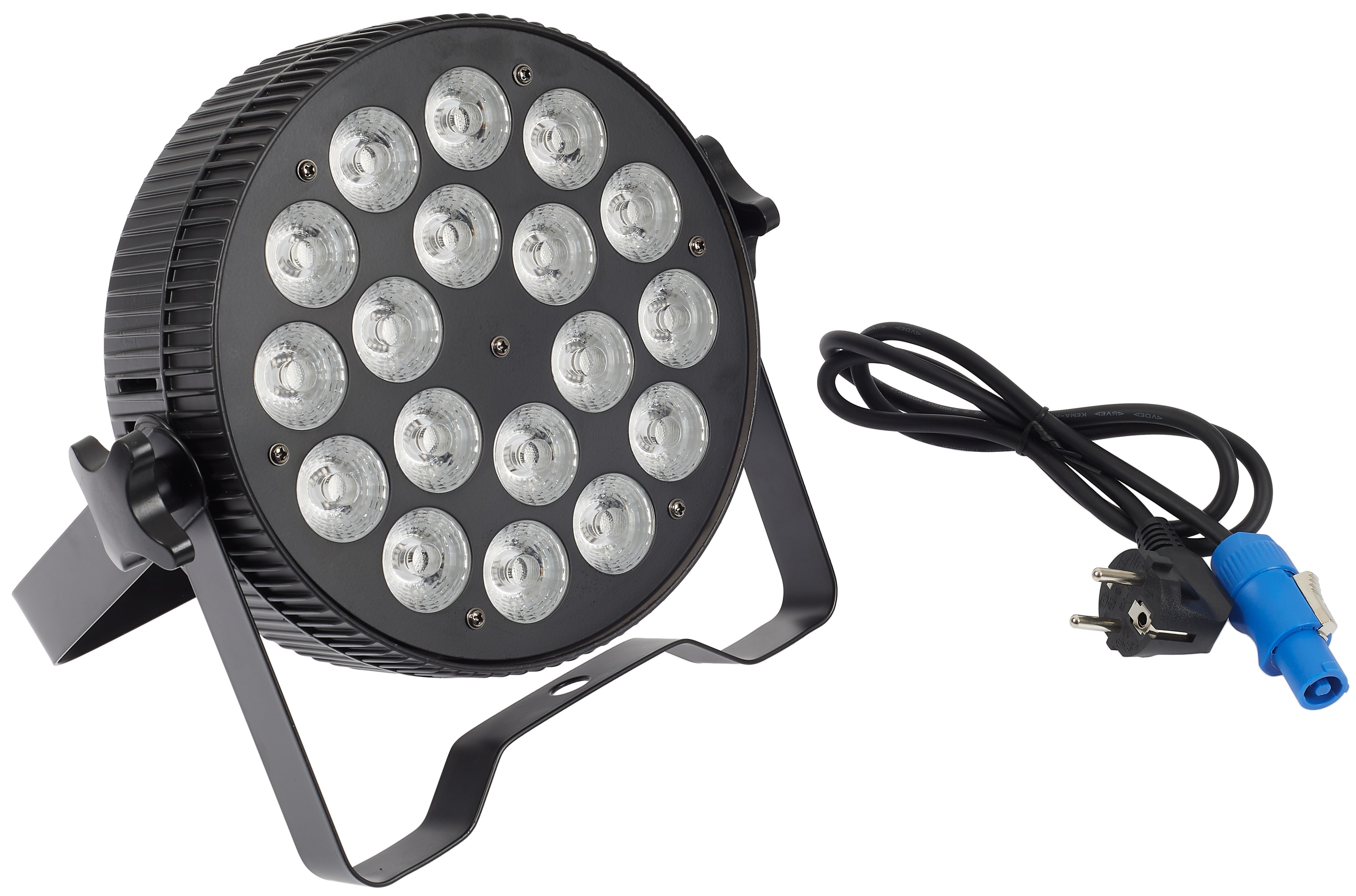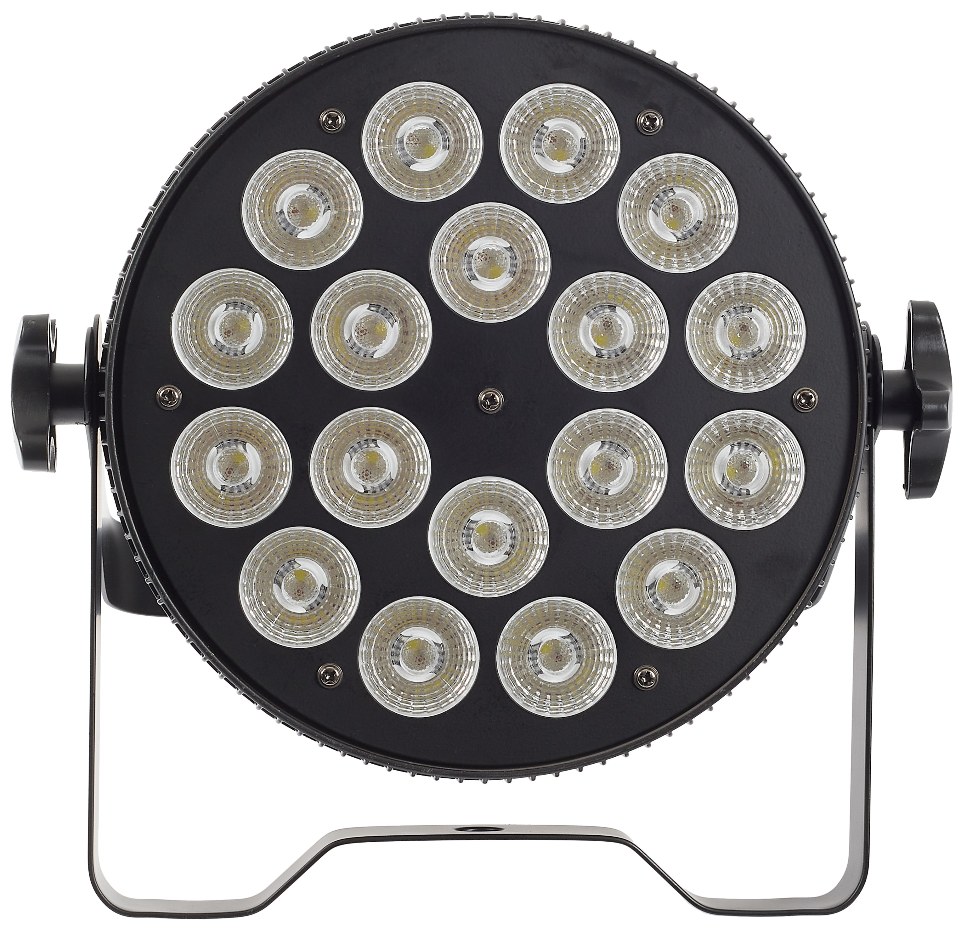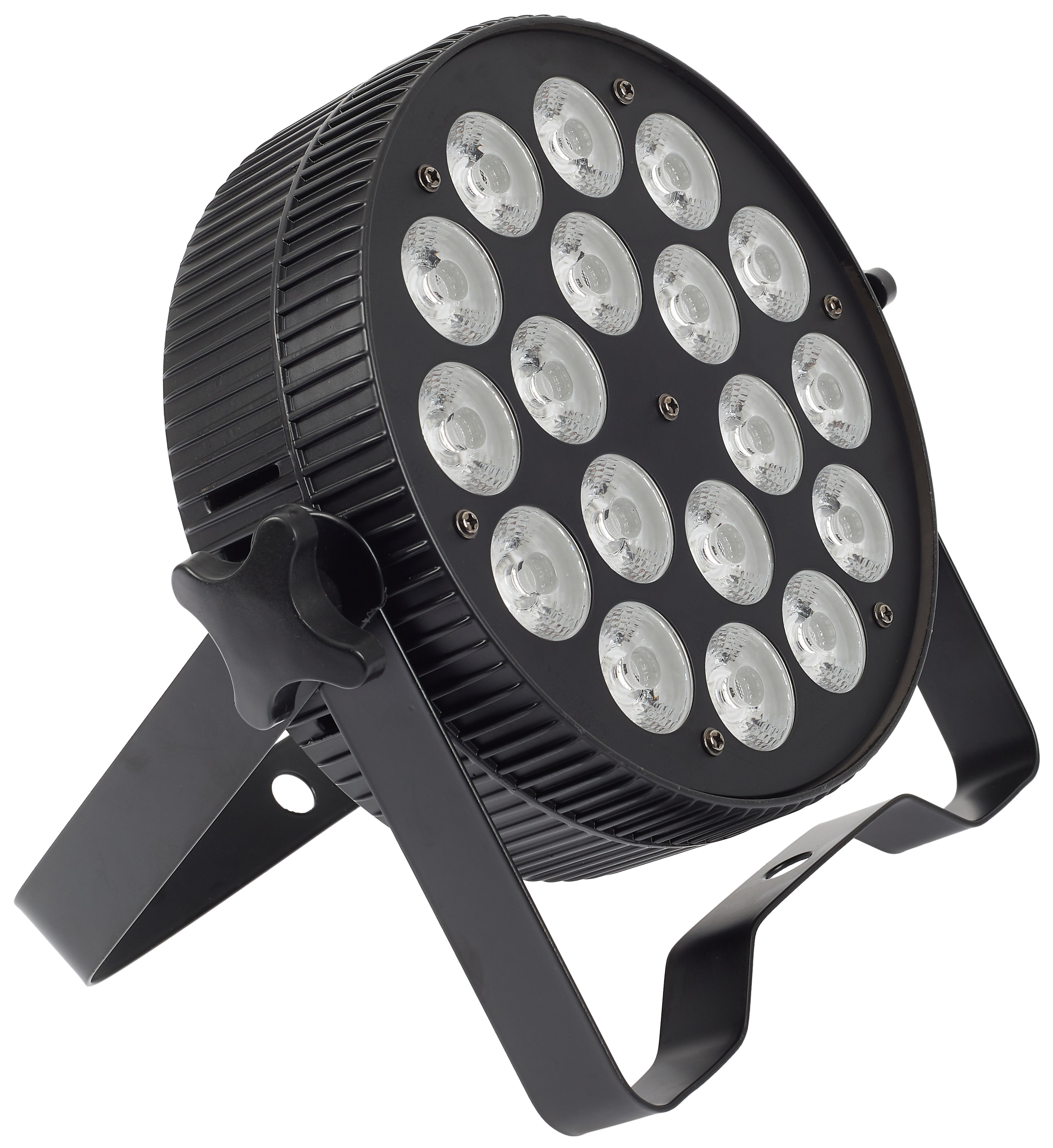 LED PAR reflektor Tento reflektor LED PAR od spoločnosti Flash je ideálny na osvetlenie menších koncertov, tanečných vystúpení a iných podobných podujatí. Vďaka jeho kompaktným rozmerom a nízkej hmotnosti (255 x 255 x 80 mm, 2,2 kg) ho ocenia aj cestujúci osvetľovači a dídžeji, ktorí hľadajú svietidlo na mobilnú zábavu. Jeho zdrojom svetla je osemnásť 10W RGBW (4v1) LED diód, ktoré poskytujú širokú škálu farieb na vytvorenie rôznych odtieňov. K dispozícii je aj stmievač sve