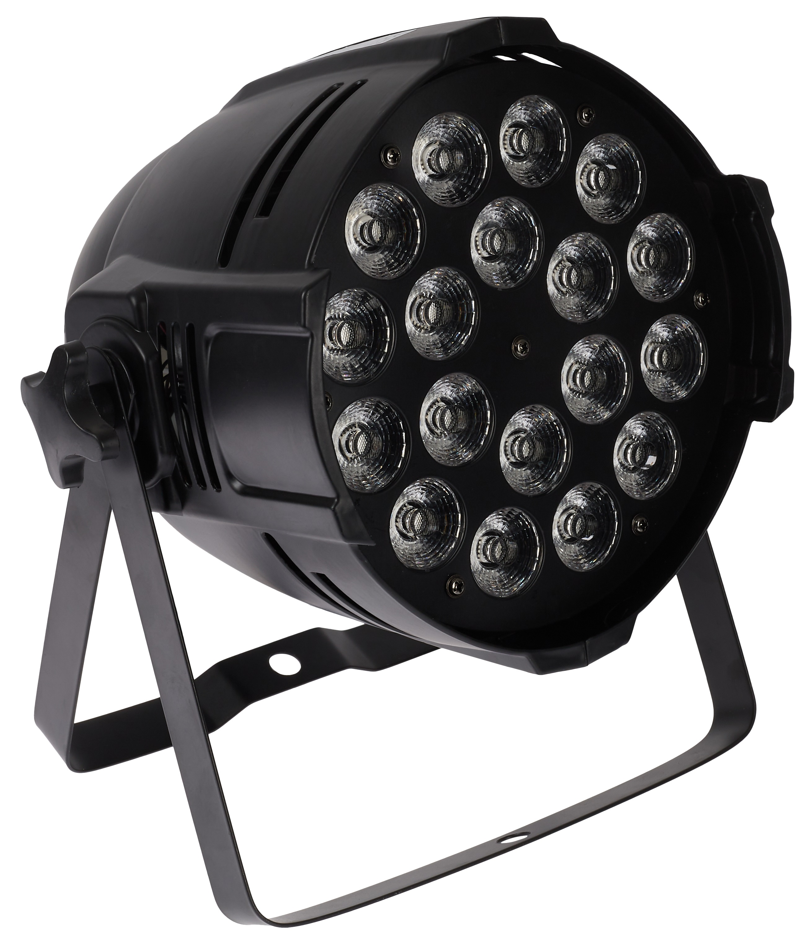 LED PAR reflektor Tento reflektor LED PAR od spoločnosti Flash je ideálny na osvetlenie menších koncertov, tanečných vystúpení a iných podobných podujatí. Vďaka jeho kompaktným rozmerom a nízkej hmotnosti (220 x 270 x 300 mm, 2,2 kg) ho ocenia aj cestujúci osvetľovači a dídžeji, ktorí hľadajú svietidlo na mobilnú zábavu. Jeho svetelným zdrojom je osemnásť 10W RGBW (4v1) LED diód, ktoré poskytujú širokú škálu farieb na vytvorenie rôznych odtieňov. K dispozícii je aj stmievač