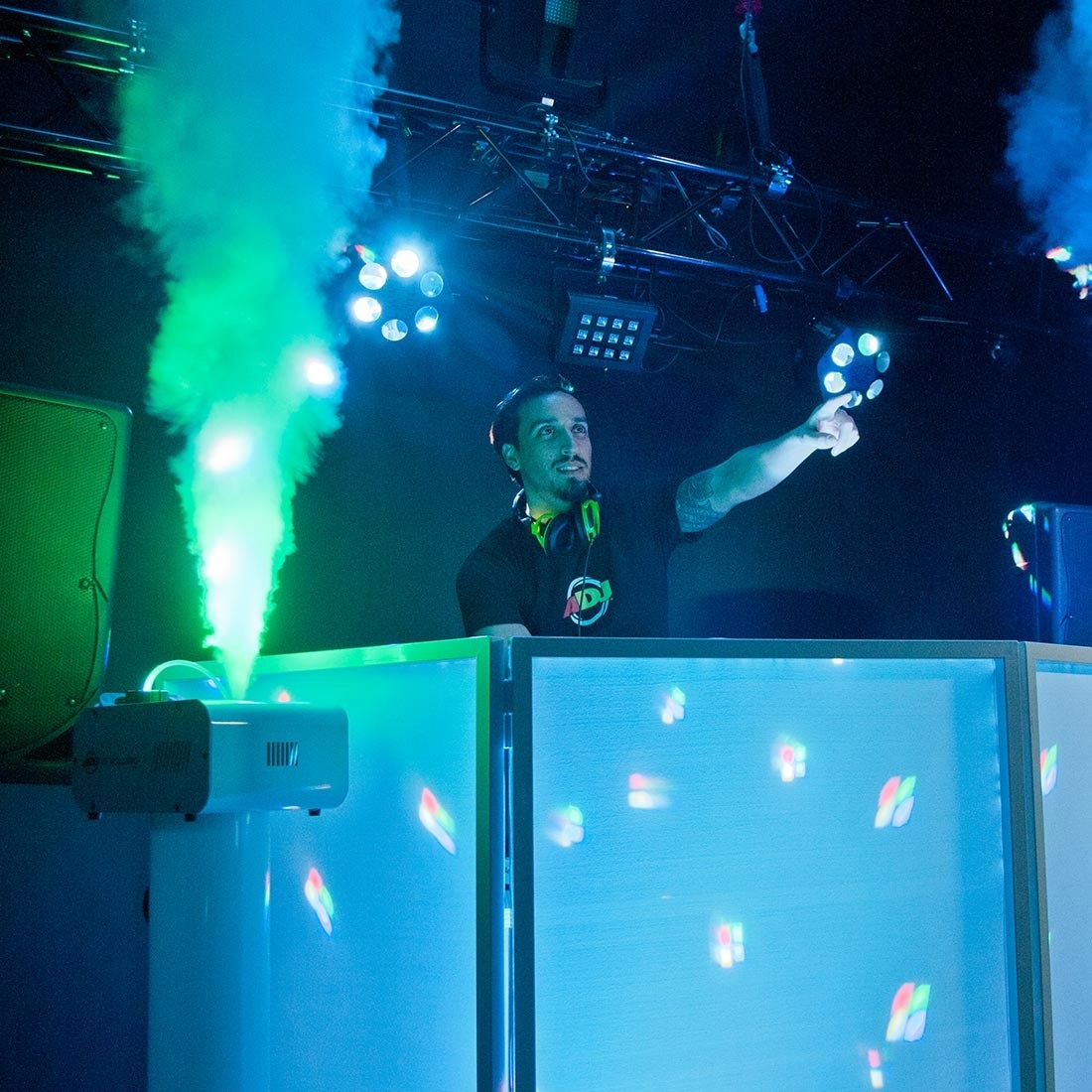 Výrobník hmly s LED VF Volcano od spoločnosti ADJ Eliminator je vertikálne podsvietený výrobník hmly s LED diódami, ktorý dodáva hmle farbu vďaka šiestim 3W RGB (červená, zelená, modrá) LED diódam. Prvotné zahriatie výrobníka na prevádzkovú teplotu trvá približne 6 minút. Jeho vykurovacie teleso poskytuje výkon 750 W a je vybavené revolučnou technológiou, ktorá mu umožňuje vytvárať suché, rovnomerné oblaky hmly vo výške viac ako 4 metre. Kapacita zásobníka