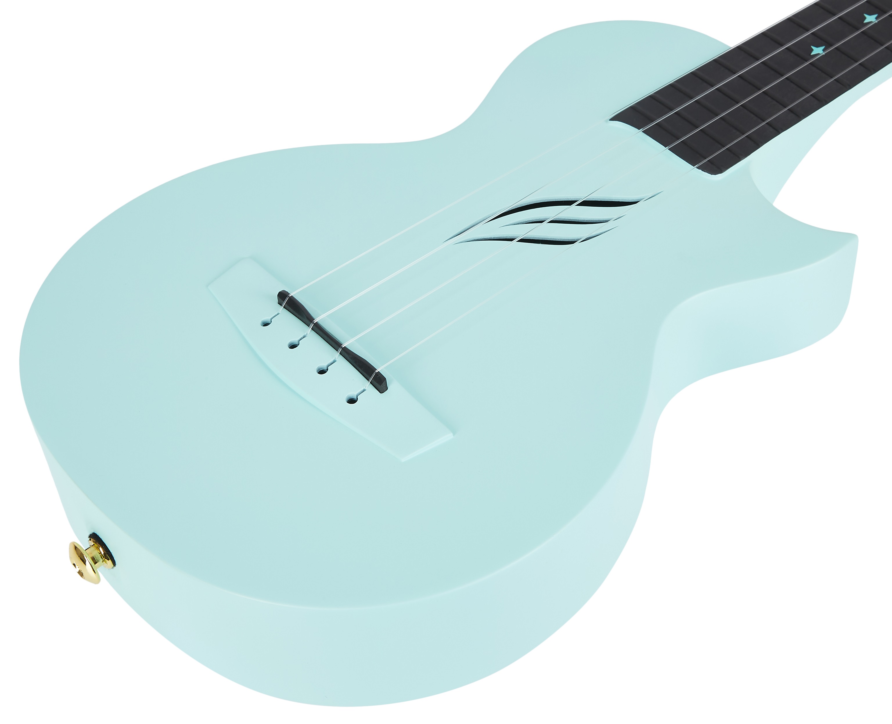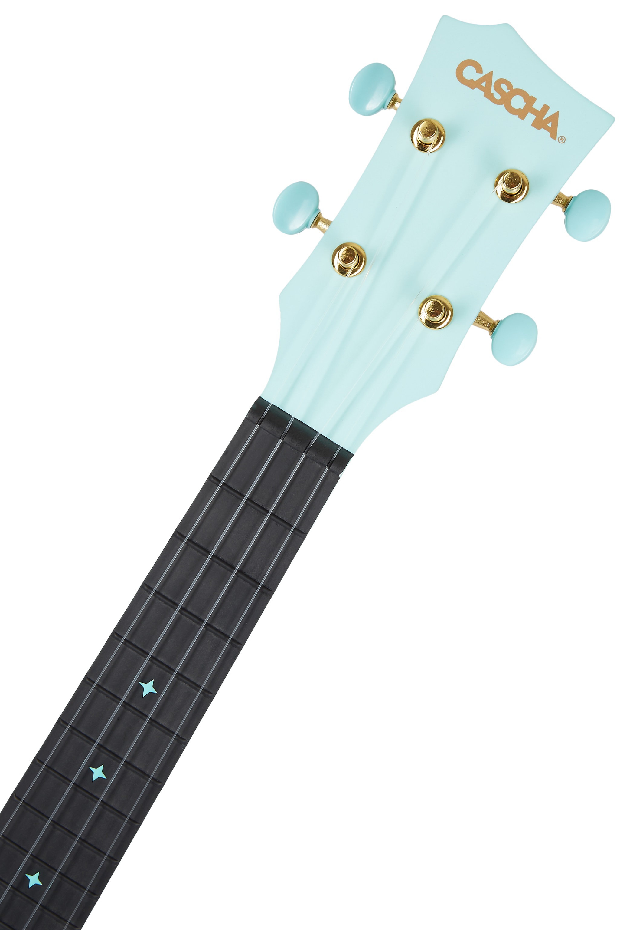 Akustické ukulele Toto koncertné ukulele Cascha je vyrobené z plastu vystuženého uhlíkovými vláknami (polykarbonát) od tela až po hlavicu. Vďaka tomu ponúka vysokú odolnosť voči vonkajším vplyvom a poškodeniu aj pri nízkej hmotnosti – a iný, čistejší zvuk v porovnaní so štandardnými drevenými ukulele (k tomu prispieva aj prídavný bočný zvukový otvor). Moderný dizajn nástroja s nižším výrezom tela ponúka dobrú poddajnosť hmatníka aj pri vyšších polohách pražcov. Dobré ladenie fluorokarbónových strún zaručuje