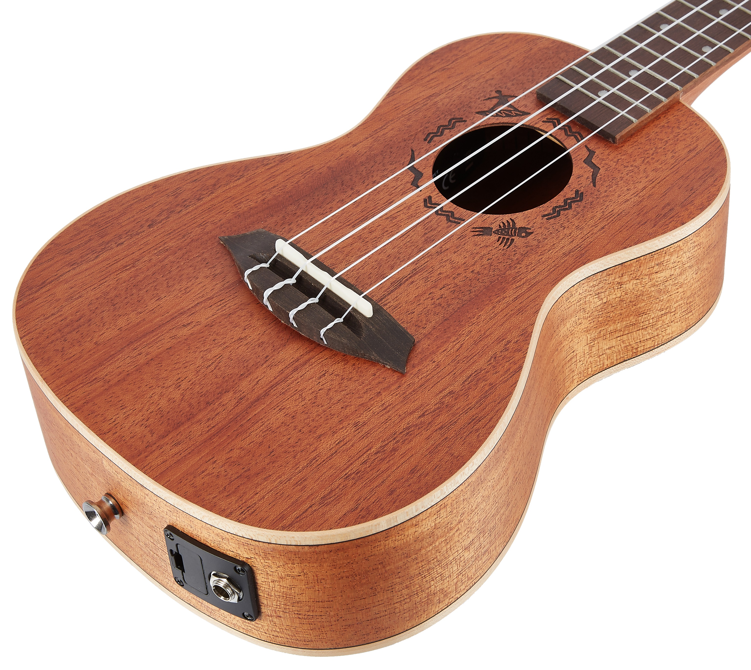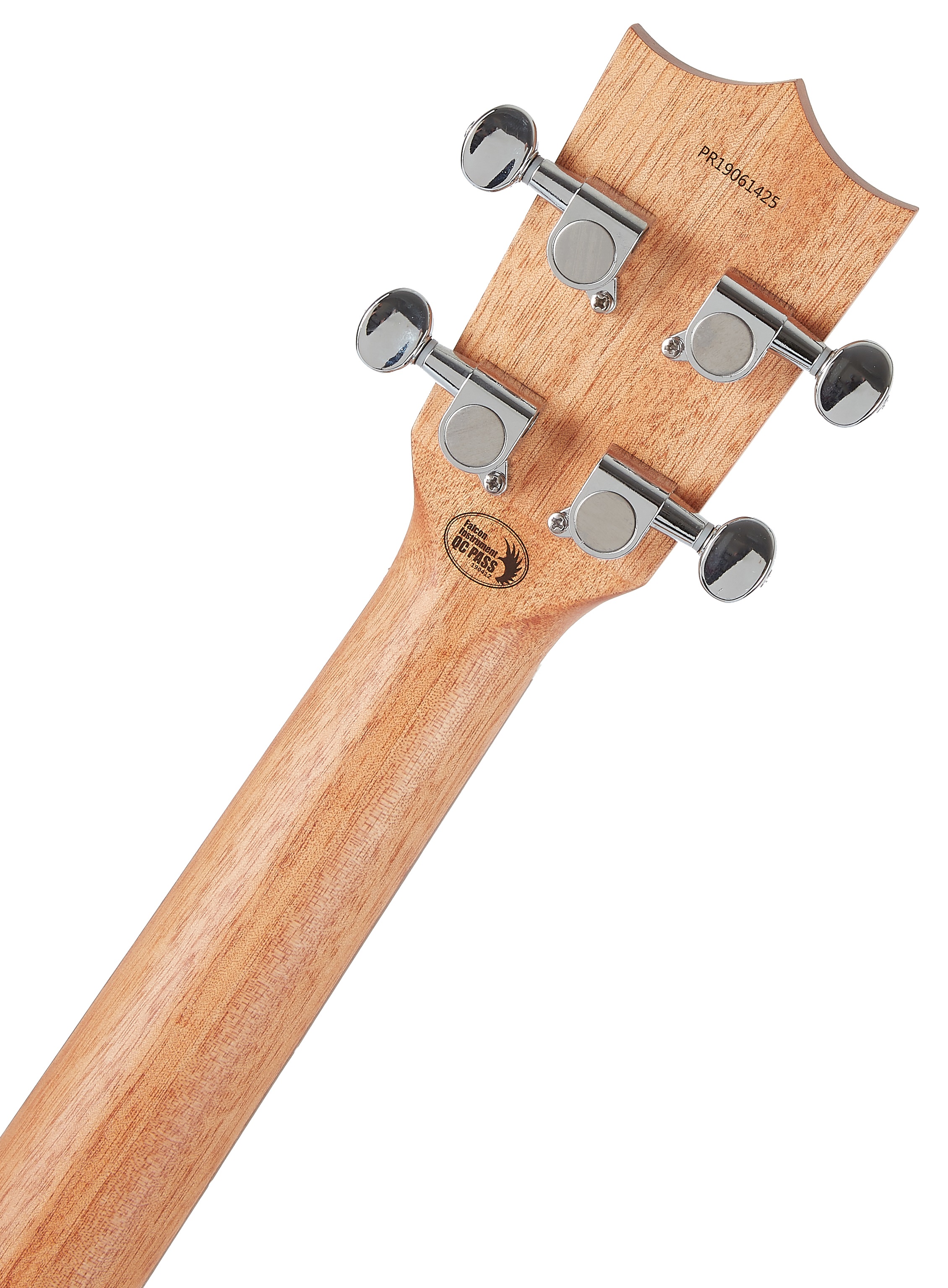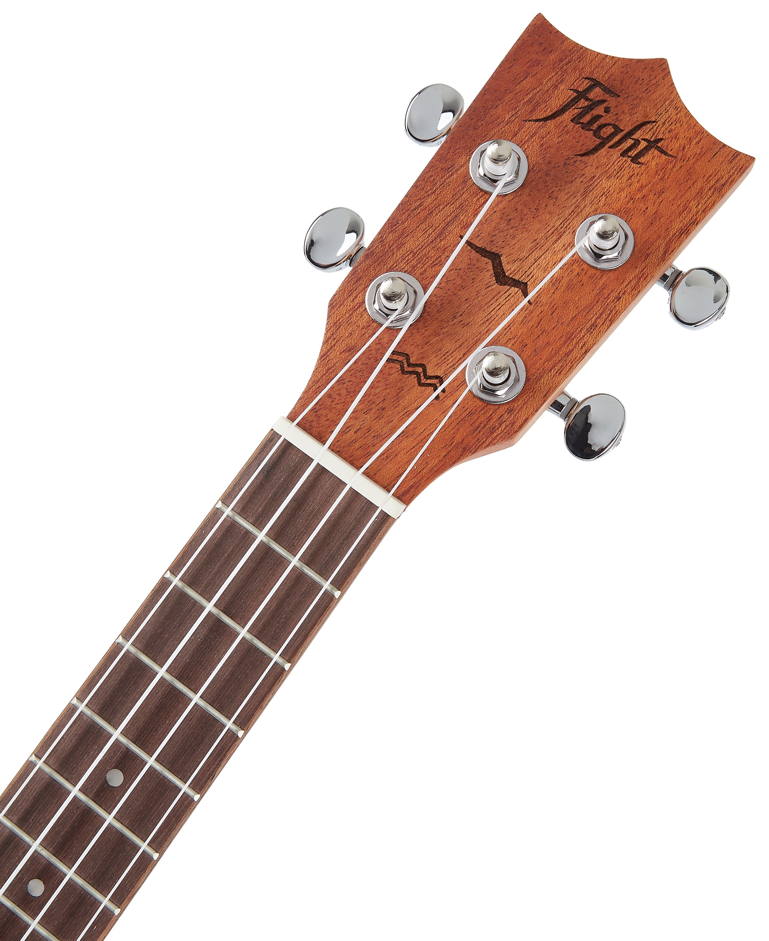 Elektroakustické ukulele Séria Flight's Designer ponúka cenovo dostupné modely ukulele s tradičnými prírodnými/ dizajnovými drevami, ktoré sú vhodné pre začínajúcich hráčov na ukulele a pre hráčov na ukulele. Telo tohto elektroakustického koncertného ukulele je vyrobené z laminovaného mahagónu. Krk a hmatník nástroja sú vyrobené z afrického okoumé a orechového dreva, čo je tiež pomerne často používaná kombinácia drevín. Struny sú ukotvené prostredníctvom kosteného hmatníka a sedlového pražca v chrómových di