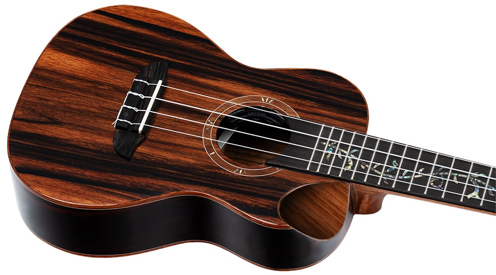 Elektroakustické ukulele Ortega Elite Series je polomasívne ukulele vyrobené z vybraných exotických drevín. V prípade koncertného ukulele RUET-EB ide o vrchnú dosku z masívneho ebenu doplnenú zadnou doskou a lubmi z preglejky. Výrazná kresba dreva je zvýraznená lesklým lakovaním. Mahagónový krk je prilepený k orechovému hmatníku zdobenému ozdobnou intarziou "Strom života" z imitácie perlete. Ozvučenie nástroja zabezpečuje predzosilňovač MagusFly s ovládacími prvkami v ozvučnom otvore a napájaním z dobíjacej