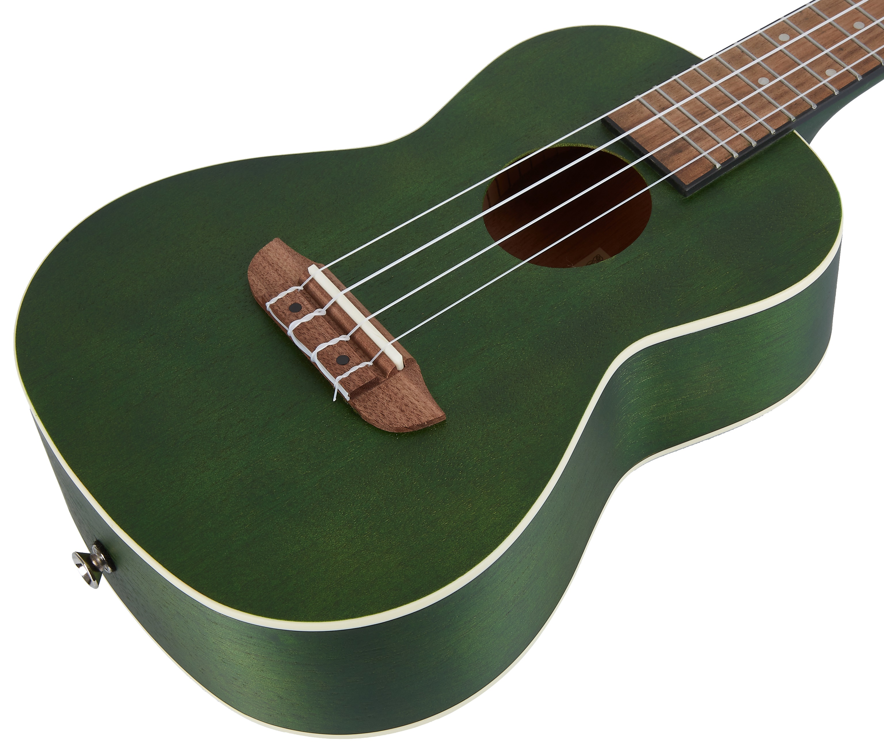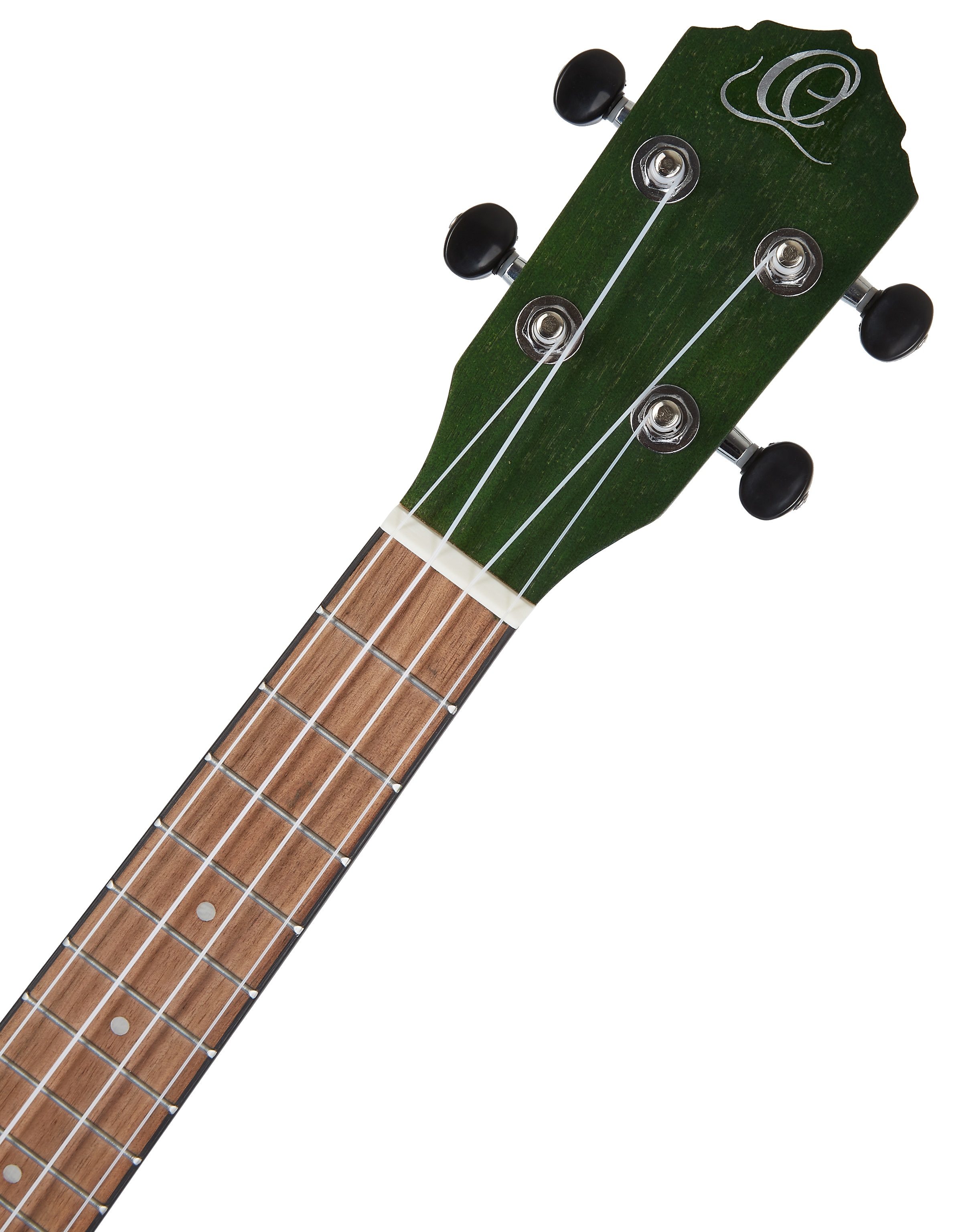 Akustické ukulele Séria Earth od Ortegy prináša kvalitne spracované a cenovo dostupné ukulele vo farebnom prevedení vhodnom pre začiatočníkov aj pokročilých hráčov. Ide o nástroje koncertnej veľkosti, čo znamená, že sú o niečo väčšie ako soprány, ale stále si zachovávajú príjemné rozmery a typický zvuk, pre ktorý sú také obľúbené. Predná strana tohto ukulele je vyrobená z preglejky okoumé, zadná strana a boky zo sapele. Telo zdobí povrchová úprava Forest Green a biela obvodová lišta ABS. K mahagónovému krku