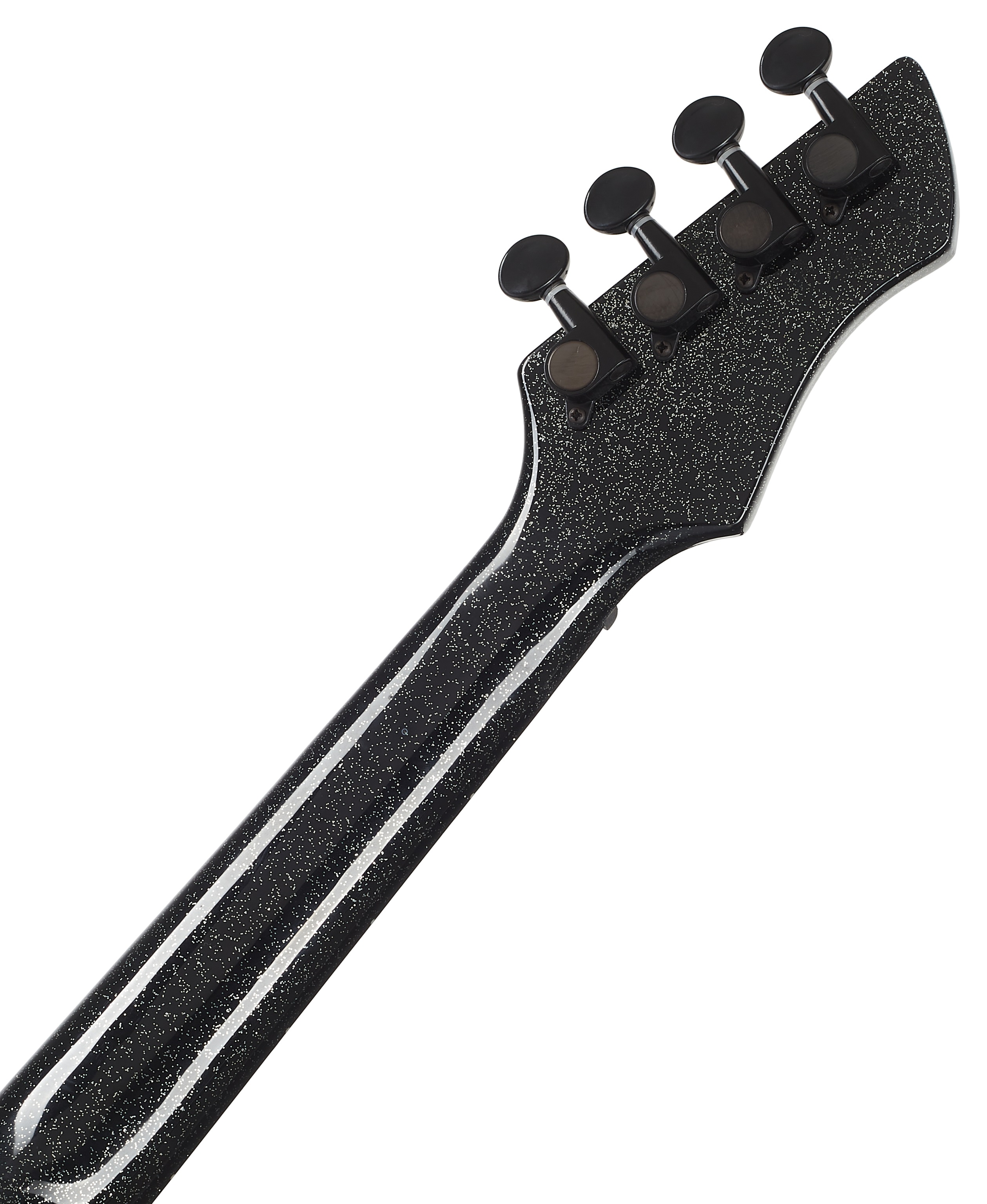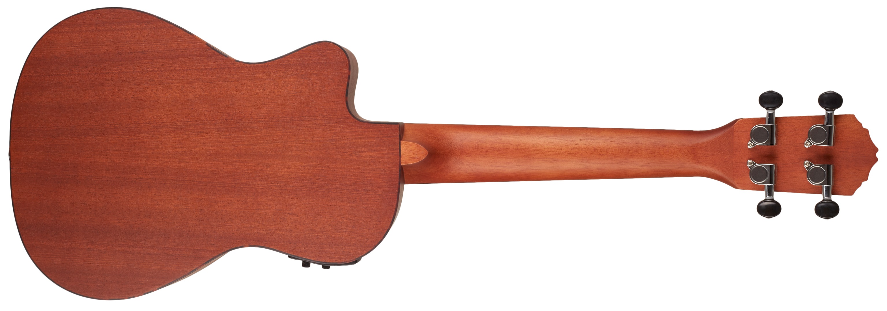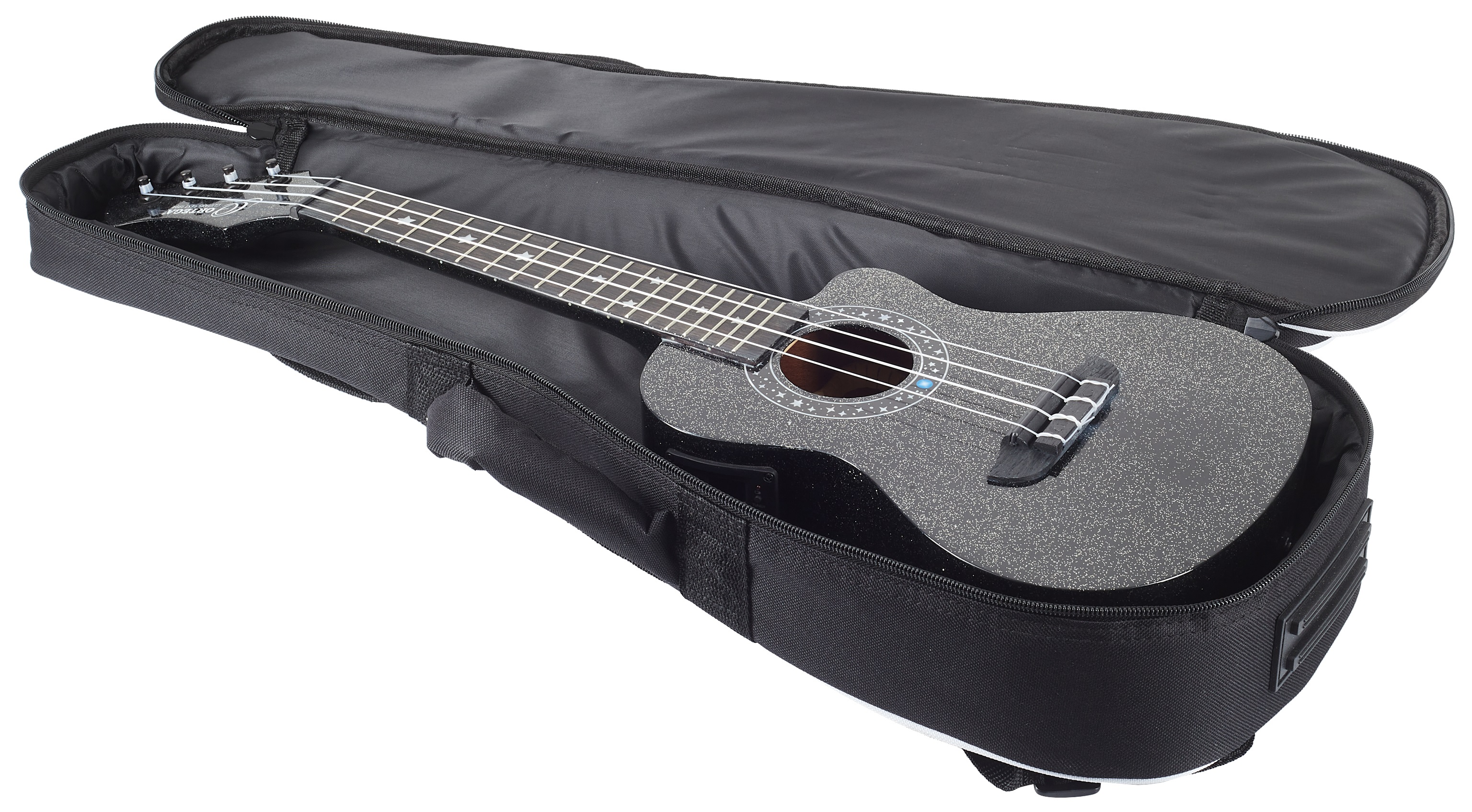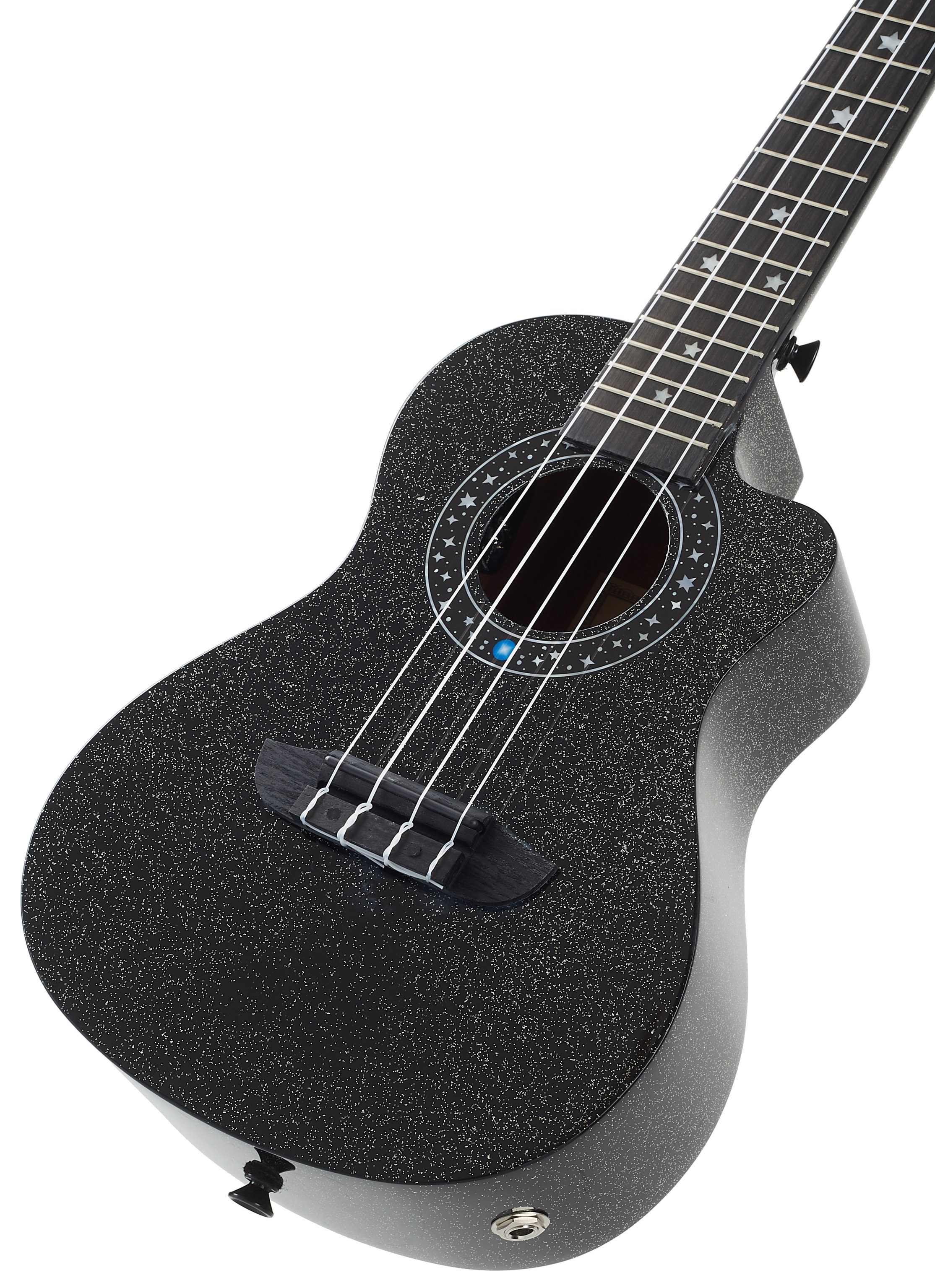 Elektroakustické ukulele Rad Horizon od Ortegy ponúka kvalitne spracované akustické a elektroakustické ukulele v koncertnej veľkosti, s hlavicou v tvare elektrickej gitary a exotickými drevinami. Telo tohto ukulele je vyrobené z prelisovaného agathisu, ktorý zdobí lesklá povrchová úprava Black Silver Sparkle. Ku krku z okoumé je prilepený hmatník z kompozitného dreva tecwood osadený osemnástimi pražcami. Struny sú uchytené v kompozitnej hlavici a uzavretých čiernych ladiacich mechanikách (Die-Cast – 4 v rad