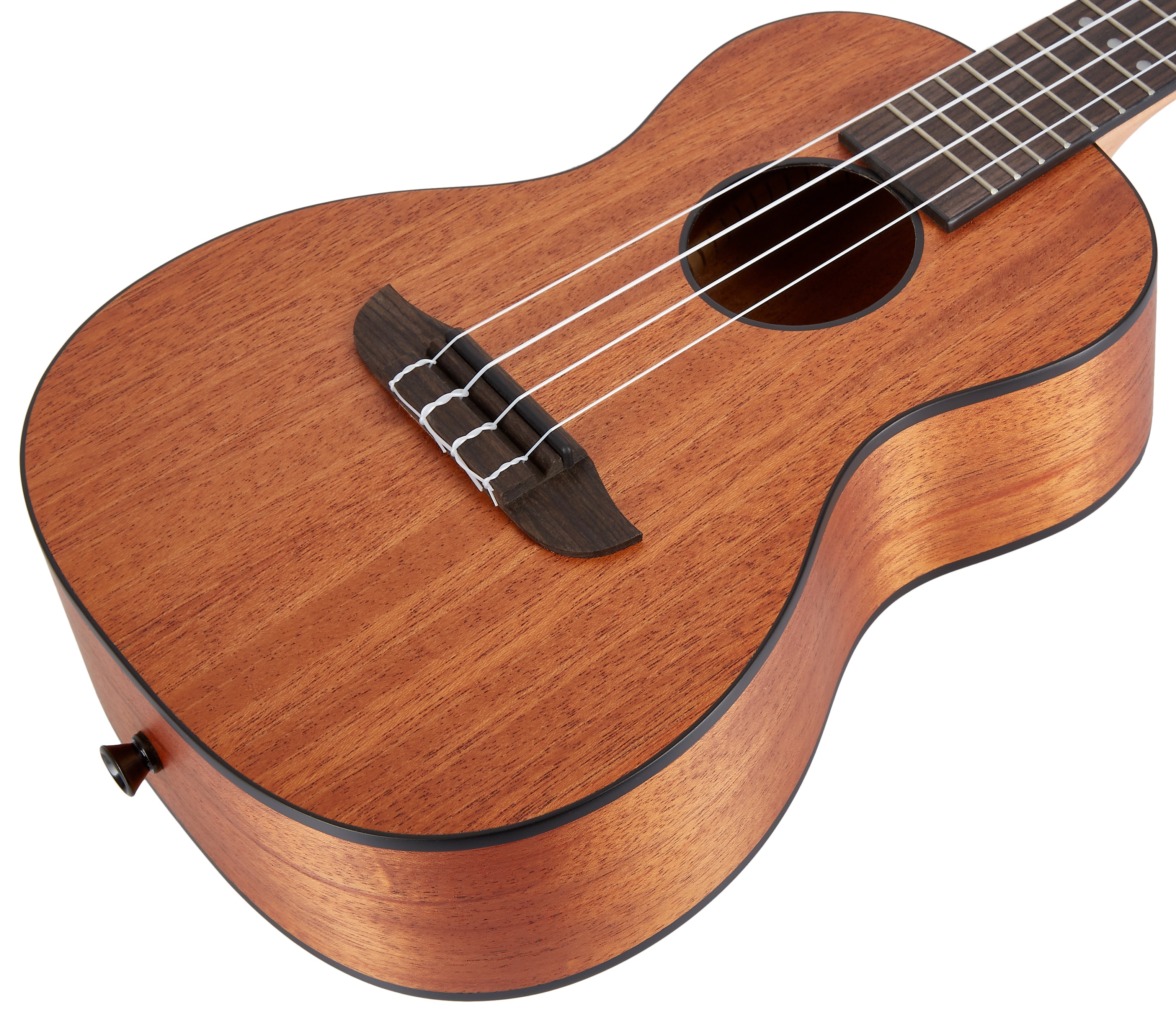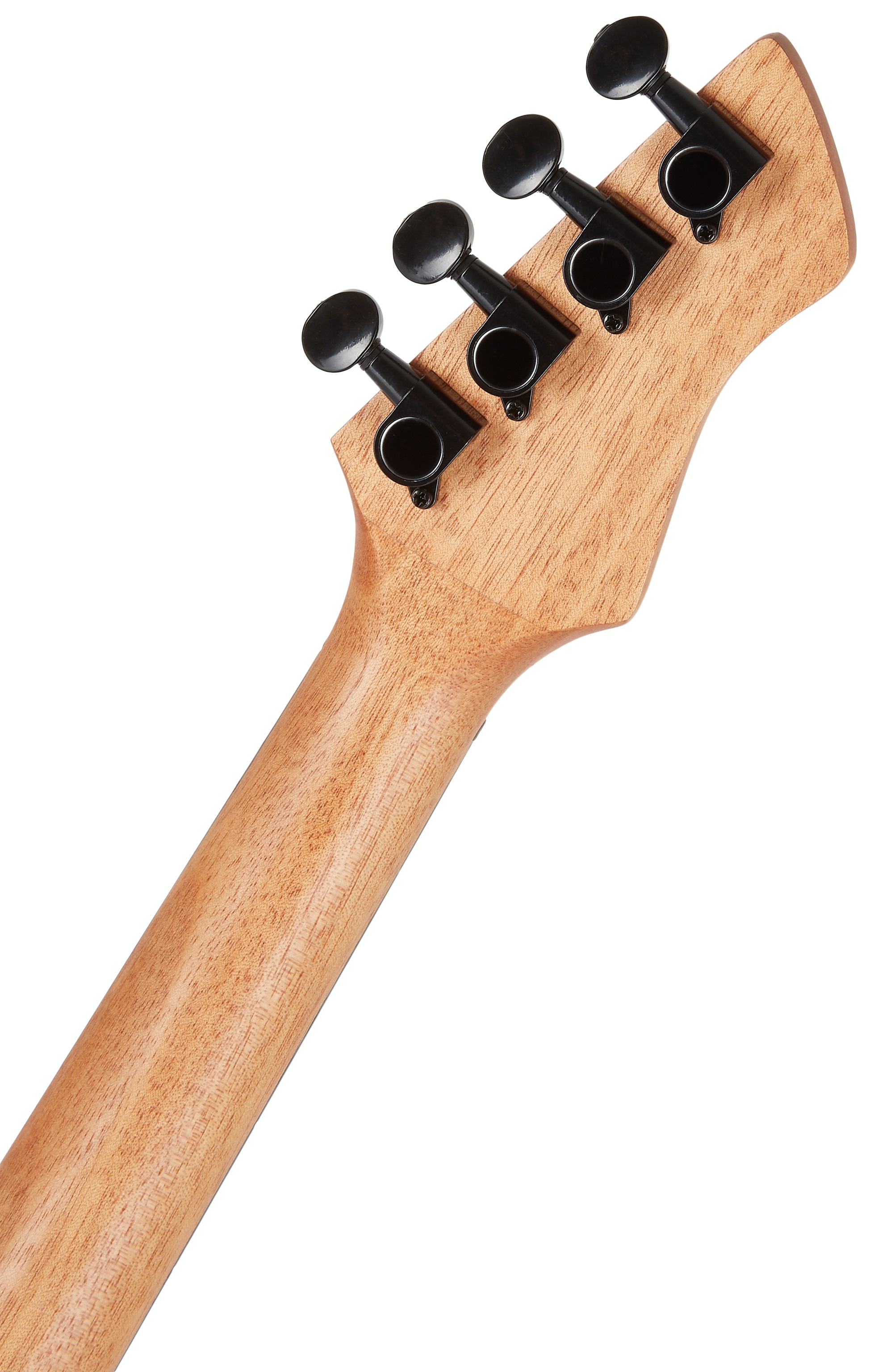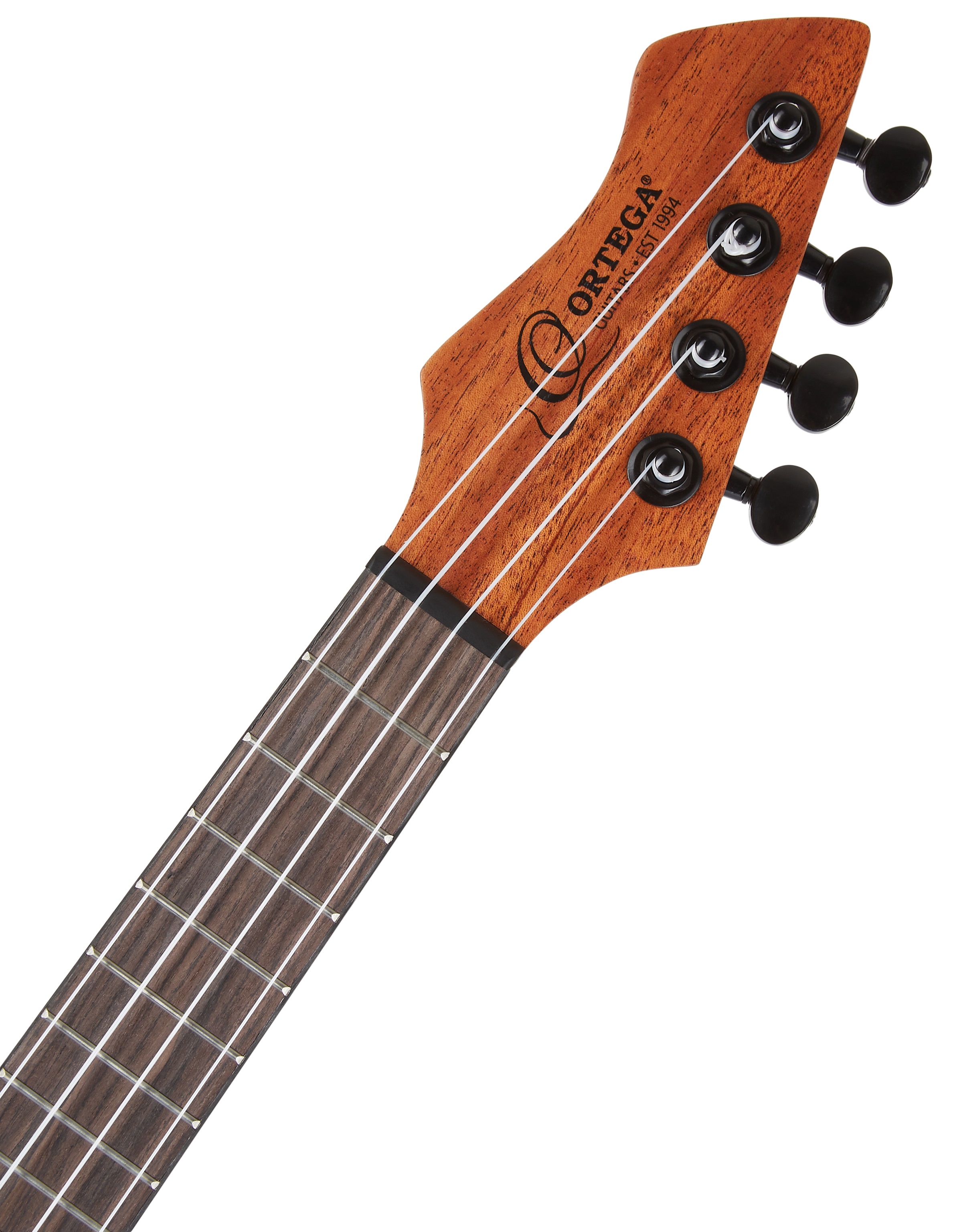 Akustické ukulele Rad Horizon od Ortegy ponúka kvalitne spracované akustické a elektroakustické ukulele koncertnej veľkosti s hlavicou v tvare elektrickej gitary, exotickými drevinami a saténovým povrchom s otvorenými pórmi. Telo tohto ukulele je vyrobené z prelisovaného mahagónu. Krk z okoumé je osadený hmatníkom z kompozitného dreva tecwood s osemnástimi pražcami. Struny sú osadené kompozitným kobylkovým a uzavretým čiernym ladiacim strojčekom (Die-Cast – 4 in line) s čiernymi kolíkmi. Ušľachtilý vzhľad p