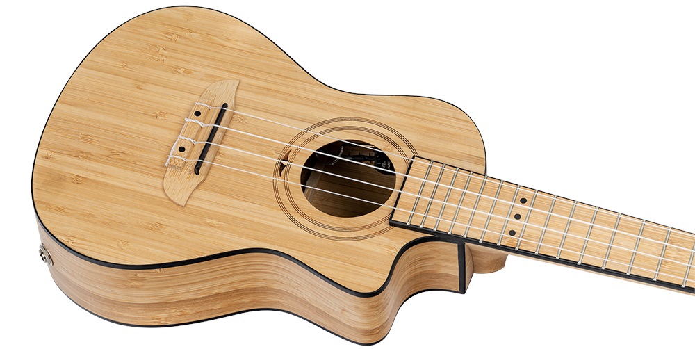 Elektroakustické ukulele Rad Ortega Bamboo ponúka kvalitne spracované elektroakustické ukulele rôznych veľkostí vyrobené z bambusu. Telo koncertného ukulele RUNAB-CC je vyrobené z masívneho bambusu. Plochu hmatníka rozdeľuje pätnásť pražcov, ladenie na vyšších polohách uľahčuje spodný výrez tela. Struny sú uchytené v ladiacich mechanikách typu Graph Tech Ratio friction s čiernymi kolíkmi. Pekné spracovanie podčiarkuje čierna obvodová lišta tela a rozeta v podobe laserového gravírovania. Nástroj je ozvučený