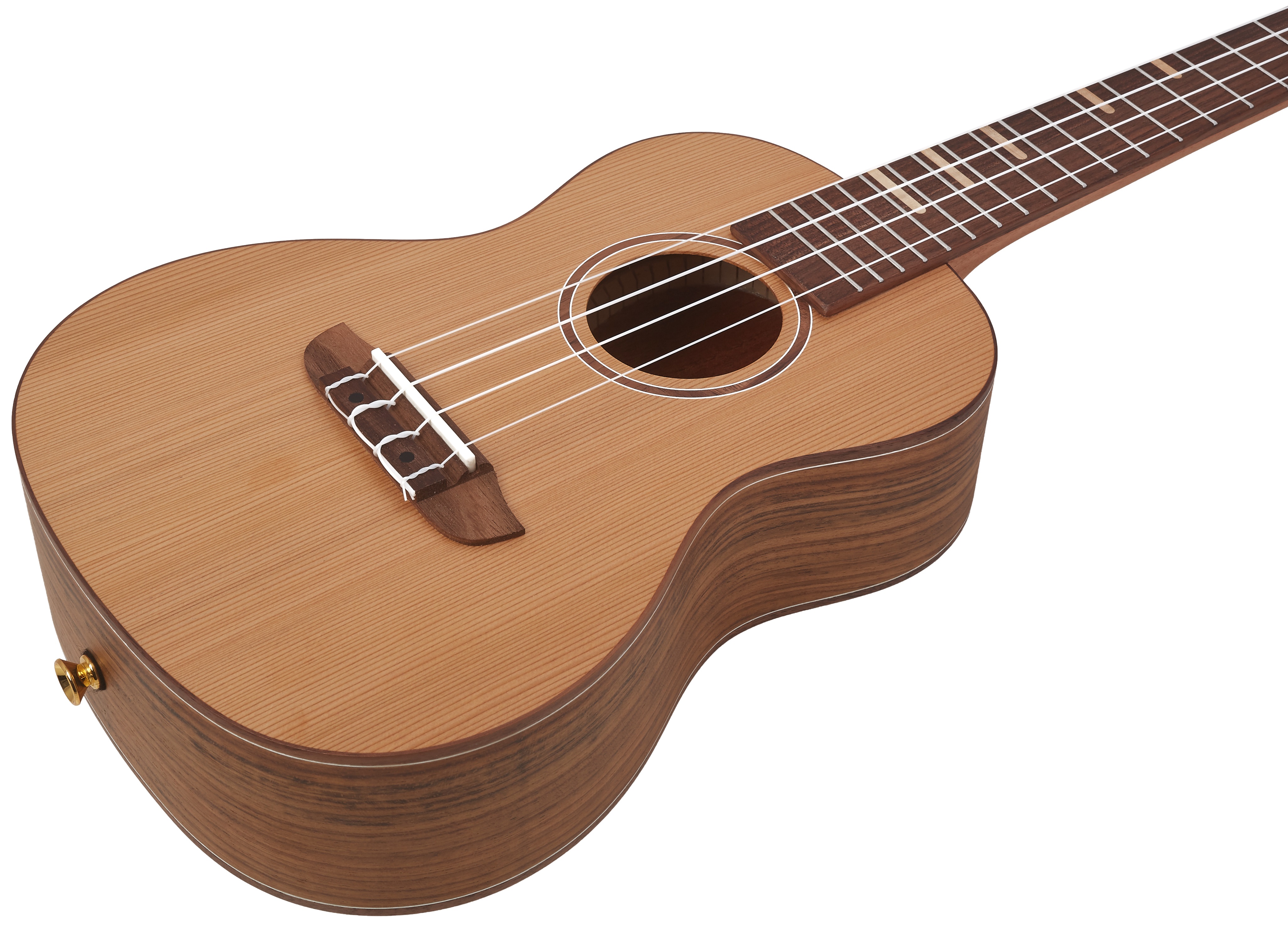 Akustické ukulele Modelová rada Timber značky Ortega ponúka kvalitne spracované polomasívne modely ukulele klasických tvarov v sopránových, koncertných a tenorových veľkostiach. Telo tohto nástroja je skonštruované z masívnej cédrovej prednej dosky a zadnej dosky a lubov z preglejky. Ku krku z okoumé prilieha hmatník z orechového dreva osadený osemnástimi pražcami. Struny sú upevnené cez nultý pražec a kostené sedlo v orechovom hmatníku a firemné pozlátené ladiace mechaniky gitarového typu s čiernymi kolíkm
