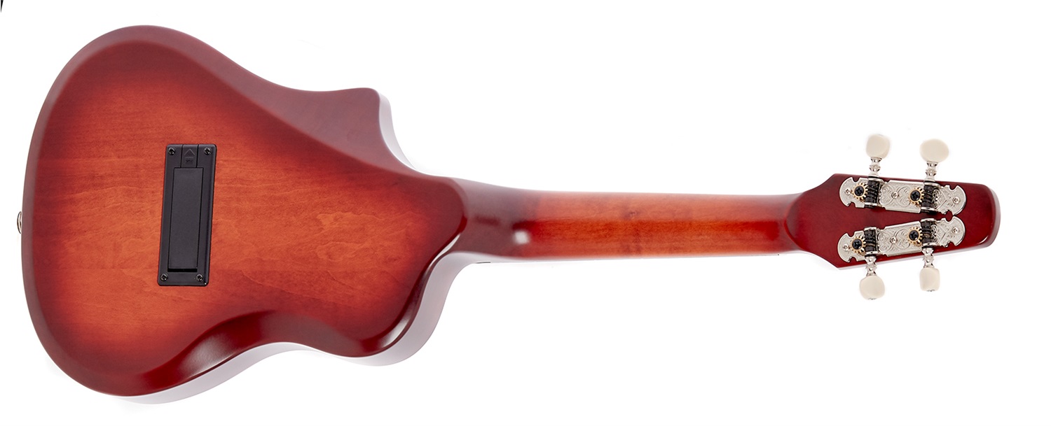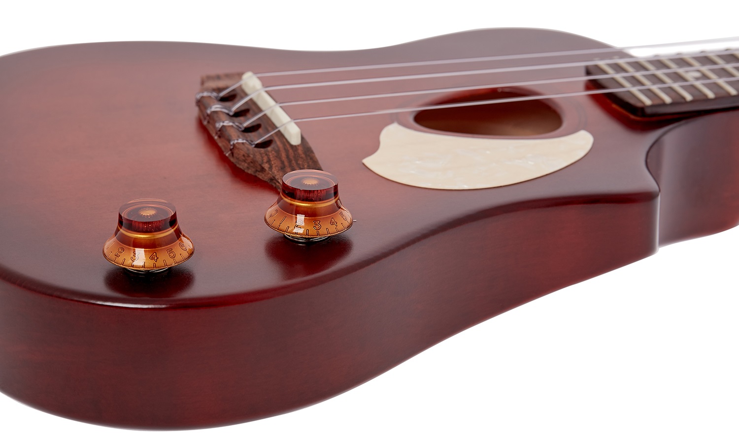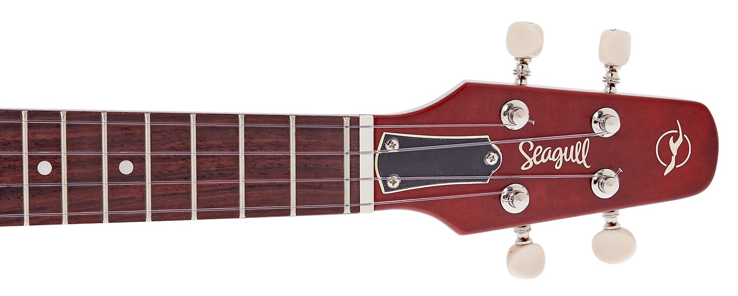 Elektroakustické ukulele Elektroakustické koncertné nylonové ukulele kanadskej značky Seagull vám umožní hrať nielen tradičné piesne v havajskom štýle, ale aj folkové a rockové hity. Celomasívne telo nástroja pozostáva z masívnej prednej dosky zo smreka Sitka a zadnej dosky a lubov z javora. Táto kombinácia drevín dodáva nástroju zvučný, vyvážený zvuk. K javorovému krku prilieha palisandrový hmatník s osemnástimi pražcami a polohové bodky uľahčujú orientáciu. Nástroj je vybavený predzosilňovačom s ovládaním
