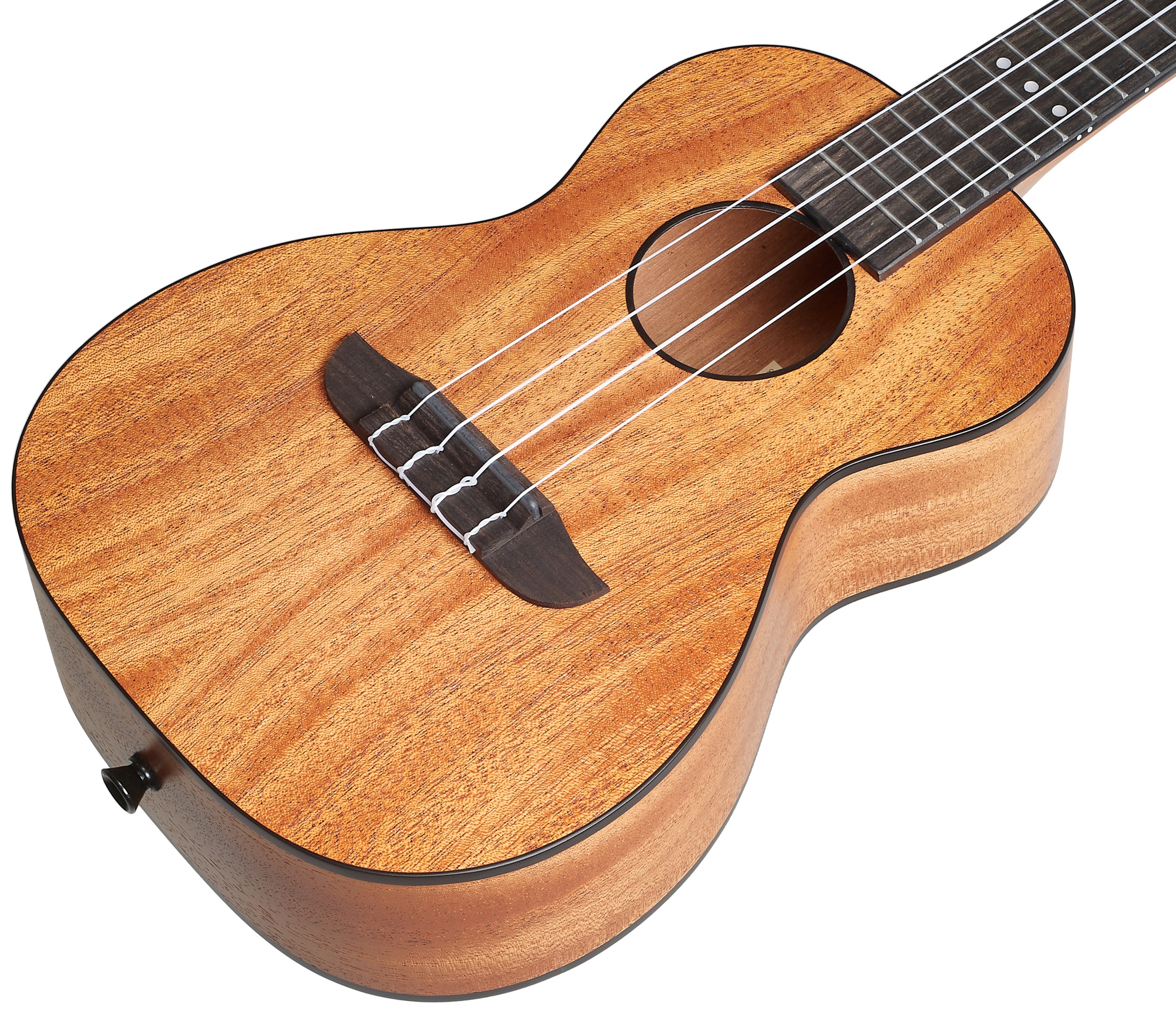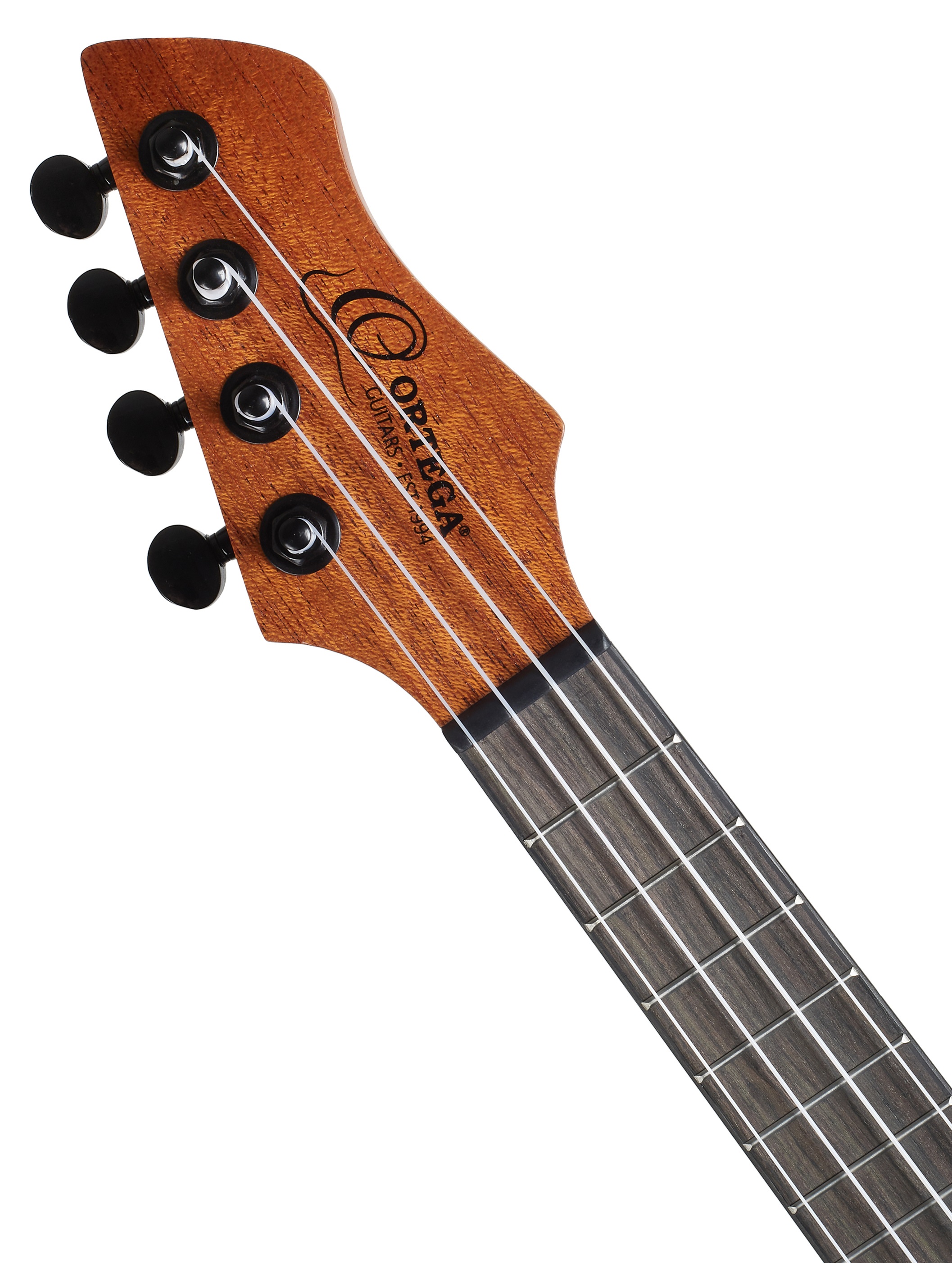 Ľavoručné akustické ukulele Rad Horizon od Ortegy ponúka kvalitne spracované akustické a elektroakustické ukulele koncertnej veľkosti s hlavicou v tvare elektrickej gitary, exotickými drevinami a saténovým povrchom s otvorenými pórmi. Telo tohto ukulele je vyrobené z prelisovaného mahagónu. Ku krku z okoumé je prilepený kompozitný hmatník z tecwood s osemnástimi pražcami. Struny sú uchytené v kompozitnom kobylke a uzavretých čiernych ladiacich mechanikách (Die-Cast – 4 v rade) s čiernymi kolíkmi. Ušľachtilý