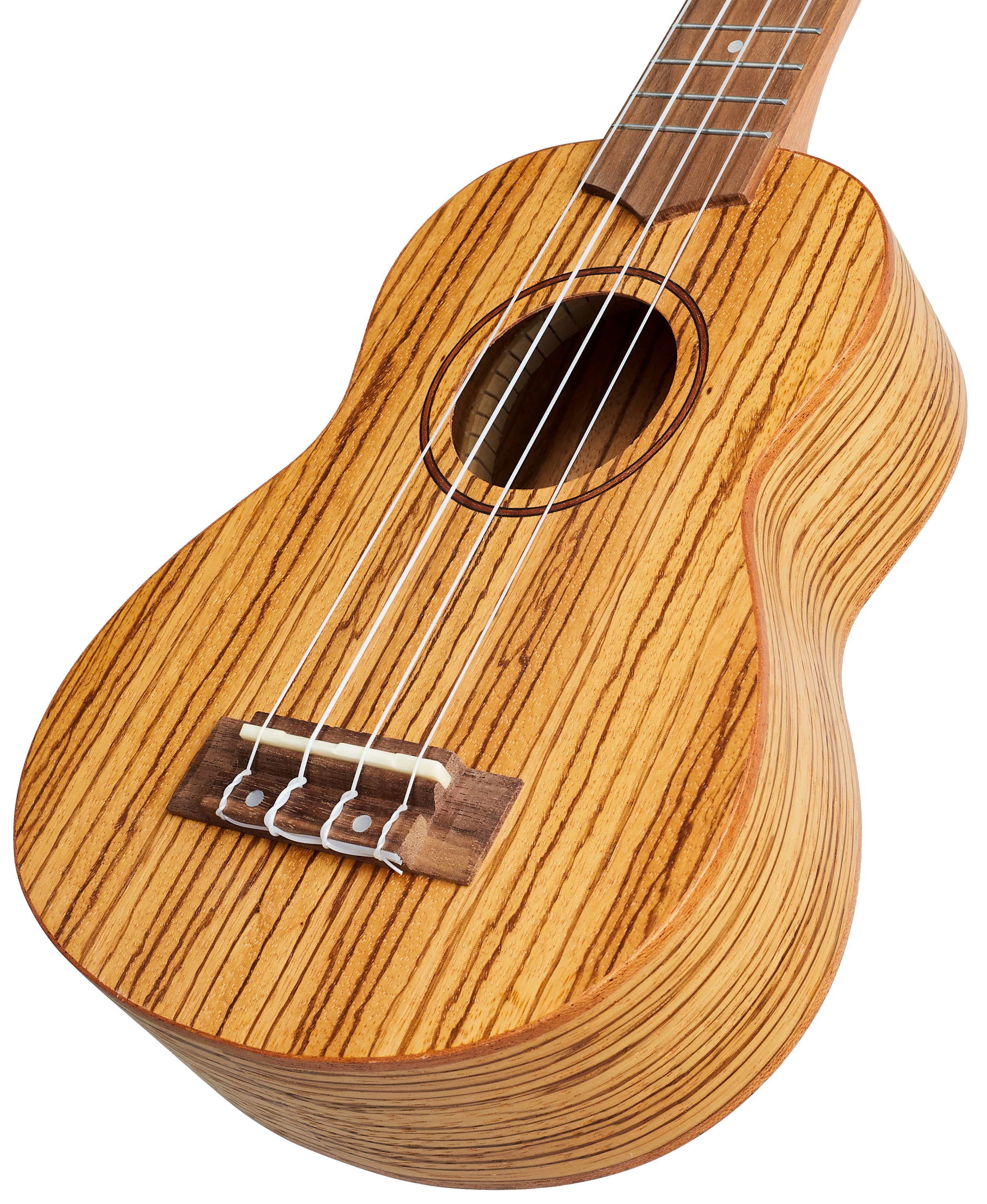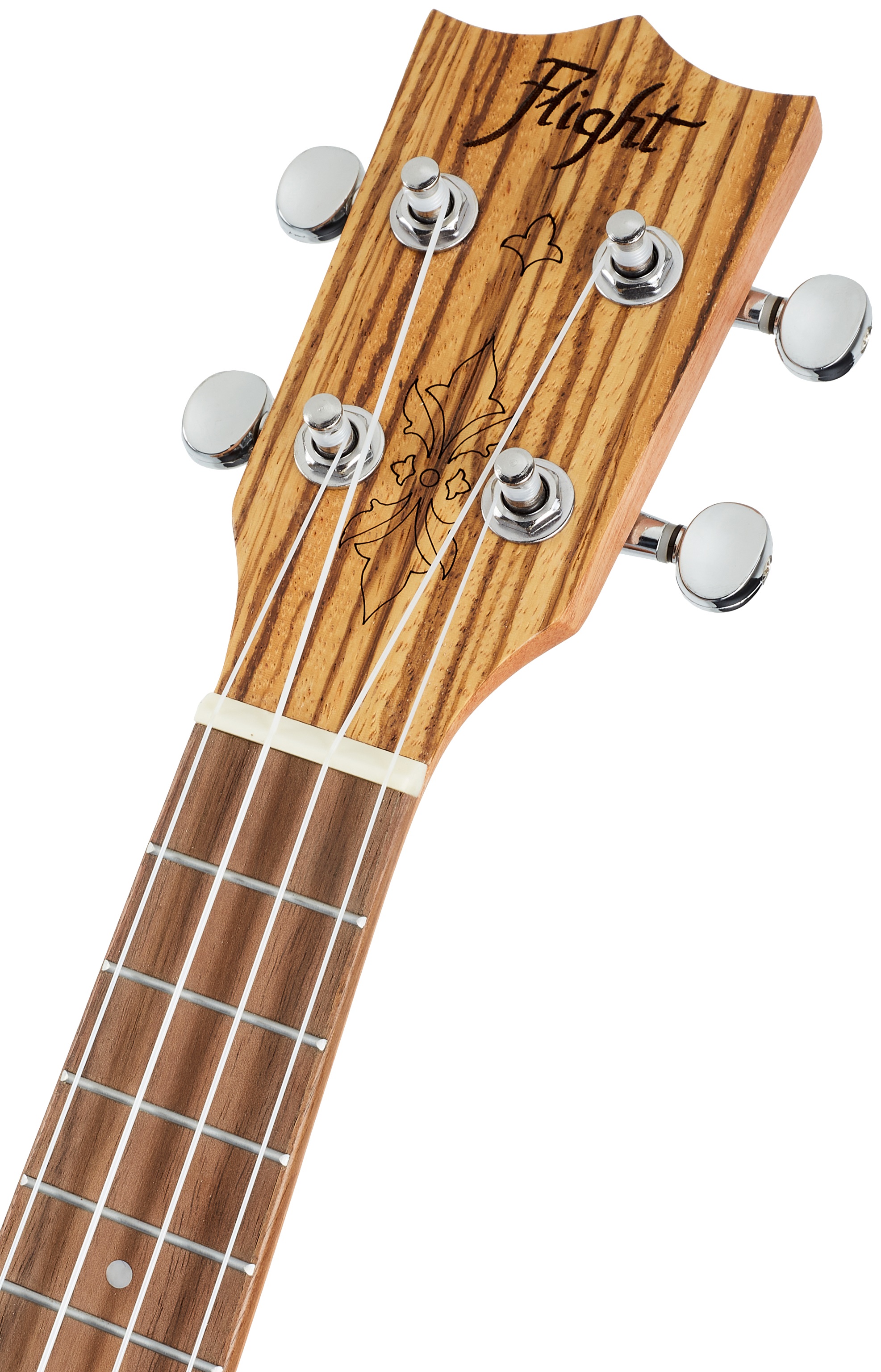 Akustické ukulele Séria Flight's Designer ponúka cenovo dostupné modely ukulele s tradičnými prírodnými/ dizajnovými drevami vhodné pre začínajúcich hráčov na ukulele a ukulele. Telo tohto sopránového ukulele je celé vyrobené z laminovaného exotického dreva zebra, dreva s výraznou kresbou. Krk a hmatník nástroja sú vyrobené z afrického okoumé a orechového dreva, čo je tiež pomerne často používaná kombinácia drevín. Struny sú ukotvené prostredníctvom kosteného hmatníka a sedlového pražca v chrómových die-cas