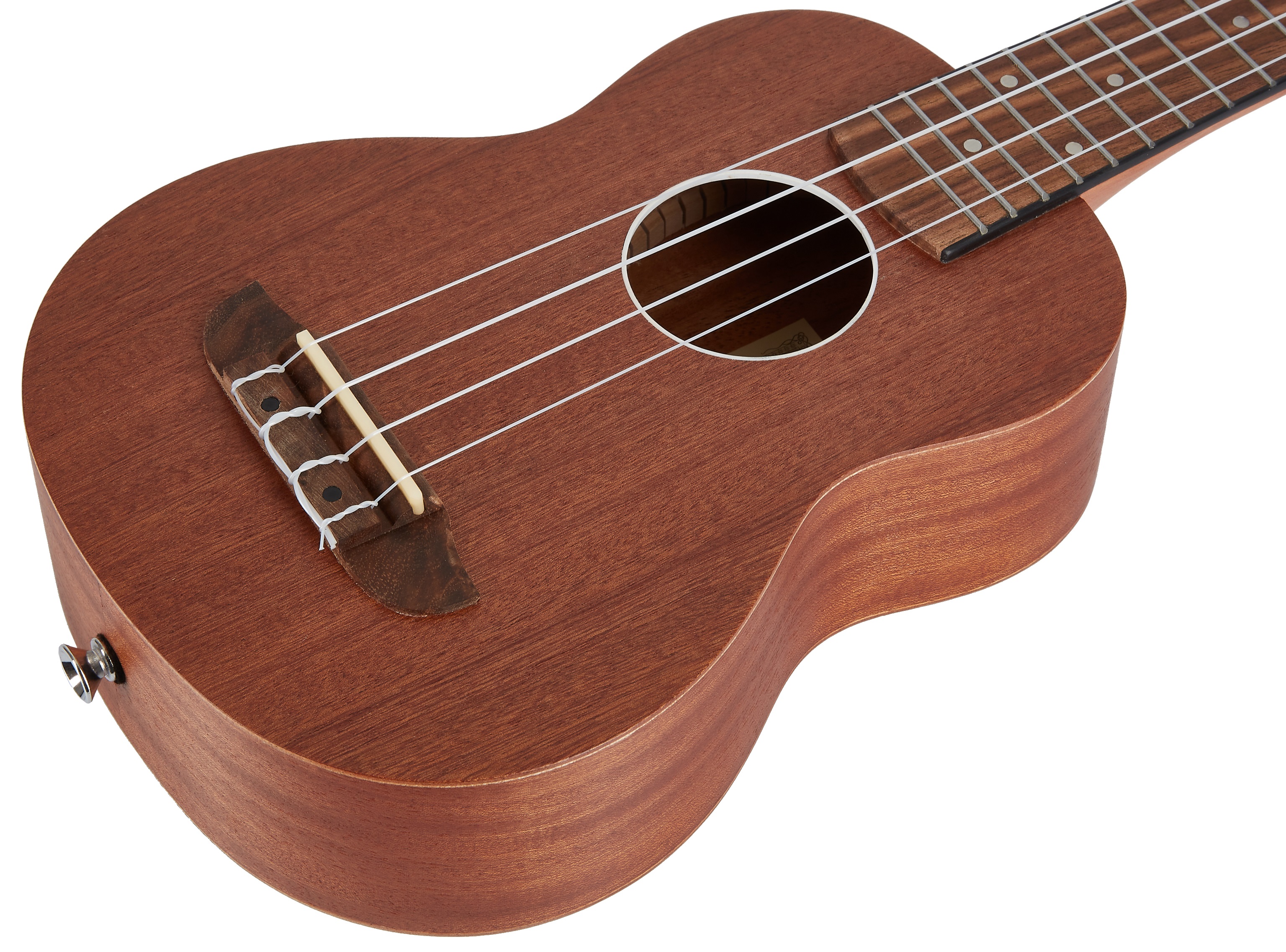 Akustické ukulele Séria Ortega Friends ponúka kvalitne spracované a cenovo dostupné sopránové a koncertné ukulele, ktoré si môžete zakúpiť s praktickou luxusnou taškou. Ak s ukulele práve začínate, nástroje z radu Friends by nemali uniknúť vašej pozornosti. Telo tohto sopránového ukulele je vyrobené z preglejky sapele. K mahagónovému krku prilieha orechový hmatník osadený pätnástimi pražcami a bielymi polohovými bodkami. Struny sú osadené v orechovom hmatníku a uzavretých ladiacich mechanikách gitarového ty