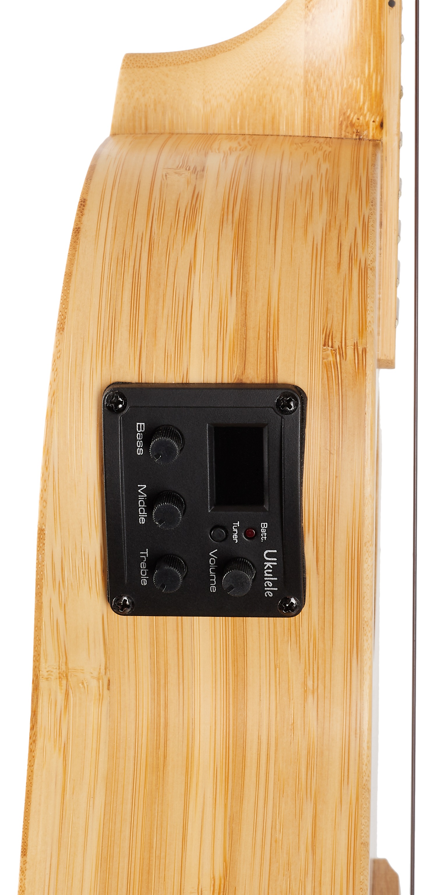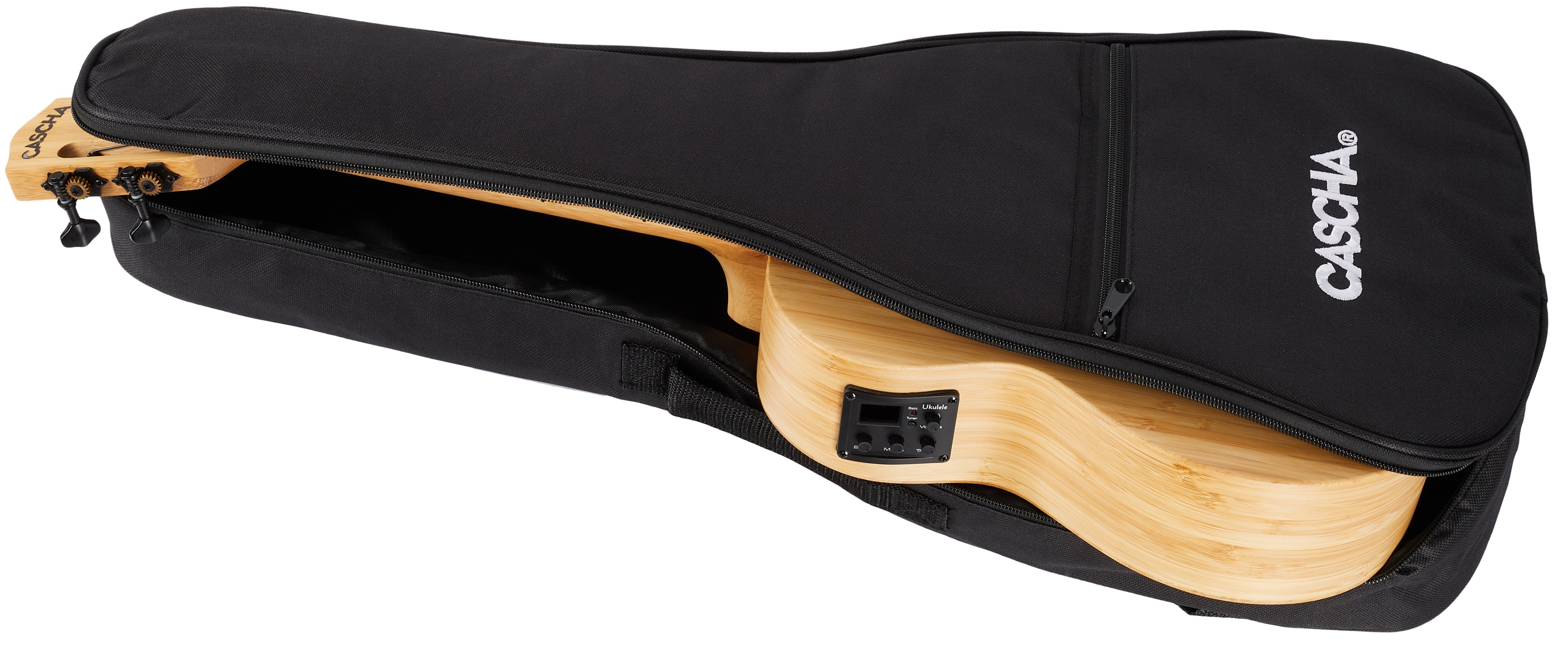 Elektroakustické ukulele Tenor ukulele Bamboo Natural od spoločnosti Cascha je masívny nástroj vyrobený takmer výlučne z bambusu. Prirodzená štruktúra dreva dodáva ukulele aj rafinovaný vzhľad. Okrem masívneho bambusového tela a krku ponúka bambusový hmatník a kobylka aj posilnenie zvuku vďaka zabudovanému predzosilňovaču s trojpásmovým ekvalizérom a ladičkou. Ukulele sa dodáva v polstrovanom puzdre (hrúbka polstrovania 10 mm) s tromi trsátkami. Značka Cascha ponúka širokú škálu hudobných nástrojov s jedným