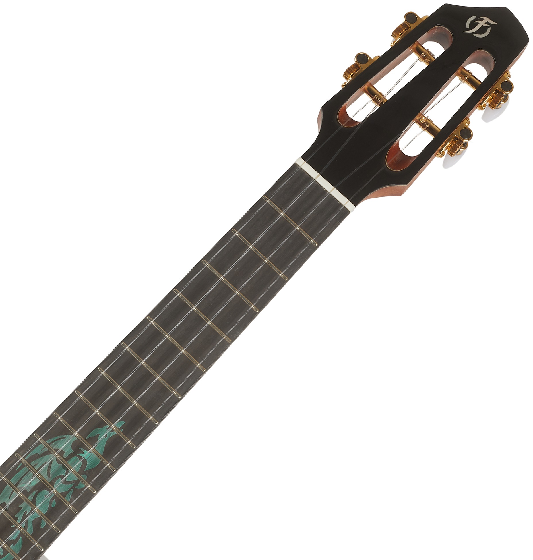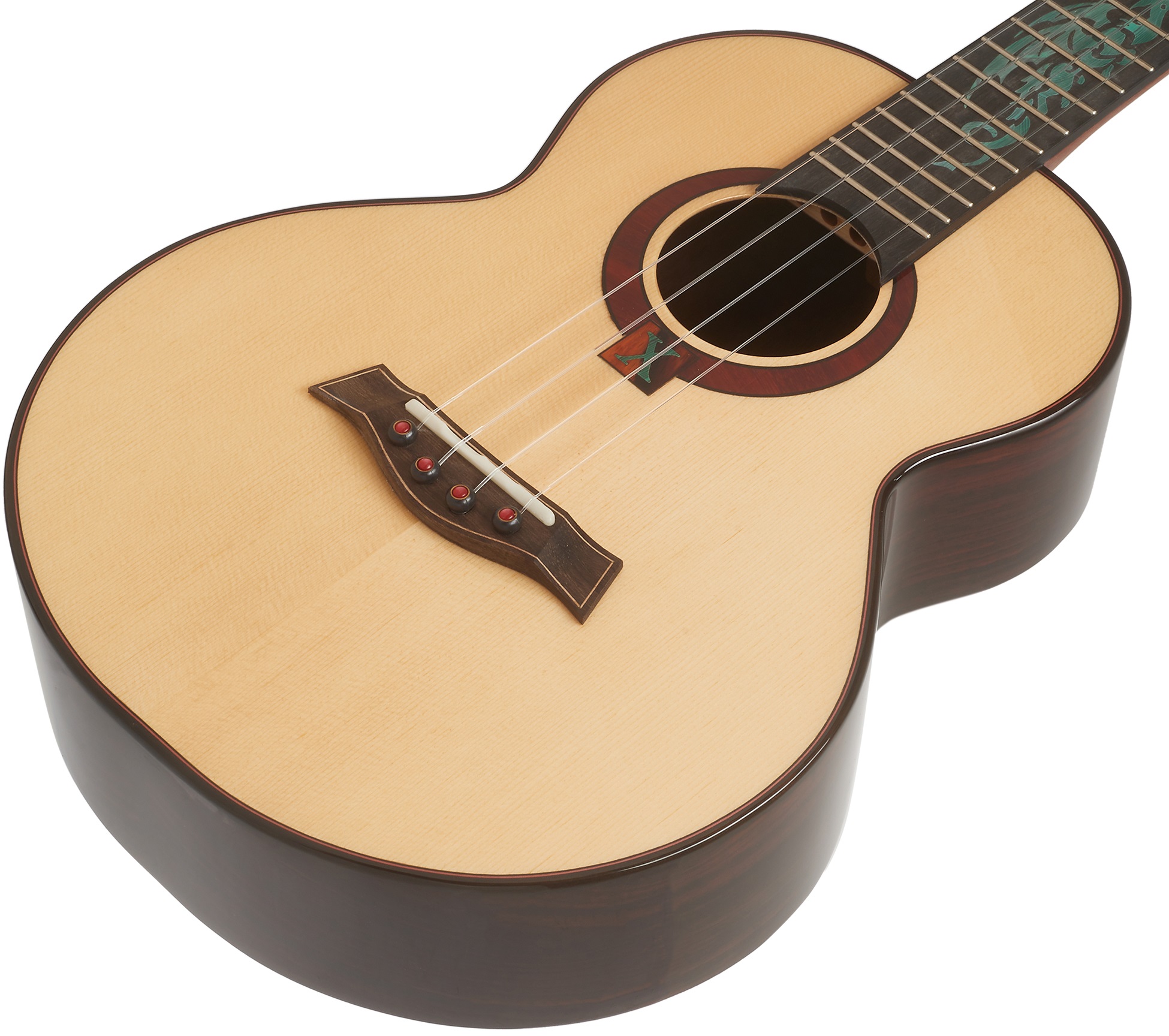 Akustické ukulele A10SC Cocobolo Dragon je luxusné tenorové ukulele s celomasívnou konštrukciou zo série Flight Anniversary. V prípade série A10 ide vždy o ručne vyrobený nástroj z dielní majstrov gitarových majstrov. Predná doska ukulele je vyrobená zo severoamerického smreka (Engelmann spruce), zadná doska a luby sú z tropického dreva cocobolo s absolútne exkluzívnou kresbou. K mahagónovému krku je prilepený ebenový hmatník s devätnástimi pražcami. Hmatník je preniknutý výraznou tyrkysovou intarziou draka
