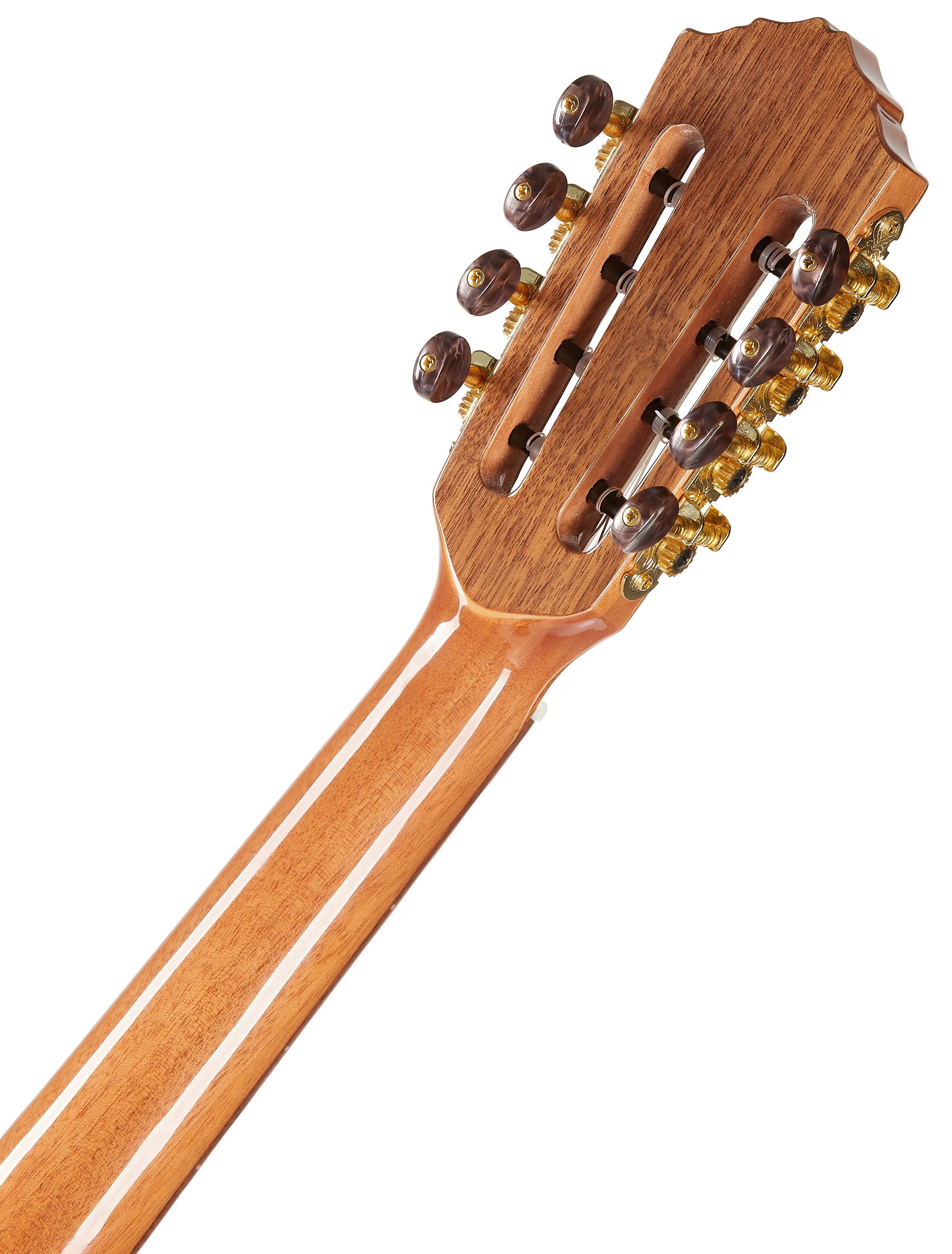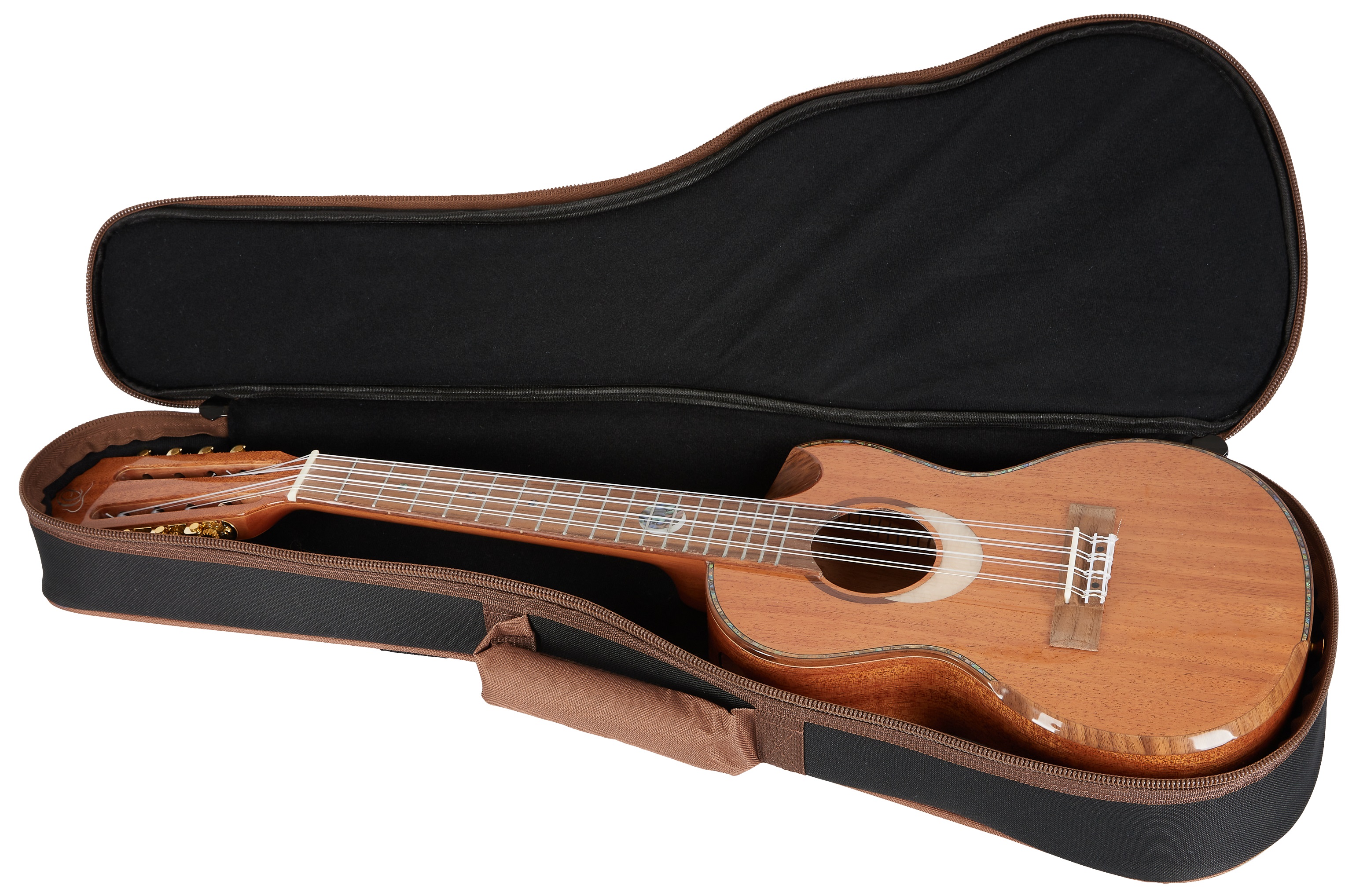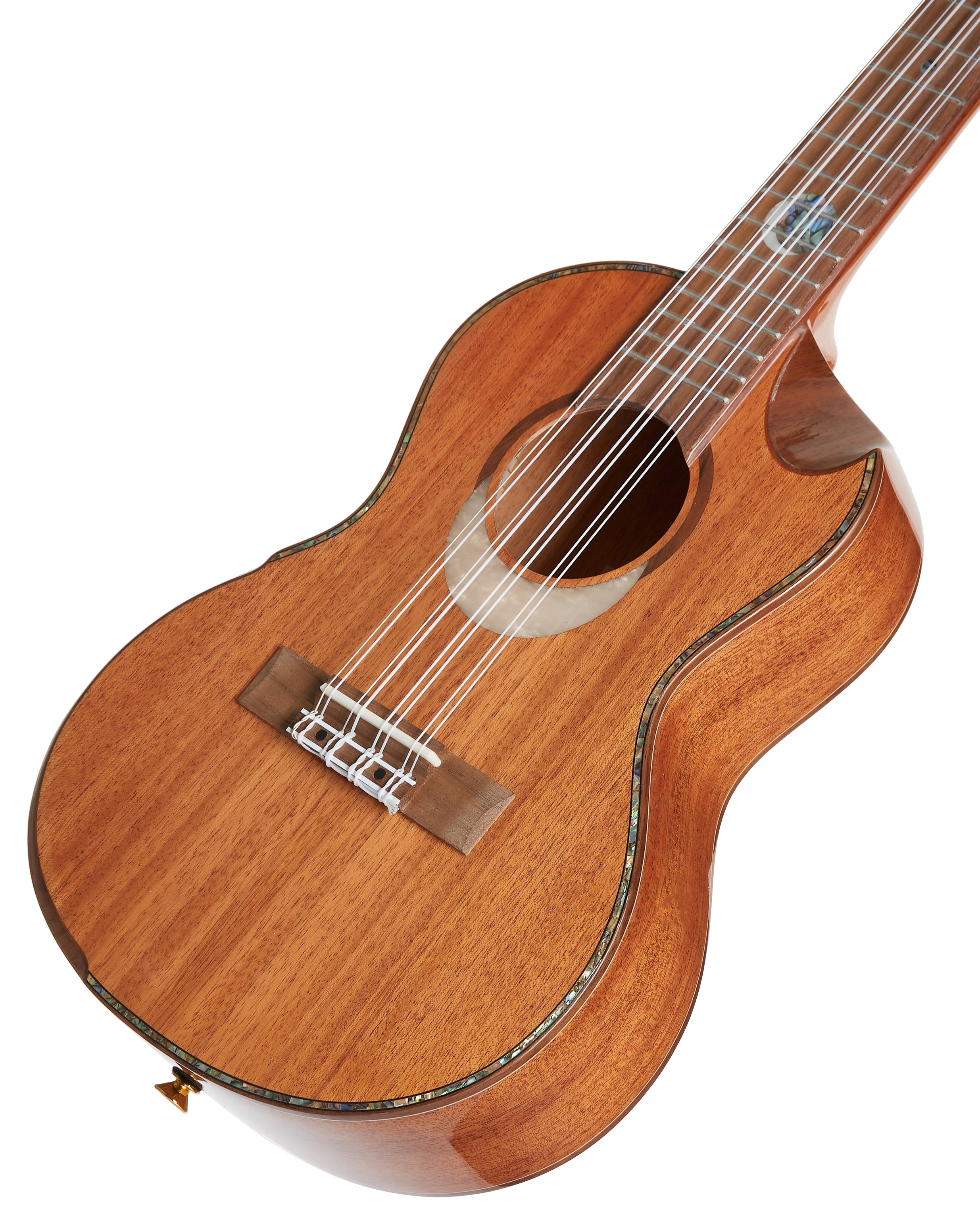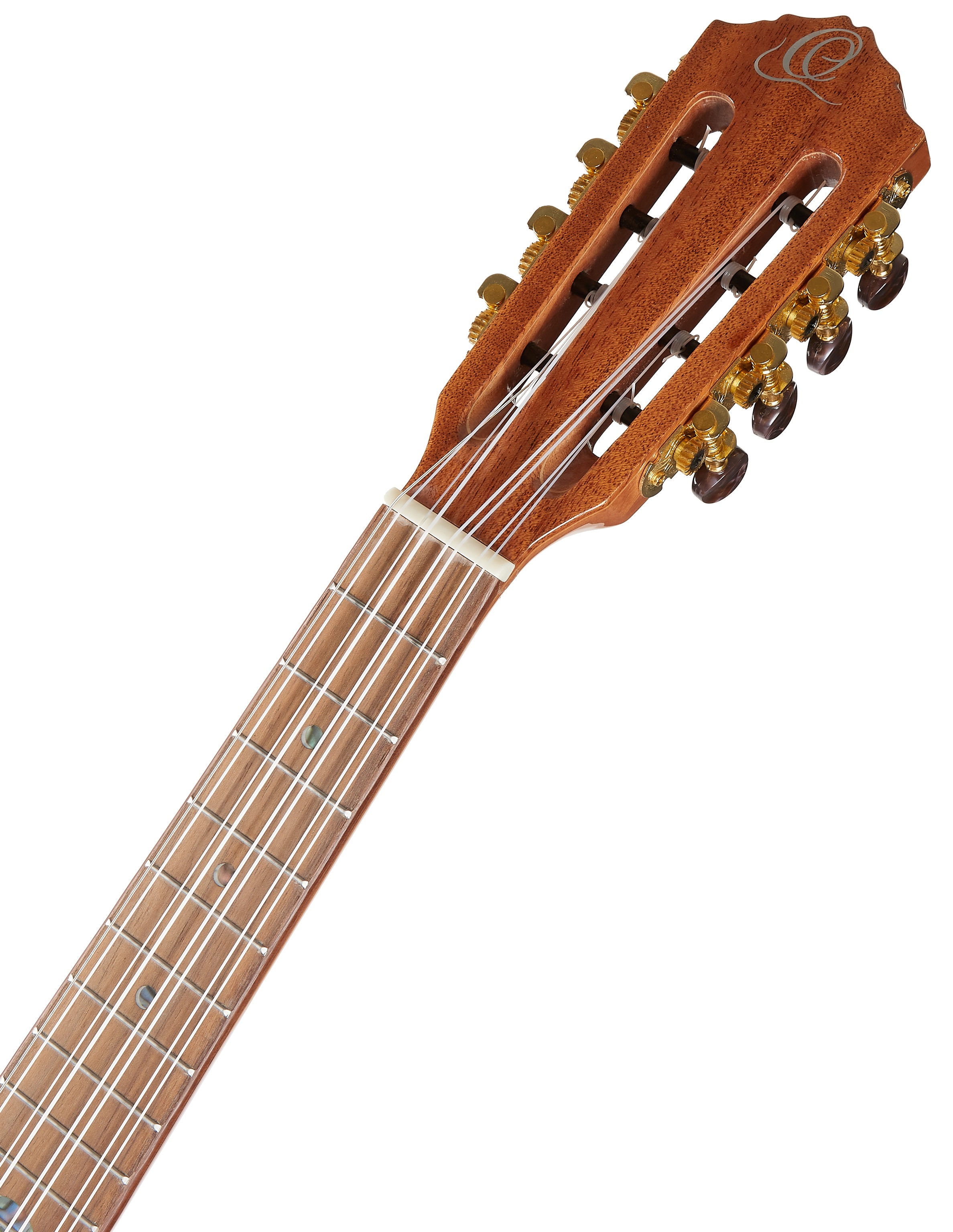 Akustické ukulele Séria Eclipse od Ortegy ponúka kvalitne spracované akustické ukulele s plnou masívnou konštrukciou a množstvom zaujímavých dizajnových prvkov, ktoré sa dodávajú v praktickom gig bagu. Telo tohto netradičného osemstrunového tenorového ukulele je vyrobené z masívneho mahagónu s lesklou lakovou povrchovou úpravou. Skosená opierka a ergonomický výrez v spodnej časti tela poskytujú obom rukám väčší komfort pri hre. Krk z okoumé je osadený osemnásťpražcovým hmatníkom z orechového dreva. Struny s