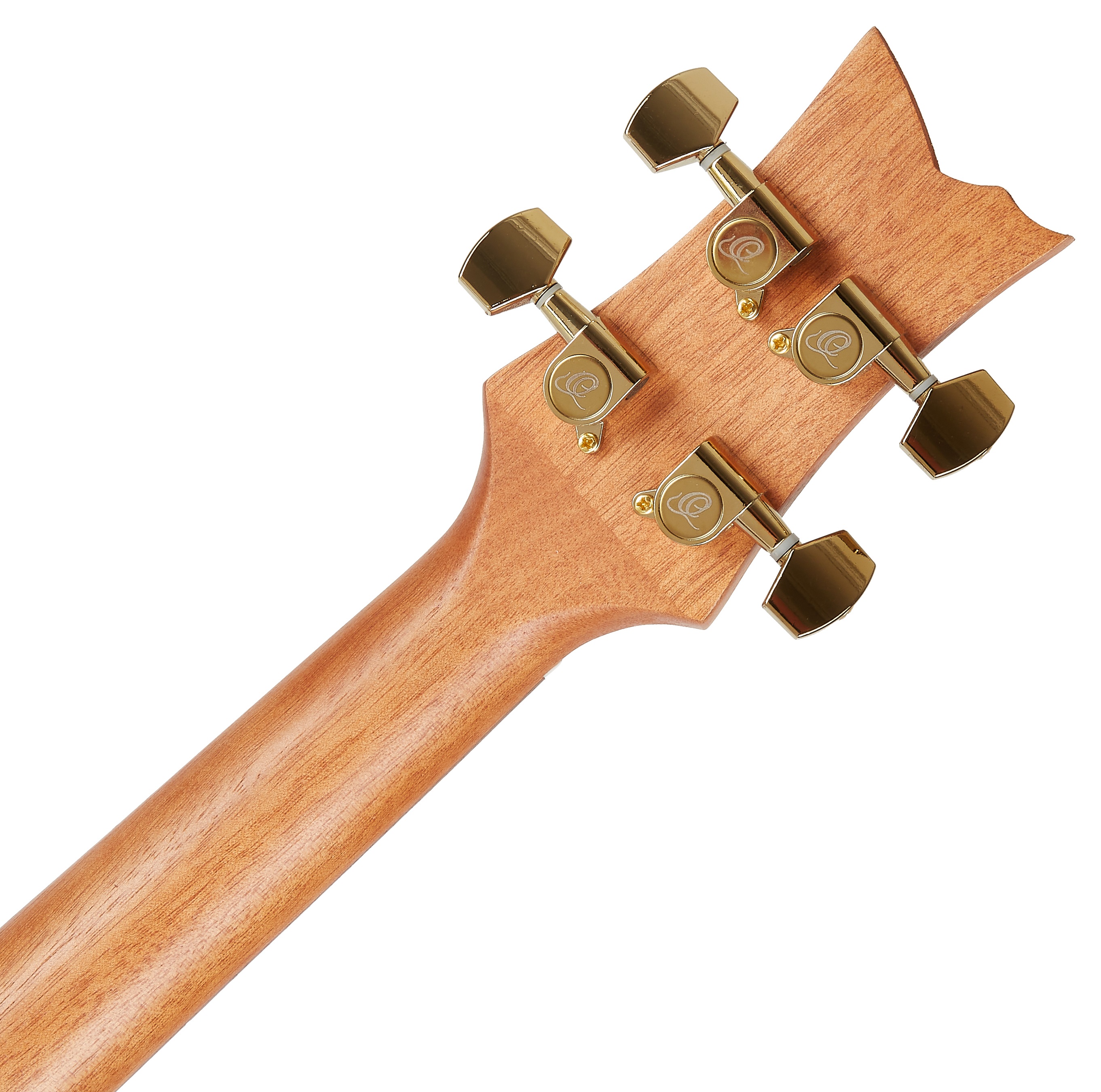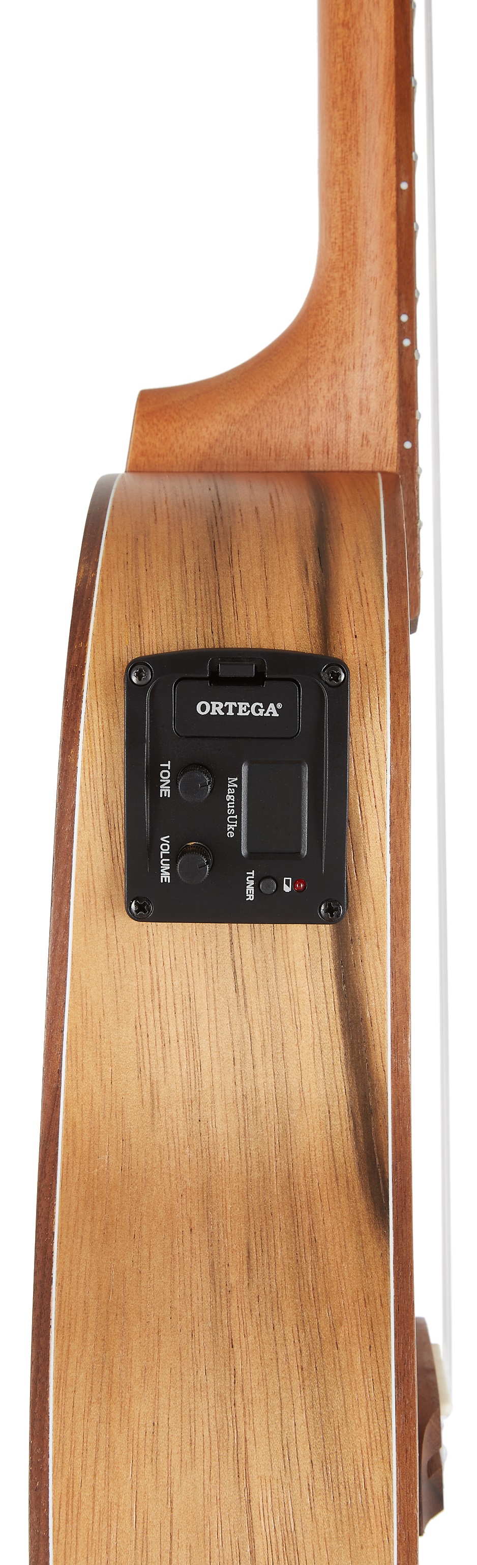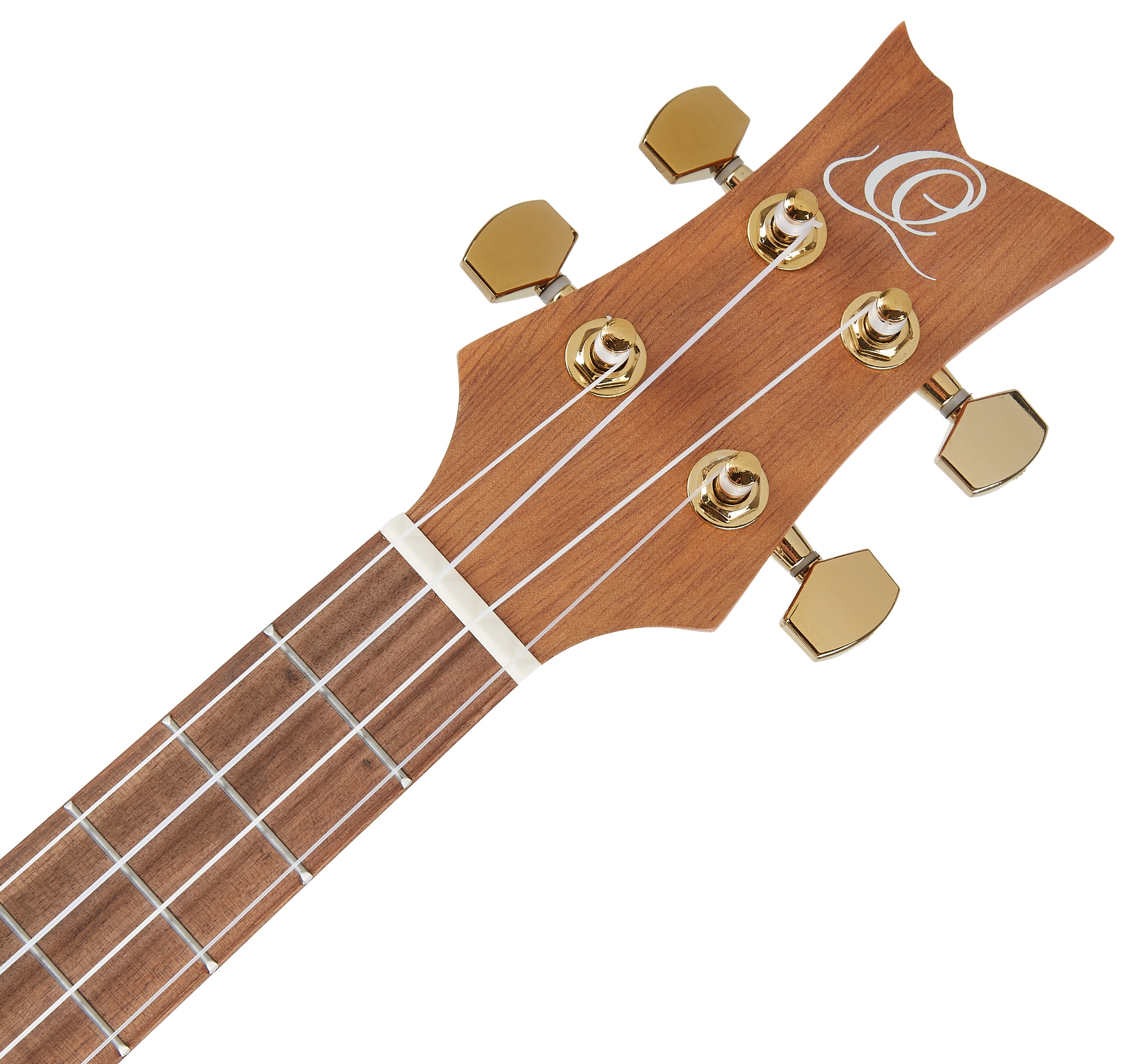 Elektroakustické ukulele Elektroakustické ukulele Lizard z rovnomennej série Ortega ponúka kvalitné spracovanie, skvelý vzhľad exotických drevín a štýlový dizajn v podobe laserového gravírovania s motívmi jašterice (hmatník, rozeta). Nástroje sa dodávajú v praktickom gig bagu. Telo tohto tenorového ukulele je vyrobené z prelisovaného exotického dreva dao. Mahagónový krk je osadený orechovým hmatníkom so sedemnástimi pražcami. Struny sú uložené v orechovom hmatníku a uzavreté zlatými ladiacimi mechanikami v