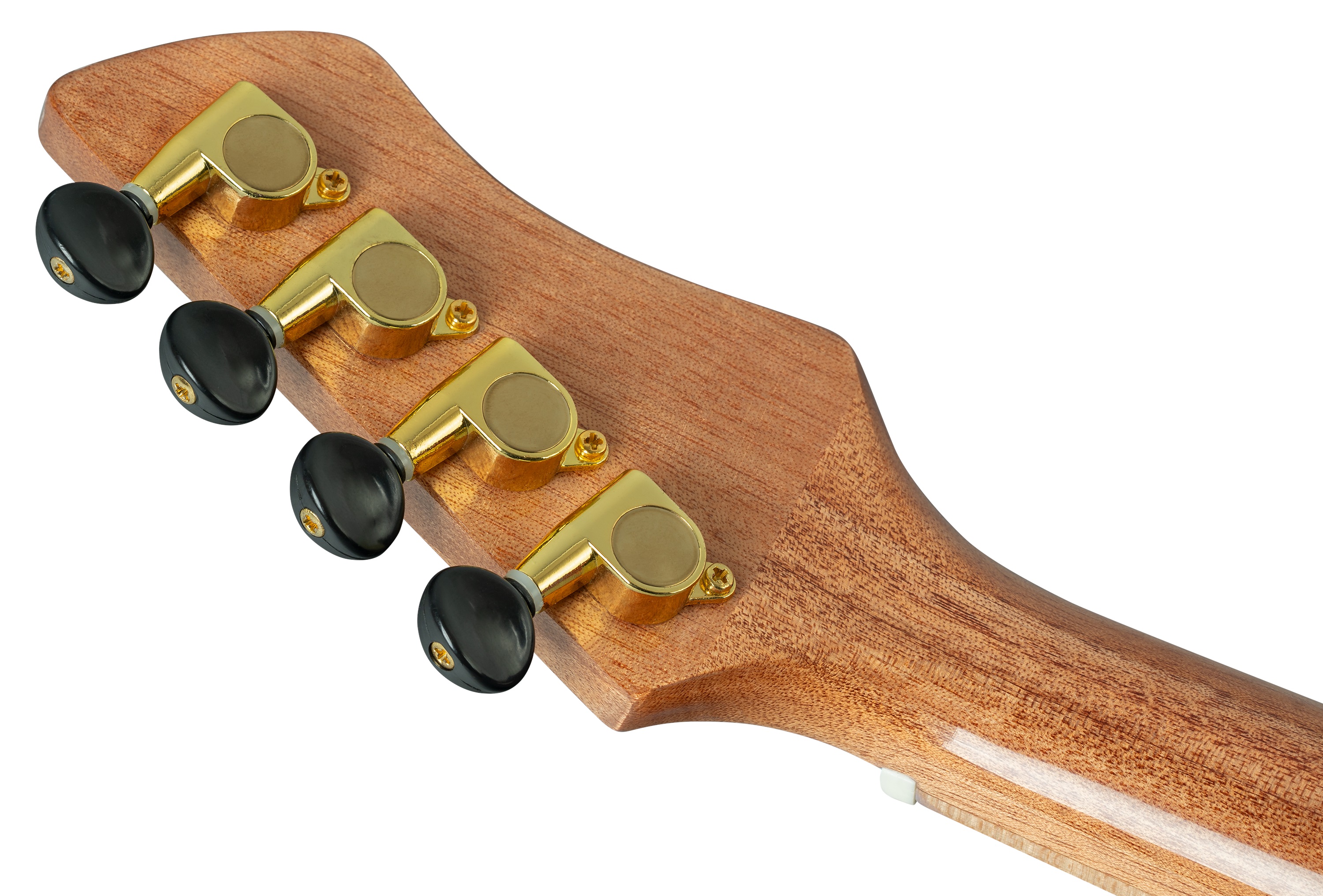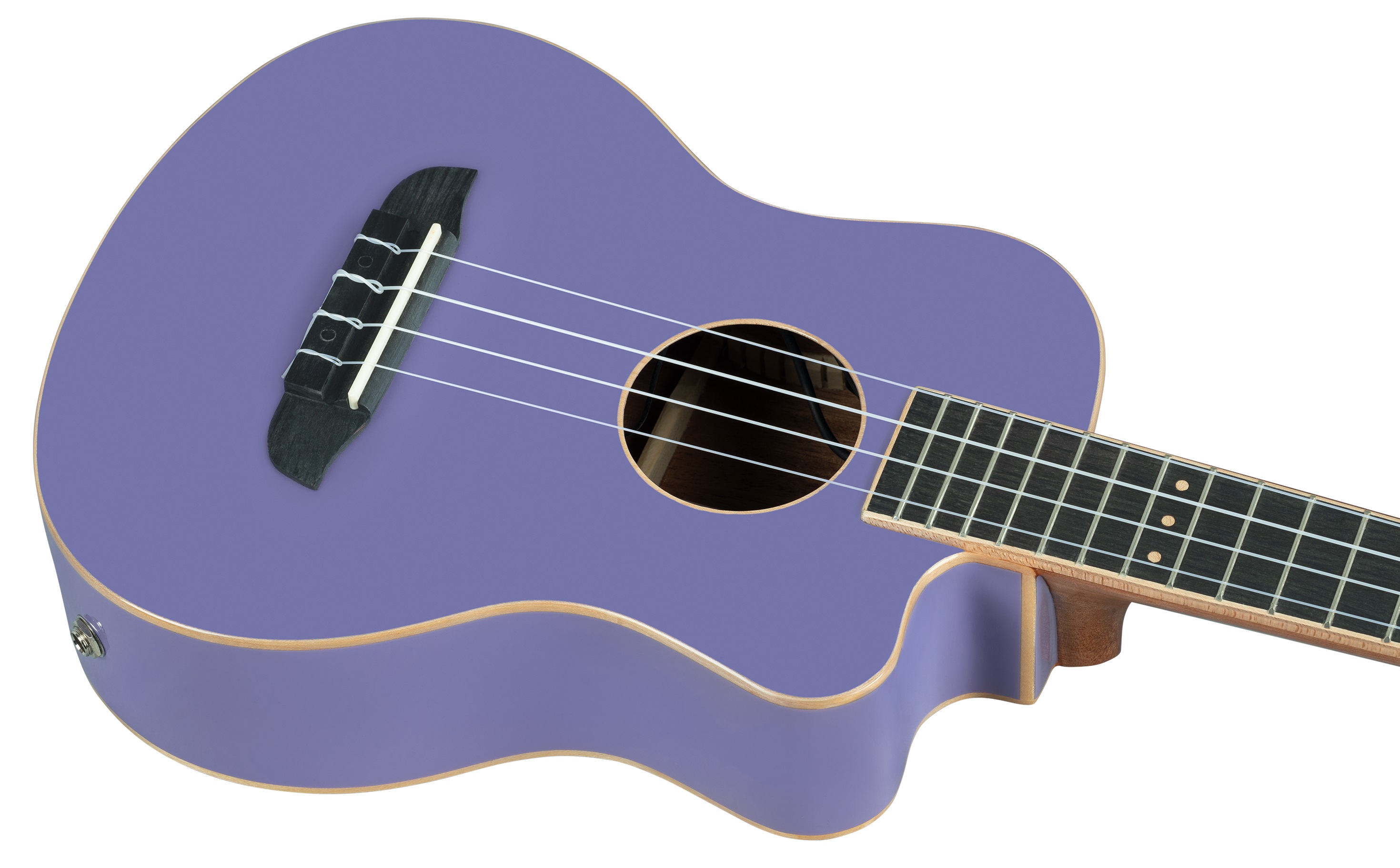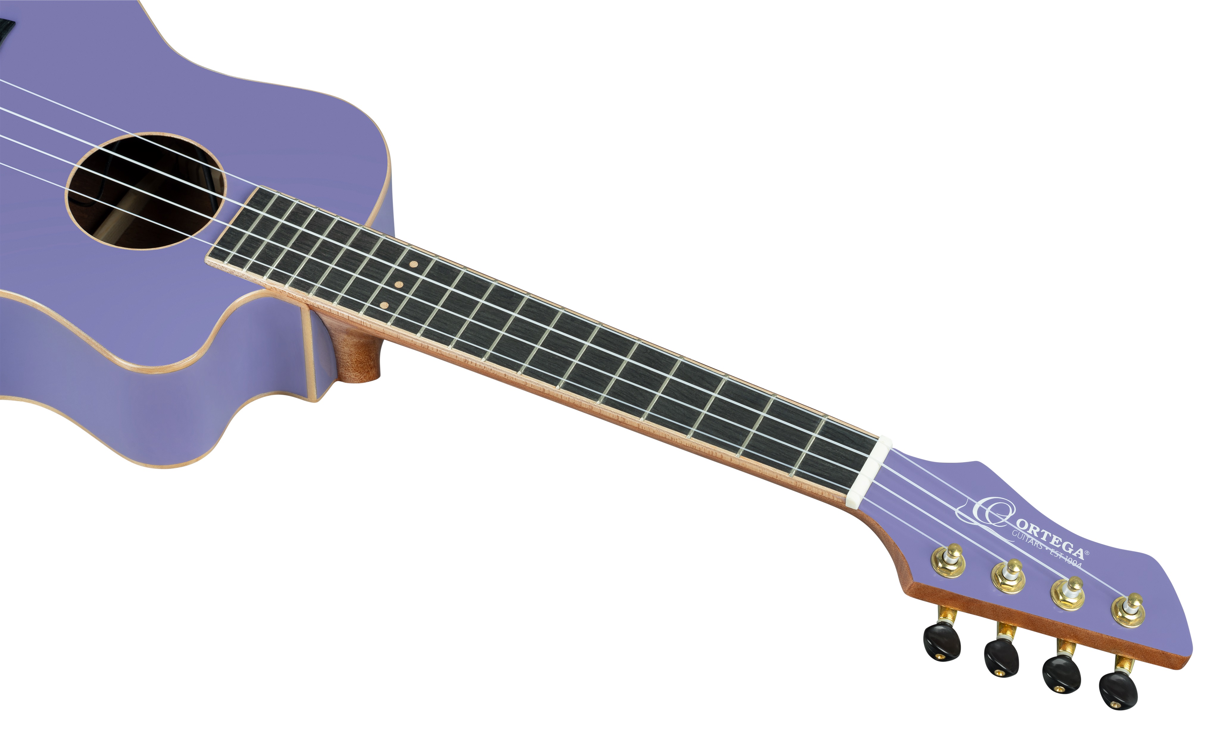 Elektroakustické ukulele Rad Horizon od Ortegy ponúka kvalitne spracované akustické a elektroakustické ukulele s charakteristickou hlavicou v tvare elektrickej gitary. Jednoducho ukulele pre budúce hviezdy pop music Predná strana elektroakustického ukulele RUHZT-CE-VP je vyrobená z masívneho cédru, zatiaľ čo zadná strana a luby sú z preglejky okoumé. Krk z okoumé je prilepený k modernému kompozitnému hmatníku s osemnástimi pražcami. Spodný výrez tela zabezpečuje jednoduché ladenie aj vo vyšších polohách hma