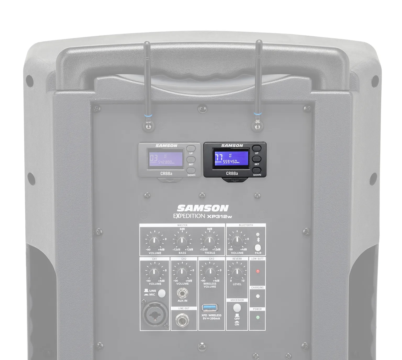 Vokálna bezdrôtová súprava Samson Concert 88a – K je zásuvný modul bezdrôtového systému UHF určený pre reproduktory Expedition XP310w / XP312w. Chcete k svojmu prenosnému reproduktoru Expedition XP310w alebo XP312w s batériovým napájaním pridať ďalší bezdrôtový systém UHF? Tento balík obsahuje bezdrôtový vysielač v podobe bezdrôtového mikrofónu CH88 s dynamickou kapsulou Q6 a kardioidnou charakteristikou snímania a jedinečn