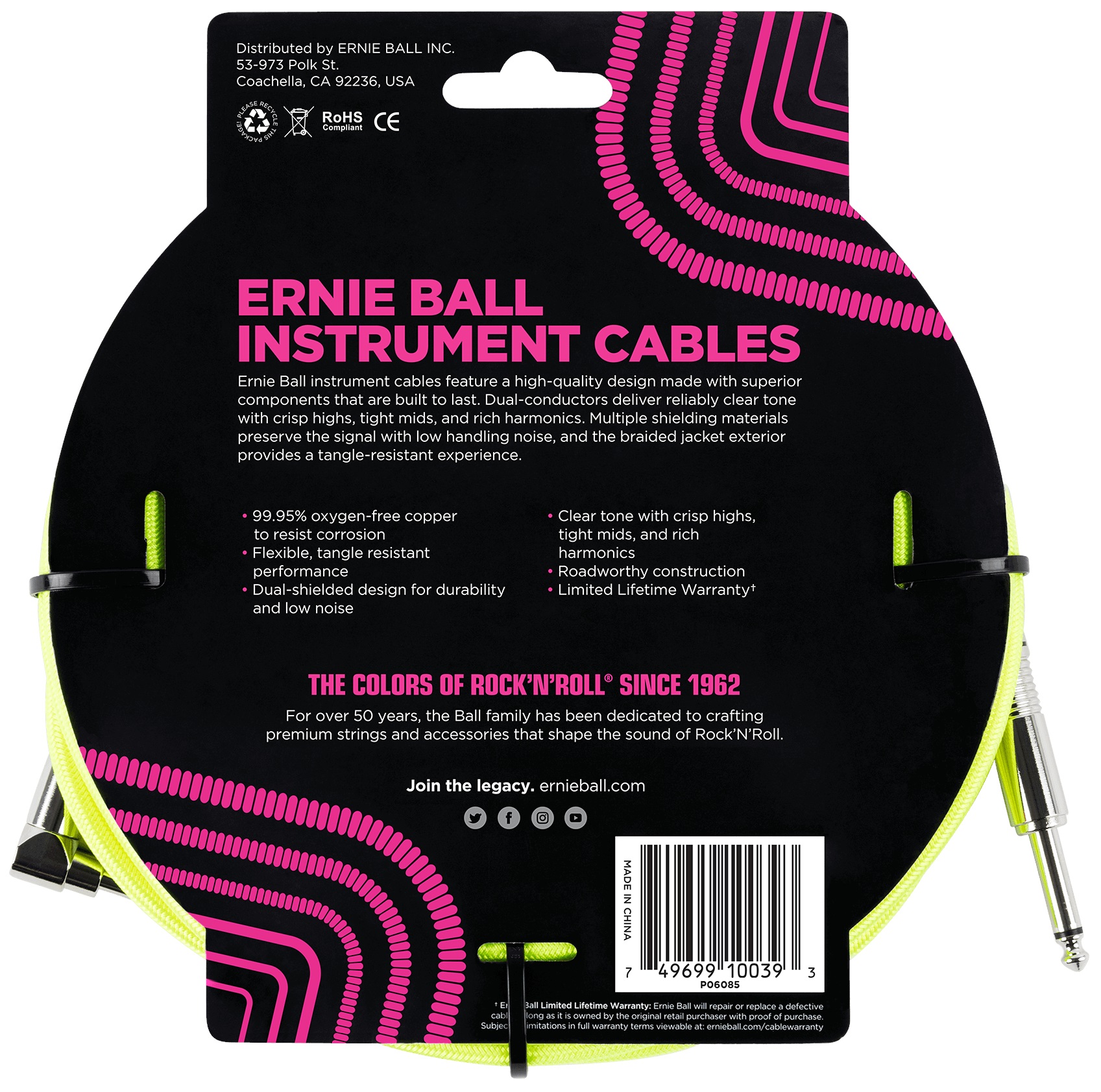 Nástrojový kábel Nástrojové káble série Ernie Ball Braided sú vyrobené z kvalitných materiálov, ktoré zaručujú odolnosť a dlhú životnosť. Dvojitý drôt zaručuje čistý tón s jasnými výškami, hutnými stredmi a bohatou rezonanciou. Viacnásobné vrstvy tienenia spoľahlivo eliminujú akýkoľvek šum a vďaka opletenému vonkajšiemu plášťu si môžete byť istí, že sa kábel nezamotá ani nezlomí. Výhodou opletenia je aj jedinečný štýlový dizajn. Značka Ernie Ball je svetoznámy výrobca strún