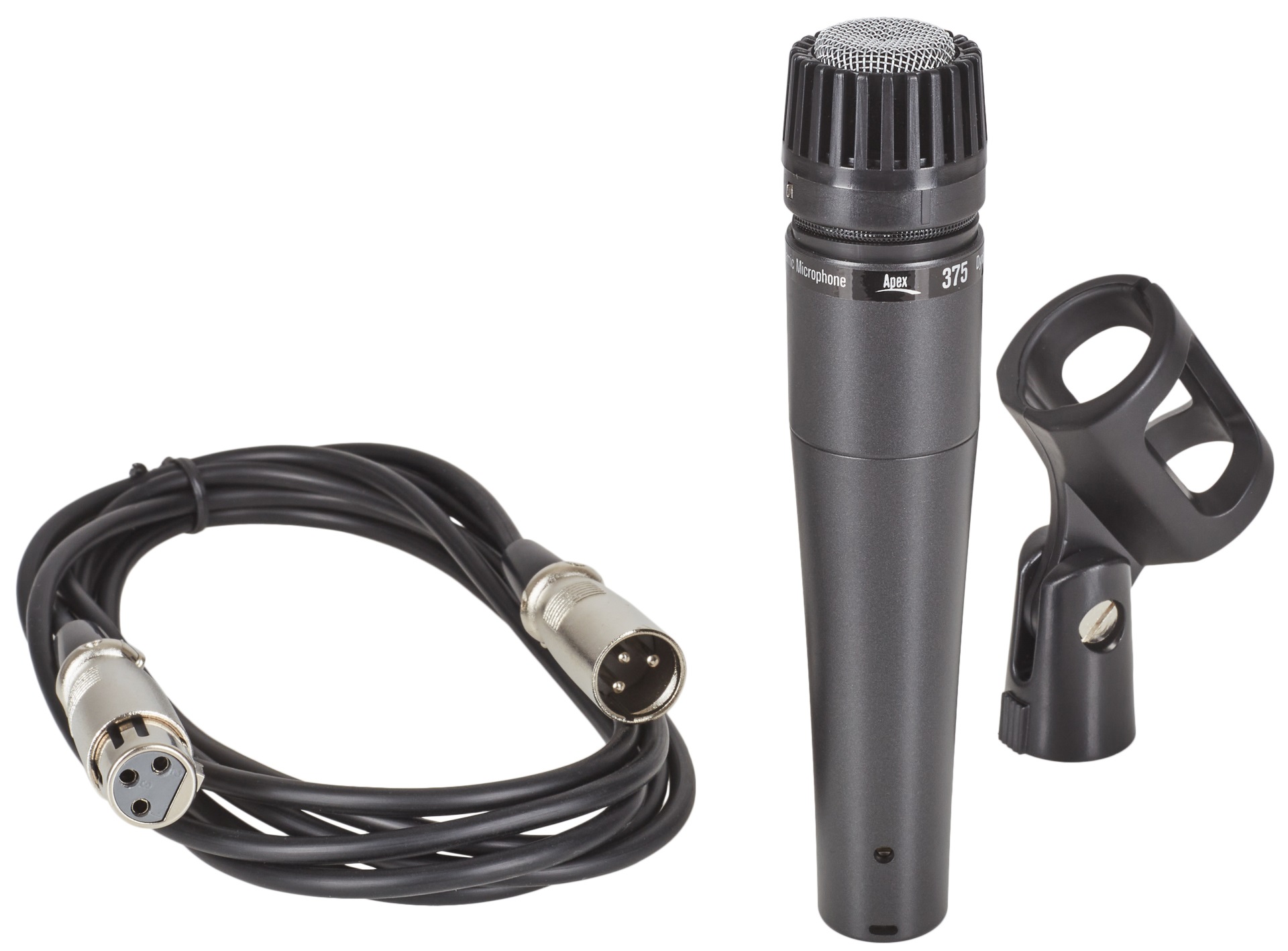 Dynamický nástrojový mikrofón Apex 375 je dynamický nástrojový mikrofón s kardioidnou smerovou charakteristikou vhodný na nahrávanie zvuku bicích nástrojov, perkusií alebo gitarových/basových reproduktorov. Smerová charakteristika mikrofónu izoluje zdroj zvuku od okolitého hluku, zatiaľ čo izolácia vnútornej kapsuly minimalizuje hluk pri manipulácii s mikrofónom. Poteší aj odolná celokovová konštrukcia a pozlátené konektory XLR pre lepšiu kvalitu signálu. Súčasťou balenia je mikrofónový kábel XLR a držiak m