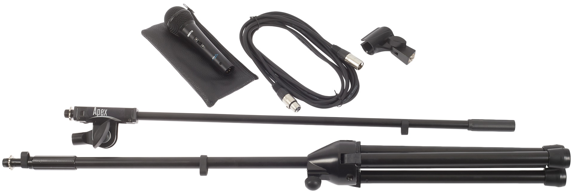 Dynamická mikrofónna súprava Sada dynamického mikrofónu Apex MP1 obsahuje dynamický mikrofón Apex 870B, pochrómovaný mikrofónový stojan s držiakom a kábel XLR. Dynamický mikrofón Apex 870B je vhodný na spev a hovorené slovo. Odolná konštrukcia je vybavená mikrofónovou kapsulou s prepínačom, kardioidnou smerovou charakteristikou, širokým frekvenčným rozsahom a schopnosťou odolávať vysokému akustickému tlaku pre čo najautentickejší prenos zvukového signálu. Zároveň minimalizuje okolitý hluk, takže získate kri