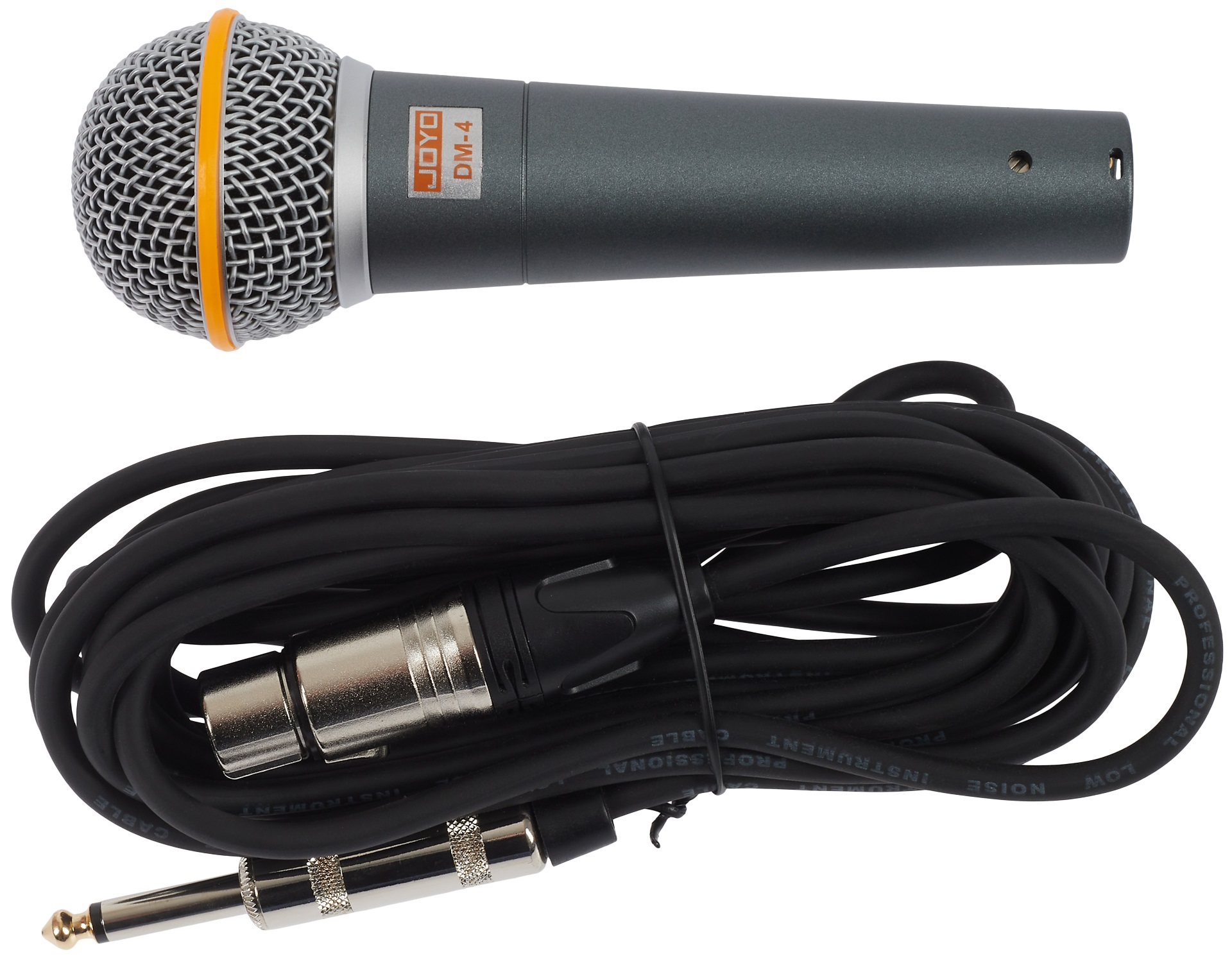 Dynamický mikrofón Joyo DM-4 je profesionálny dynamický mikrofón. Vlastnosti > Dynamický mikrofón s kapsulou navrhnutý špeciálne pre vokály > Špeciálne navrhnutá superkardioidná charakteristika poskytuje čisté vokály a účinne redukuje zvuk mimo osi > široká frekvenčná odozva a vysoká citlivosť > Zabudovaný pop filter účinne zabraňuje vzniku tvrdých spoluhlások > zliatina liateho hliníka s povrchovou oxidáciou a pieskovaním, ako aj mriežka z oceľového pletiva