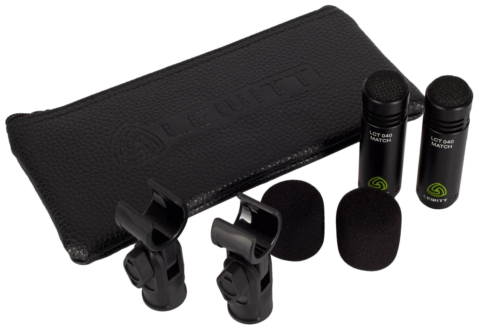 Kondenzátorový mikrofón – stereopár Sada dvoch mikrofónov Lewitt 040 Match na vytváranie stereo nahrávok. Lewitt 040 Match je kondenzátorový mikrofón s malou membránou, ideálny na nahrávanie akustických gitár alebo bicích nástrojov. Použite ho na získanie autentického záznamu akustickej gitary alebo na ostrý a presný záznam činelov či snare bubna. Kardioidná charakteristika zaručuje maximálne zameranie na zdroj zvuku a eliminuje okolitý hluk. Pomocou dvoch mikrofónov Lewitt 040 Match je tot