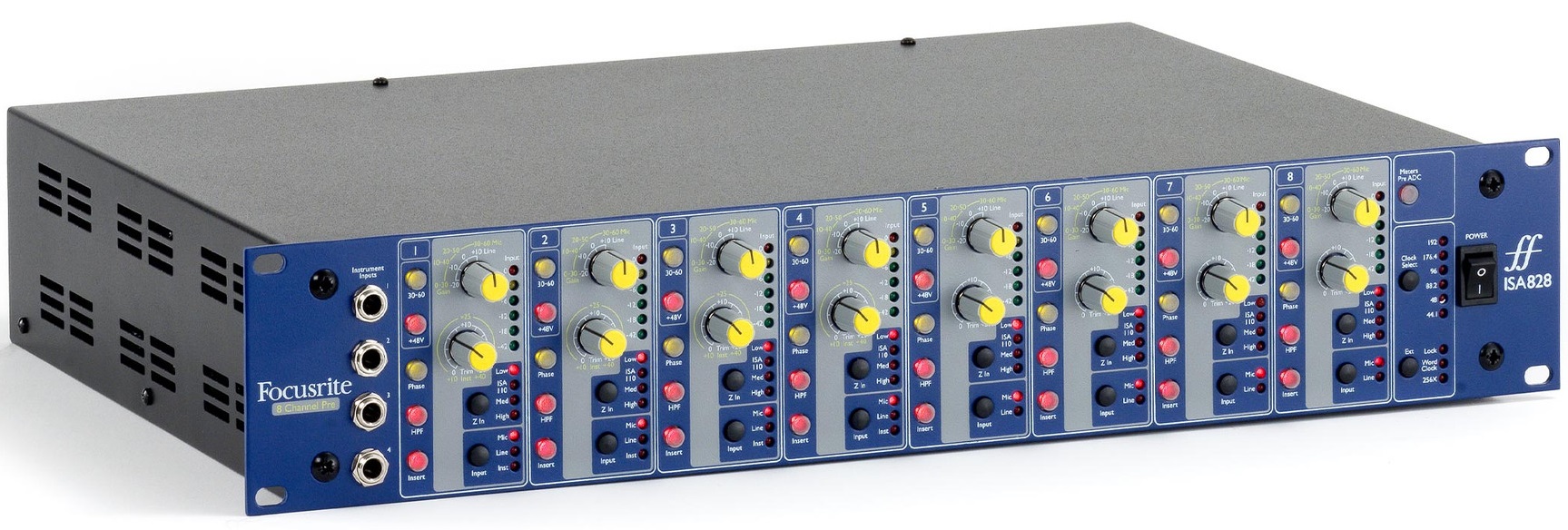 Mikrofónny predzosilňovač Focusrite ISA 828 MKII je všestranný a flexibilný osemkanálový mikrofónový predzosilňovač v 2U rackovom prevedení vybavený vstupnými transformátormi Lundahl a nezávislými linkovými a nástrojovými vstupmi. Topológia predzosilňovača je založená na obvodoch pôvodného ISA110 navrhnutého Rupertom Neveom, teda na obvodoch, ktoré sa už desaťročia používajú v najúspešnejších produktoch Focusrite. Vstupný transformátor Lundahl LL1538 použit