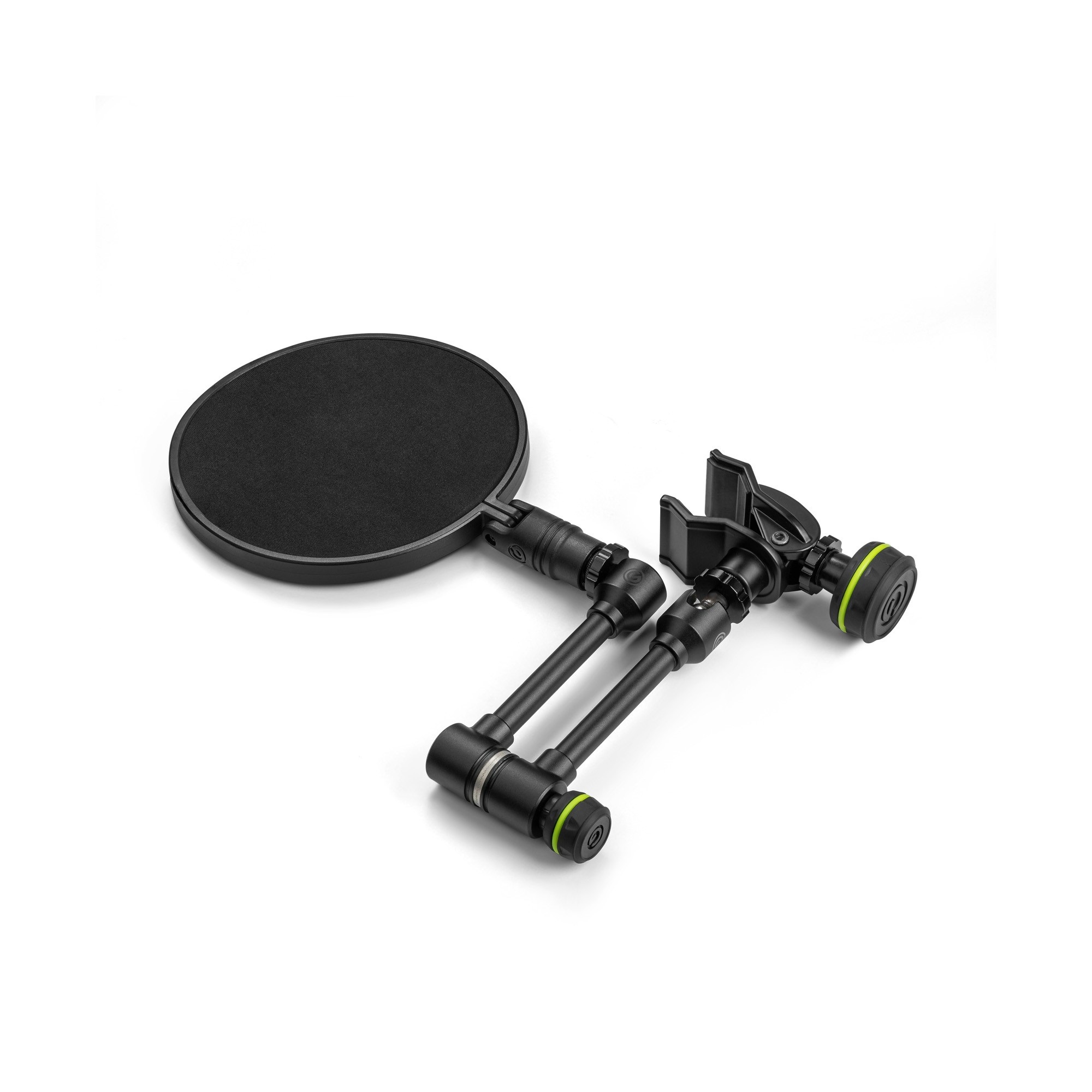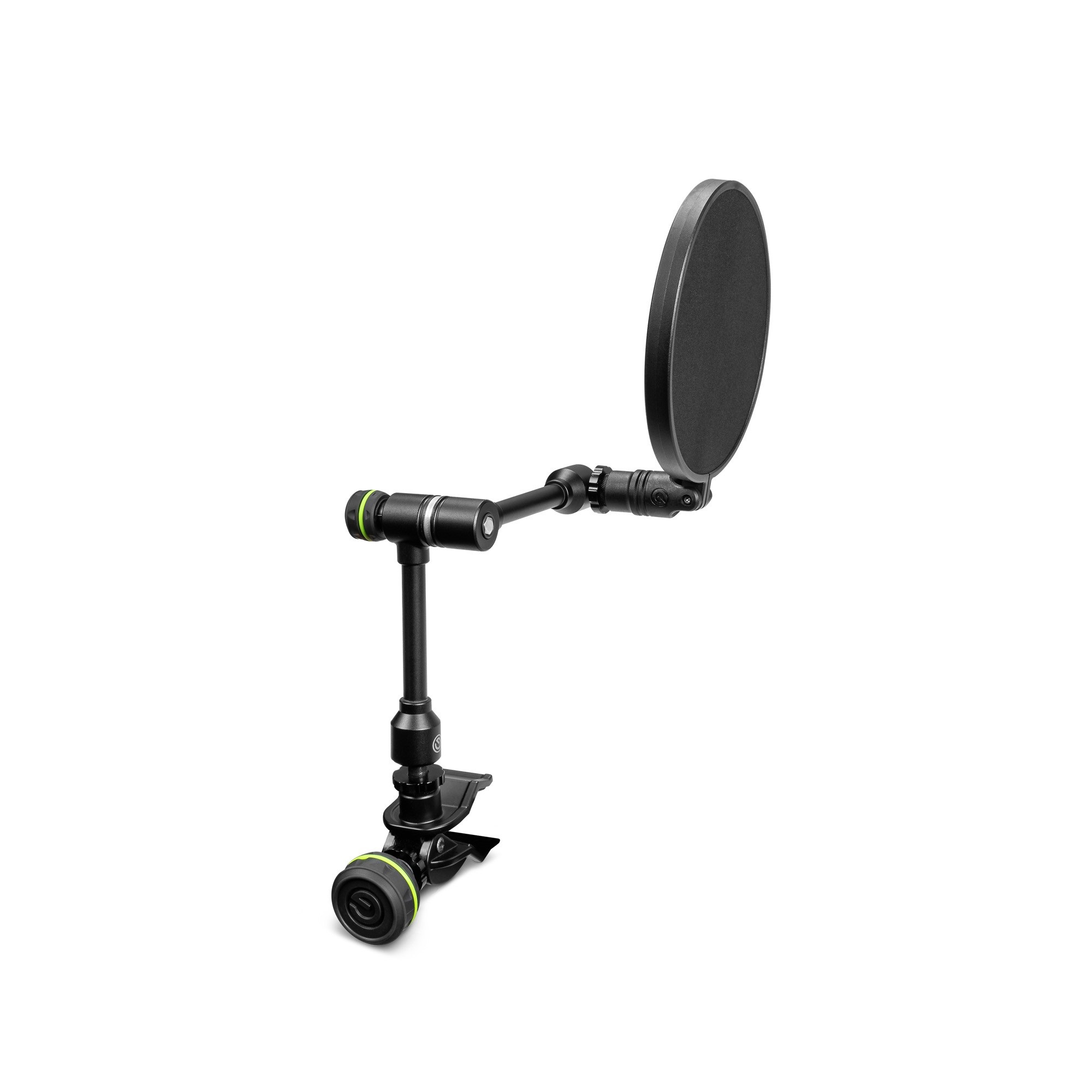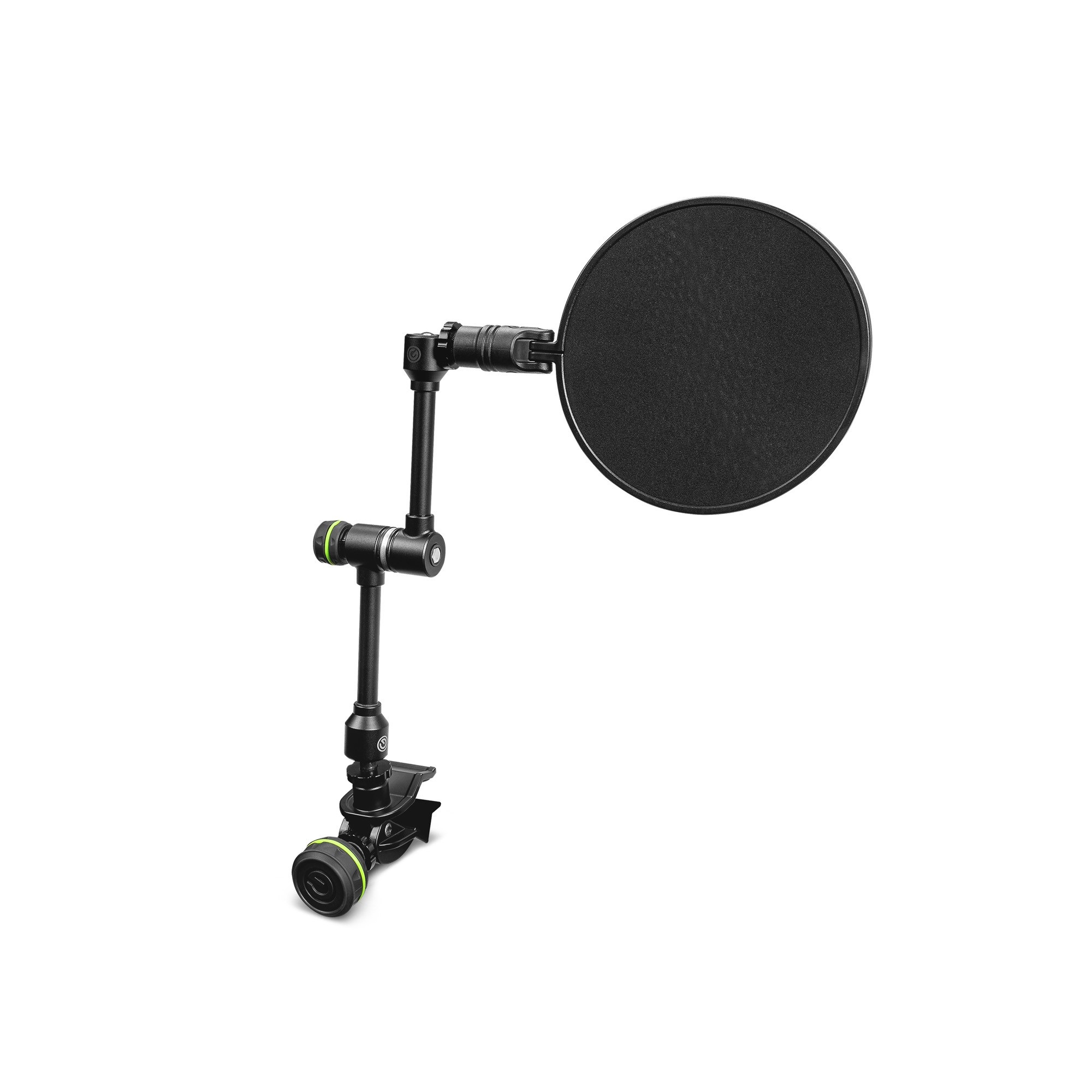Pop filter Vysoko odolný pop filter vhodný do profesionálnych nahrávacích štúdií. Má nastaviteľné rameno a širokú dvojitú nylonovú obrazovku na zachytenie rušivých ploských spoluhlások. Pop filter možno namontovať na mikrofónové stojany a stolové dosky s priemerom 15 – 35 mm.