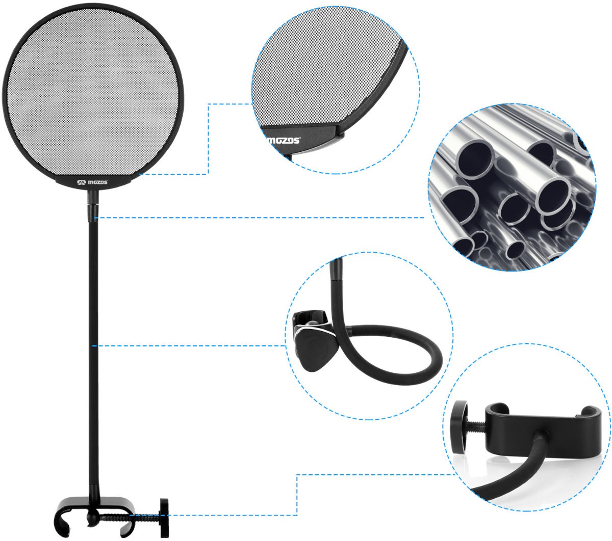 Pop filter Mozos PS-PRO je vylepšená verzia obľúbeného pop filtra PS-1. Nový model ponúka kvalitnejšiu konštrukciu, v ktorej plastové komponenty nahradili kovové.