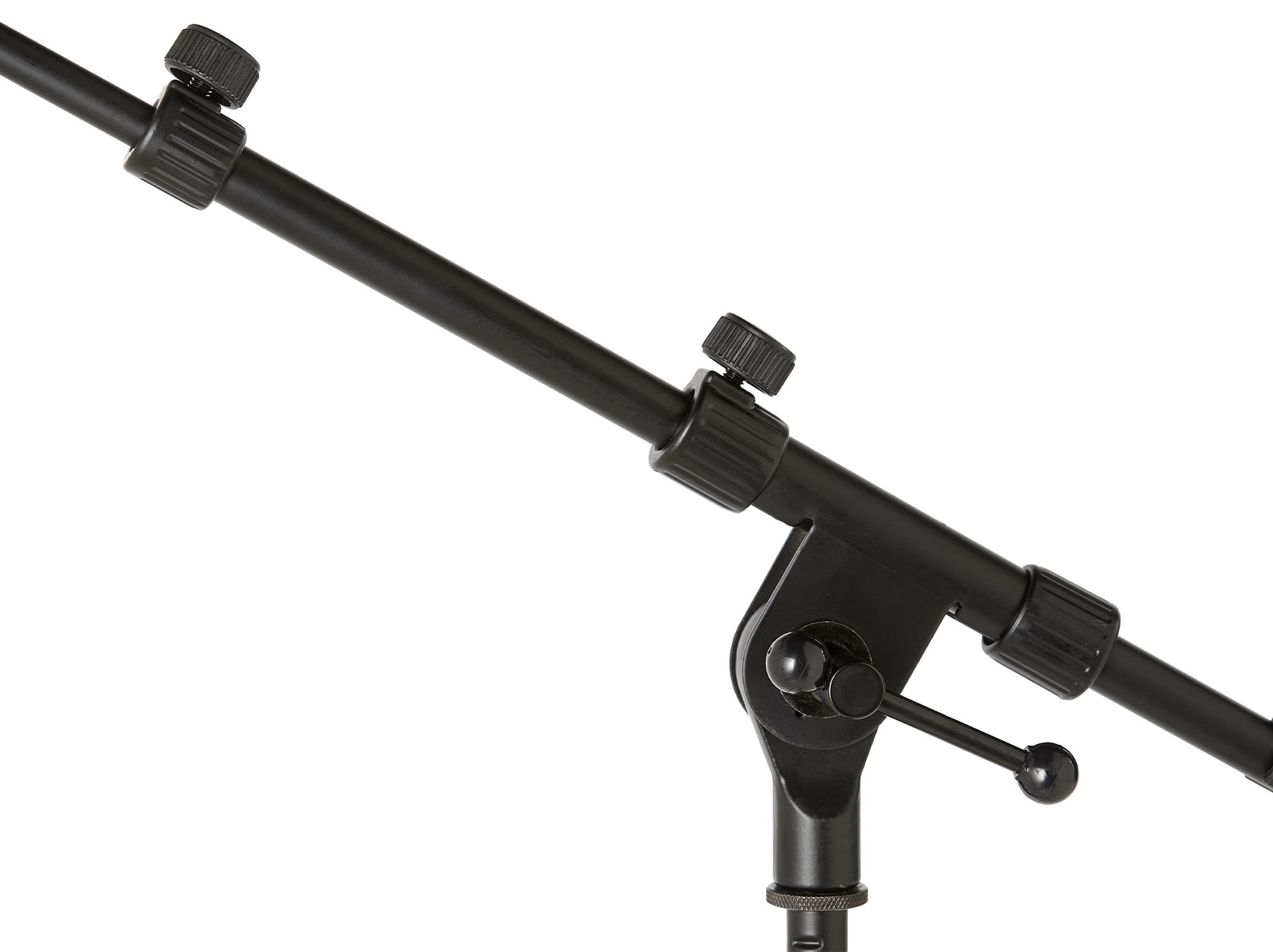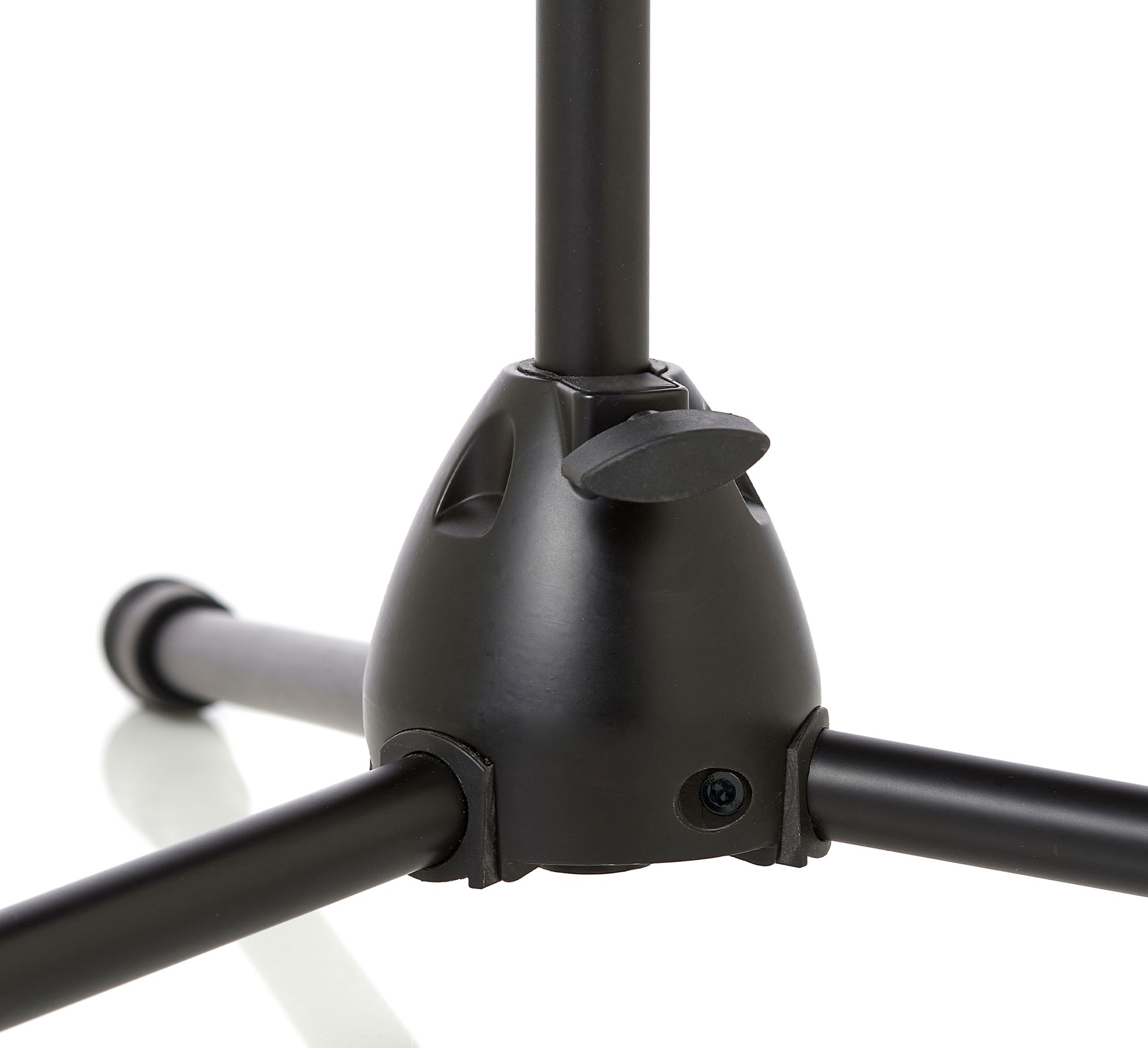 Mikrofónny stojan Profesionálny mikrofónový stojan s teleskopickým ramenom (rozsah 49 – 86 cm), stredovým kĺbom, kovovou základňou, ergonomickou spojkou a protizávažím zo zaťaženého nylonu. Nohy sú vybavené antivibračnými gumovými podložkami. Vďaka svojej stabilite je stojan mimoriadne vhodný do každej situácie.