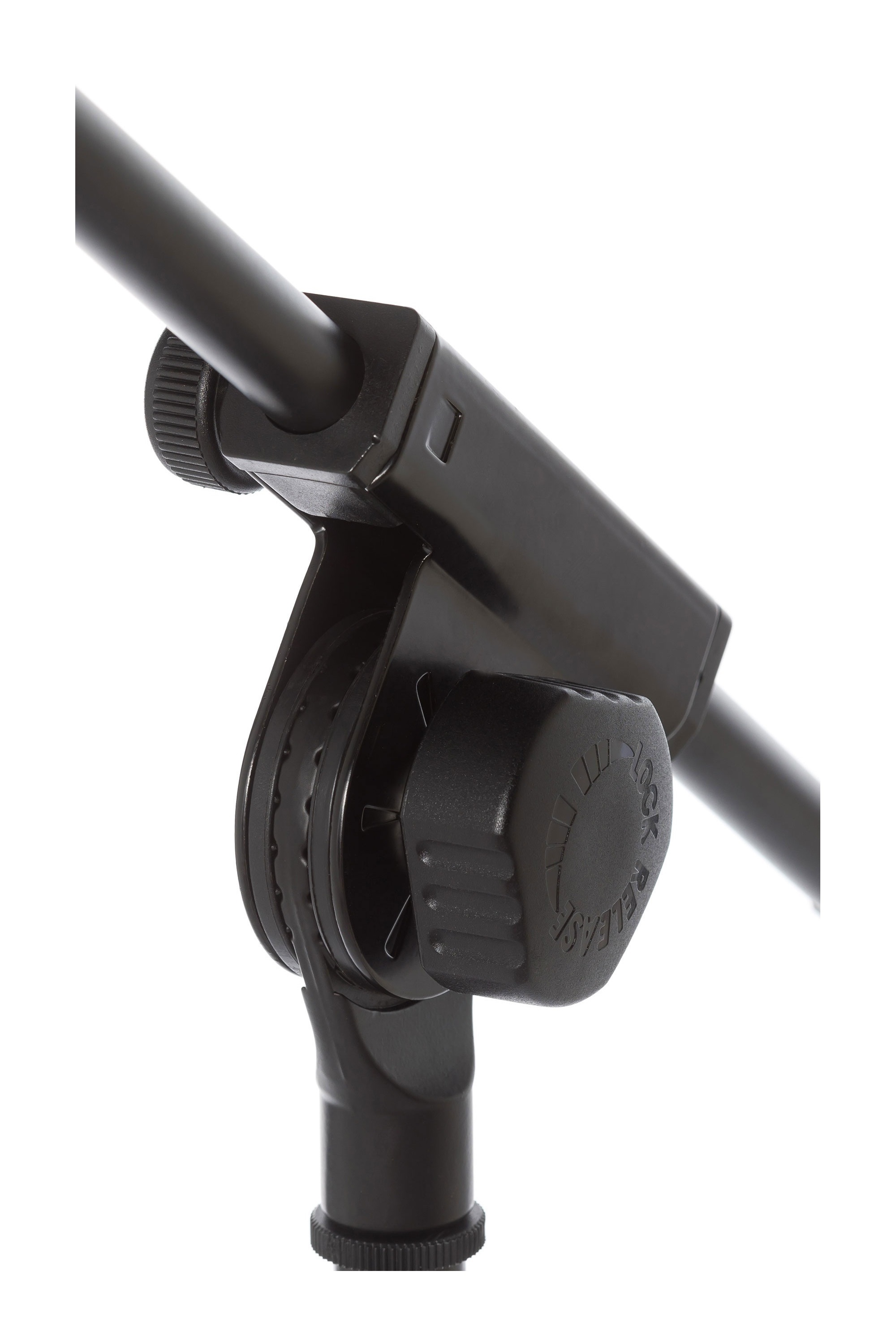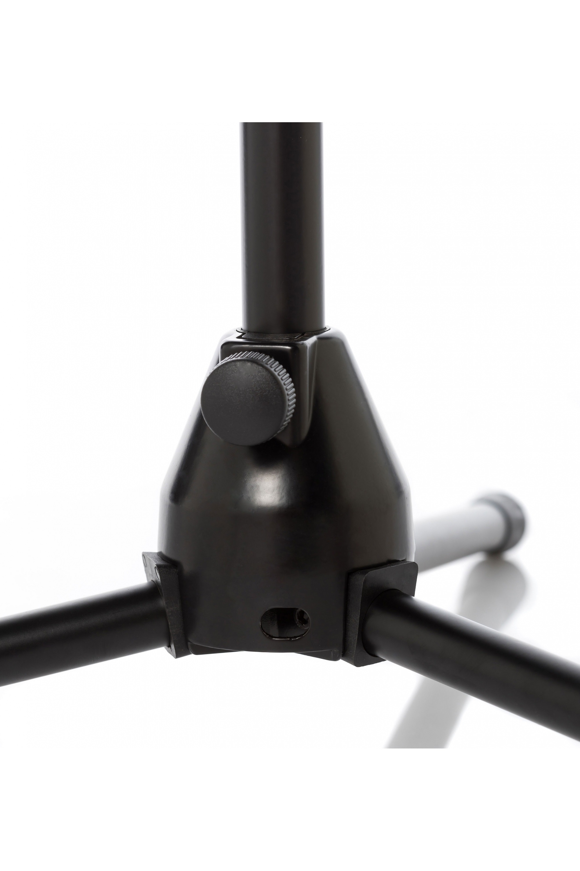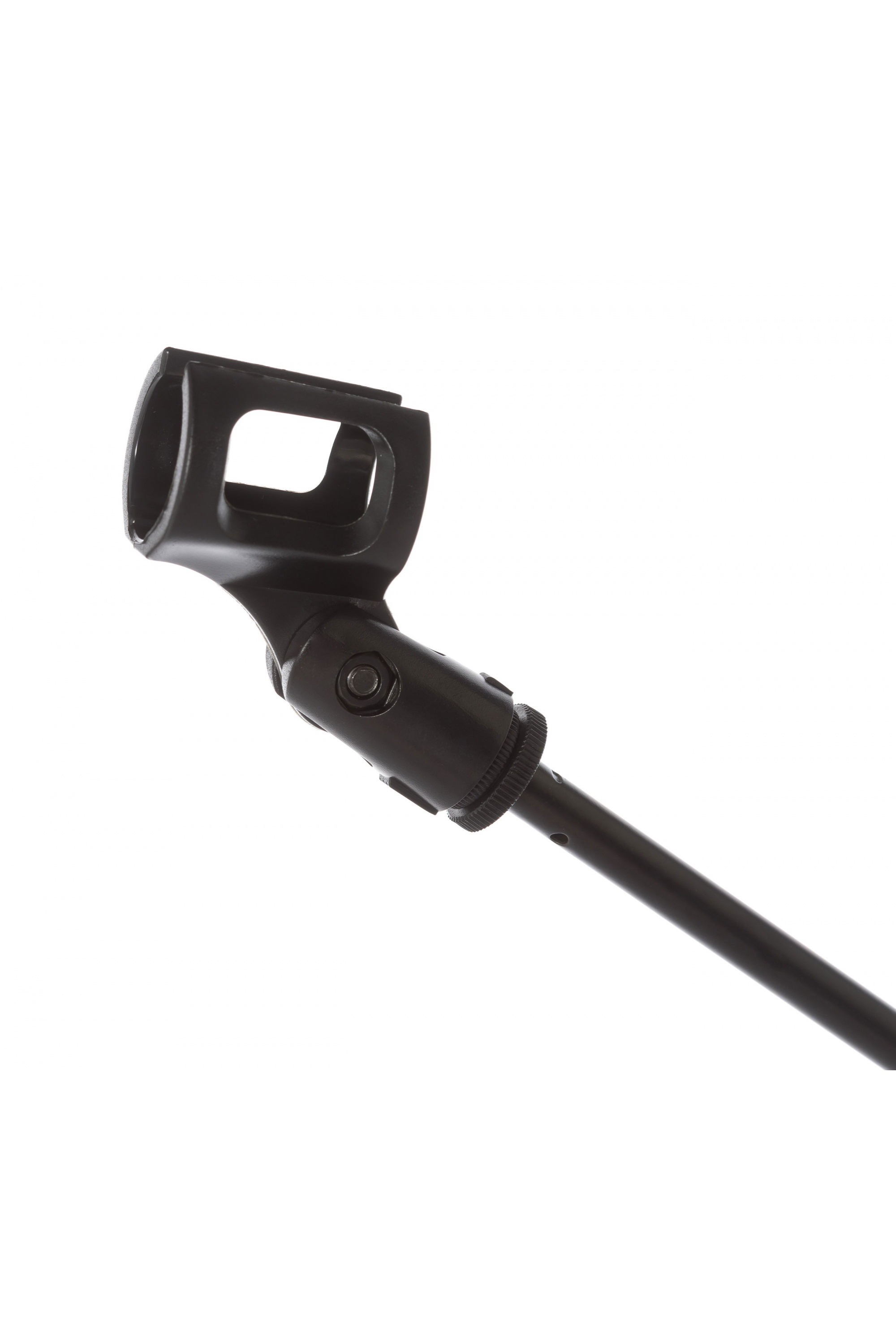 Mikrofónny stojan Mikrofónový stojan s teleskopickým ramenom, vhodný pre všetky typy mikrofónov. Odolná kovová konštrukcia s pevným závesom v spodnej časti udržiava stojan v maximálnej stabilite, zatiaľ čo pogumované materiály tlmia nárazy do zeme alebo vibrácie spôsobené basovými frekvenciami. Nastavenie výšky a sklonu možno zabezpečiť tromi závitmi. Súčasťou balenia je kvalitný plastový držiak mikrofónu.