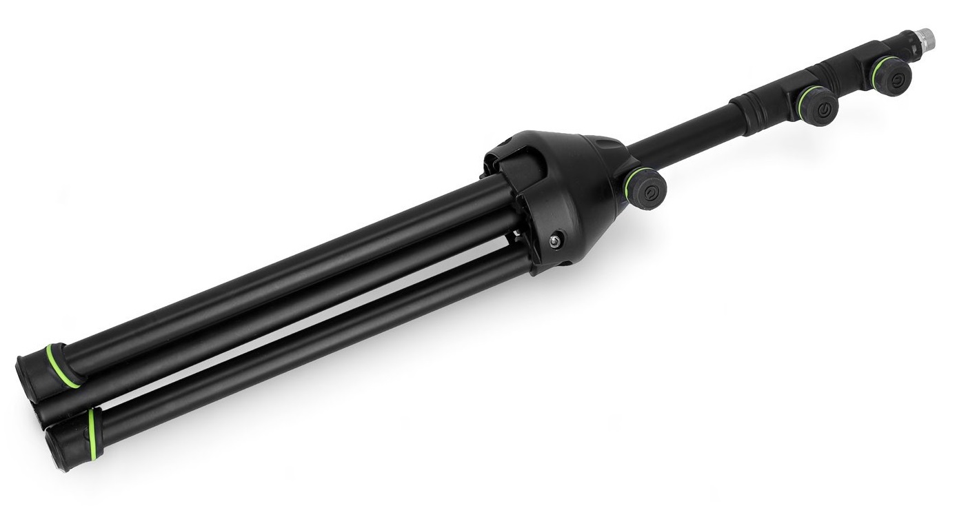 Mikrofónny stojan Robustný oceľový mikrofónový stojan so zinkovým odliatkom na trojnožke, nastaviteľnou výškou od 700 mm do 1610 mm a kompaktnými rozmermi v zloženom stave (620 mm).