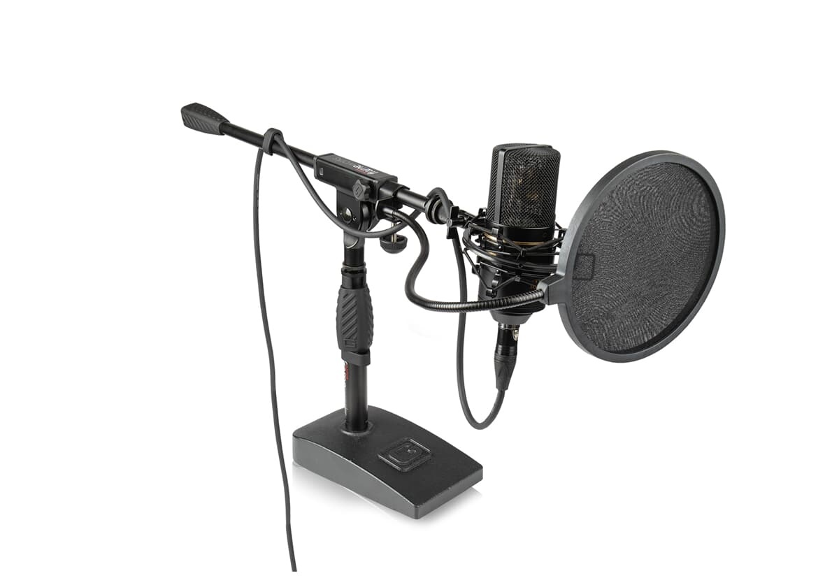 Mikrofónny stojan Ozvučte svoju gitaru alebo kopák pomocou mikrofónového stojana GFW-MIC-0821 s robustnou oceľovou konštrukciou so stabilnou základňou, 16-palcovým ramenom a organizérom káblov. Výrobok je kompatibilný s mikrofónovými držiakmi Euro aj US.