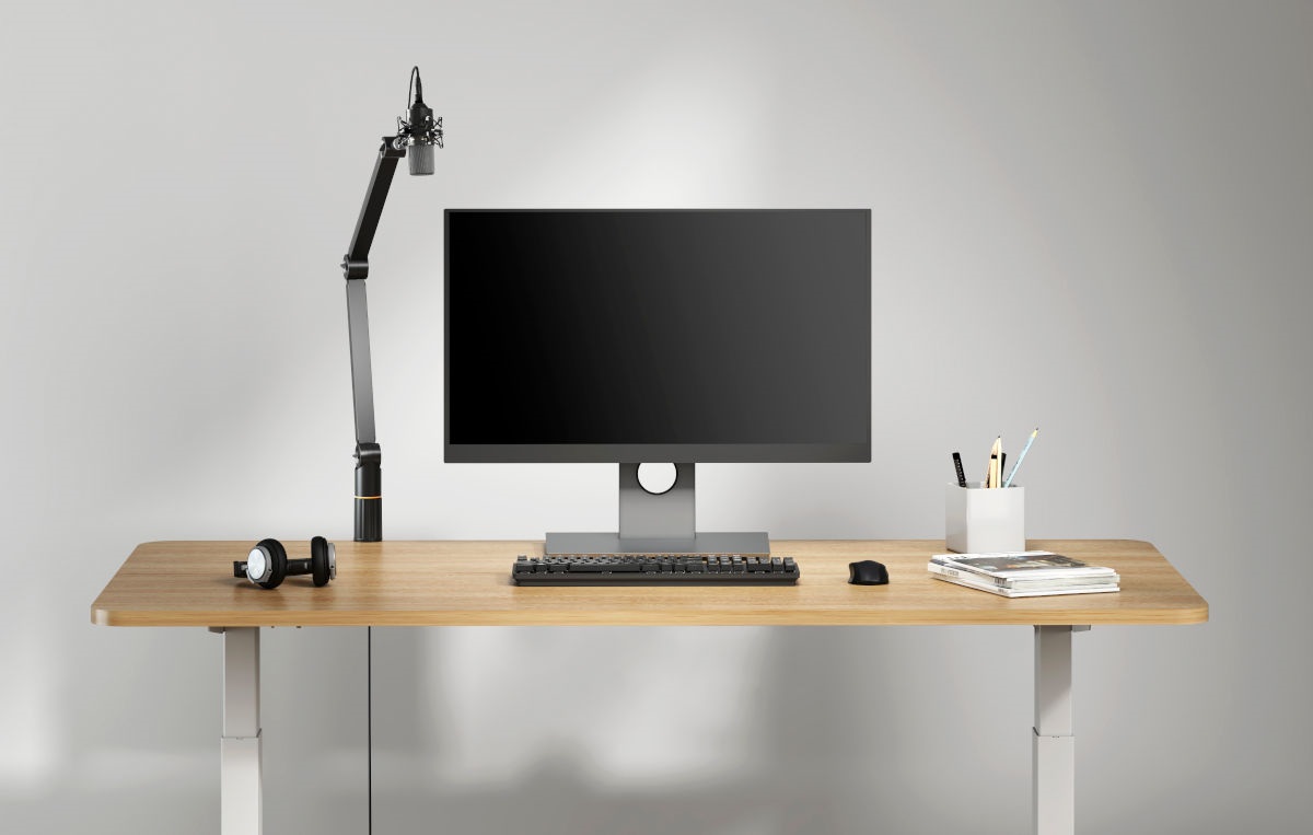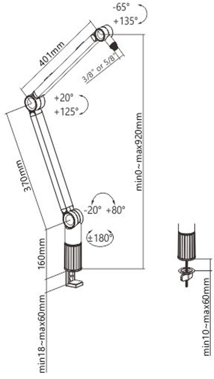 Mikrofónny stojan Prvotriedny mikrofónový stojan vhodný pre všetkých kreatívcov a zvukových nadšencov, ako aj pre študentské rádio, živé vysielanie alebo youtubing. Stojan je vyrobený z kombinácie ocele, plastu a hliníka, má integrovaný manažment káblov, možnosť otáčania o 360 stupňov a v neposlednom rade pohodlné nastavenie sklonu a výšky. Stojan sa upevňuje pomocou závitu na dosku stola s výškou do 60 mm. Súčasťou balenia je redukcia so závitom 5/8".