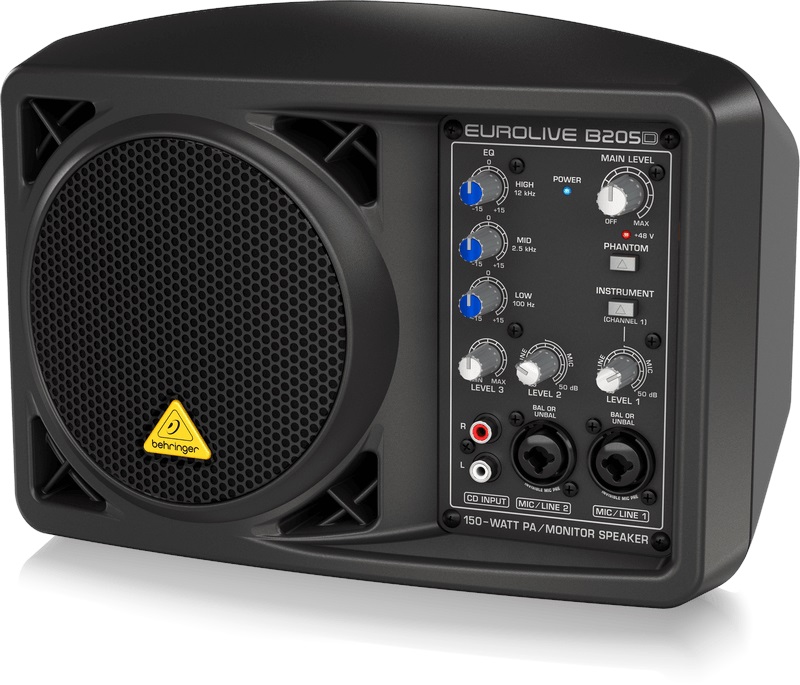 Aktívny reprobox Ultrakompaktný aktívny reproduktor s trojkanálovým mixom vhodný na malé koncerty v interiéri aj exteriéri, firemné večierky alebo záhradné párty. Získate vysoko výkonný systém s intuitívnym ovládaním a flexibilným pripojením. V odolnej konštrukcii modelu B209D sa nachádza 5,25" reproduktor, ktorý spolu so zosilňovačom triedy D poskytuje maximálny výkon až 150 W. Na hlavnom paneli sa nachádza trojkanálový mixér s trojpásmovým ekvalizérom a ovládačmi hlasitosti. Nájdete tu aj dva kombinované