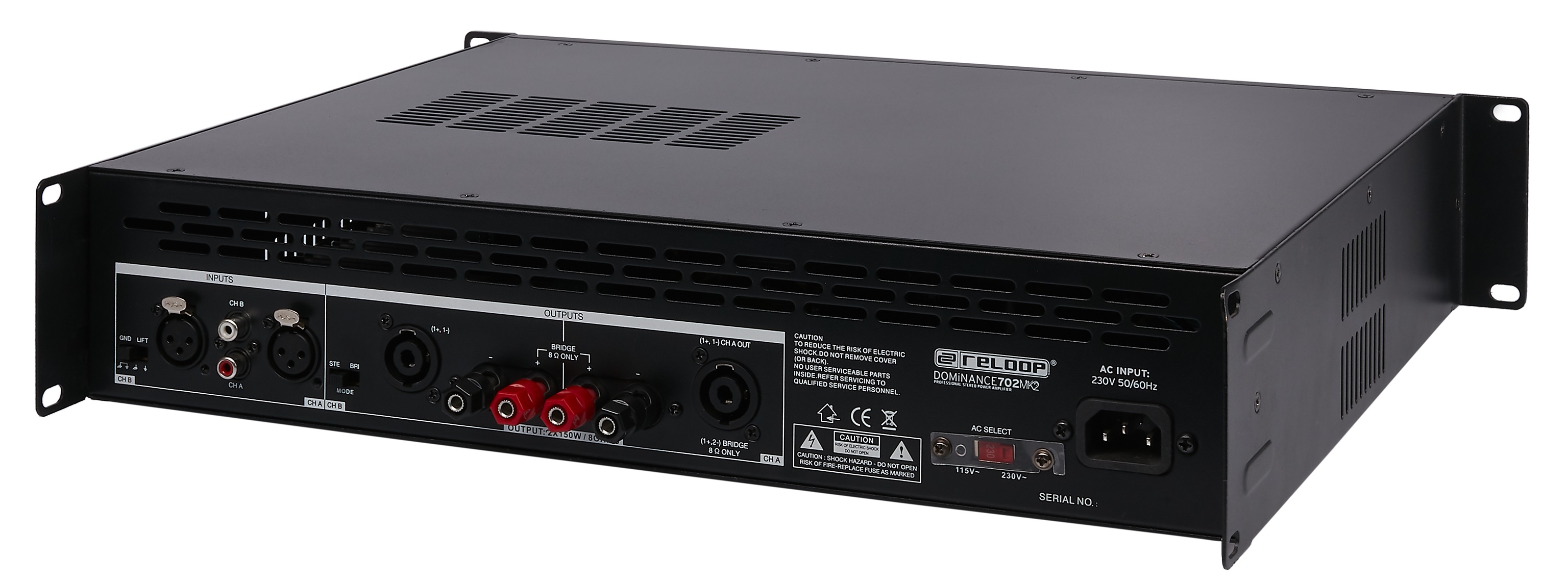 Koncový zosilňovač Druhá séria zosilňovačov Dominance kombinuje inteligentnú elektroniku a kvalitné spracovanie, vďaka čomu je ideálnym zariadením na použitie v gastronomických zariadeniach, obchodoch alebo kluboch. Rozsiahly bezpečnostný obvod spoľahlivo zabraňuje akémukoľvek preťaženiu. Zosilňovač produkuje až 2x 180 W stereo pri impedancii 4 Ohm a 2x 120 W pri impedancii 8 Ohm. Dvojkanálový zosilňovač dostal nový moderný dizajn, možnosť pripojenia ako Bridge mono a znížila sa jeho hmotnosť. Zachováva si