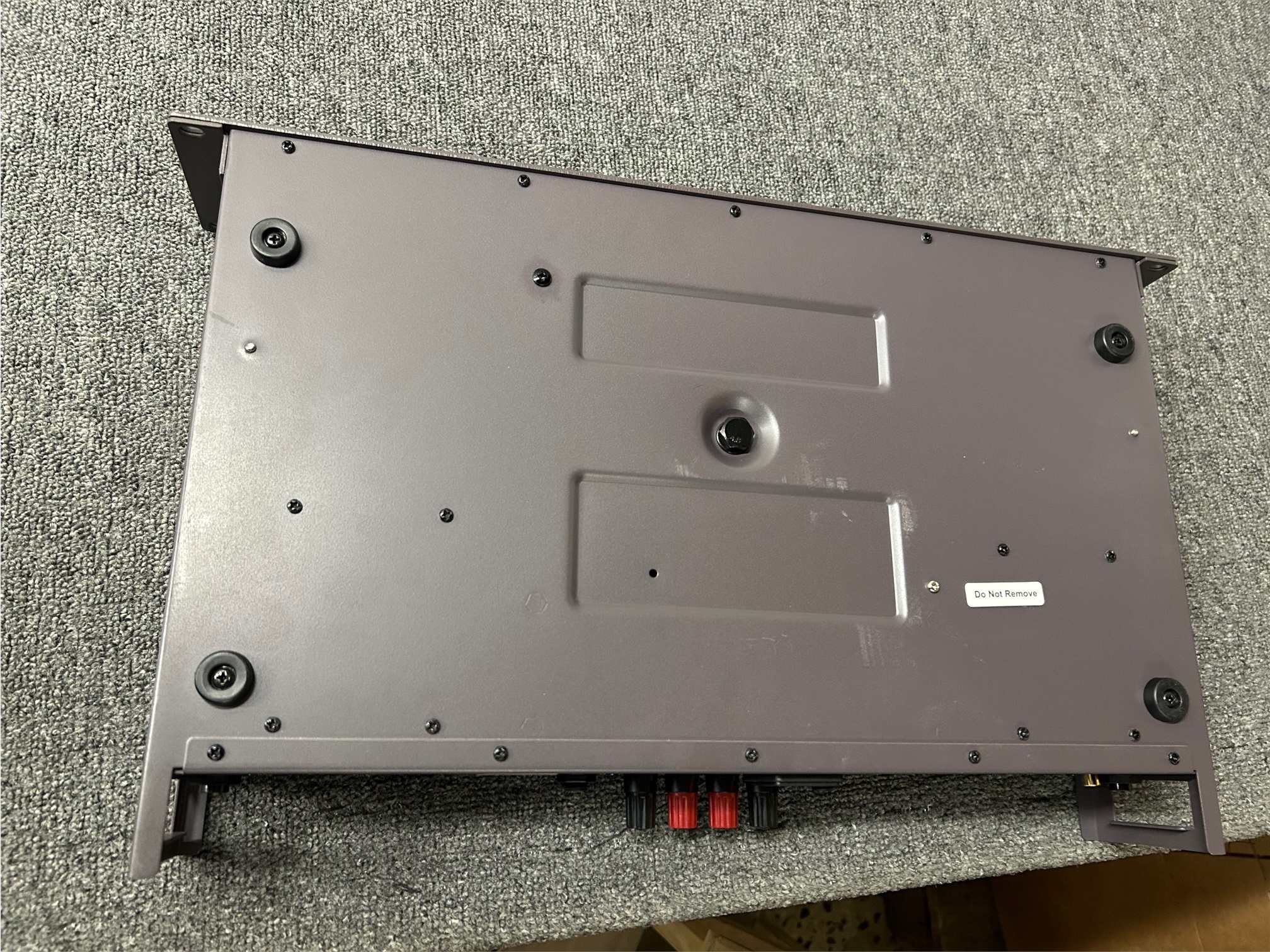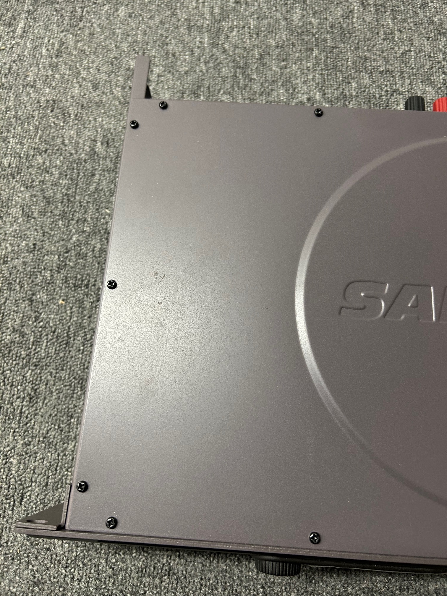 Koncový zosilňovač Položka vykazuje známky opotrebovania spôsobené častým používaním alebo dlhodobým vystavovaním v obchode (pozri fotografiu). Konštrukcia stereo zosilňovačov serva je založená na pevnom výkonovom jadre, toroidnom transformátore a silnom výtlačnom chladiči. Na udržanie chladenia zosilňovačov konštruktéri použili dva vnútorné tunely, ktoré sú vybavené ventilátormi s premenlivou rýchlosťou. Tým sa dosahuje plynulá prevádzka za každých okolností. Servo ponúka čistý zvuk, veľmi nízke skreslenie