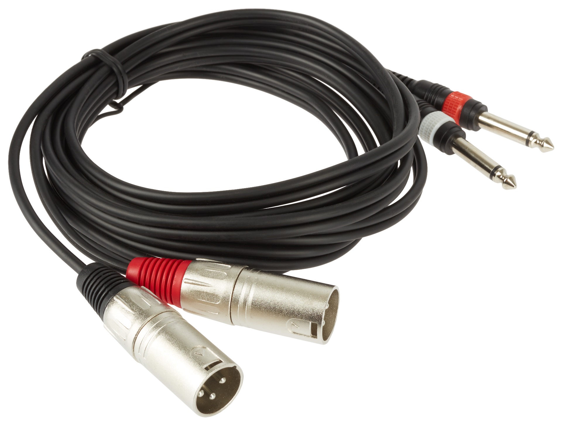 Spájací kábel Vysokokvalitný audio kábel s poniklovanými konektormi je vyrobený z prvotriednych materiálov. Ponúka čistý a neskreslený prenos signálu, vhodný pre nahrávacie štúdiá a hi-fi aplikácie. Konektory obsahujú farebné krúžky na jednoduché rozlíšenie.