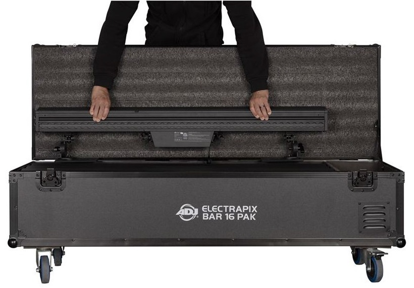 Svetelná zostava Táto sada osvetlenia bola navrhnutá tak, aby vám poskytla všetko, čo potrebujete na vytvorenie dokonalého osvetlenia. Obsahuje štyri LED lišty ElectraPix Bar 16, špeciálne vyrobený prepravný kufor, štyri napájacie základne na nabíjanie svietidiel, infračervený ovládač a napájací kábel. Prepravný kufor má rozmery 1443 x 460 x 498 mm a s lištami váži 87 kg. LED lišta ElectraPix Bar 16 od ADJ je ultra flexibilné osvetlenie, kt