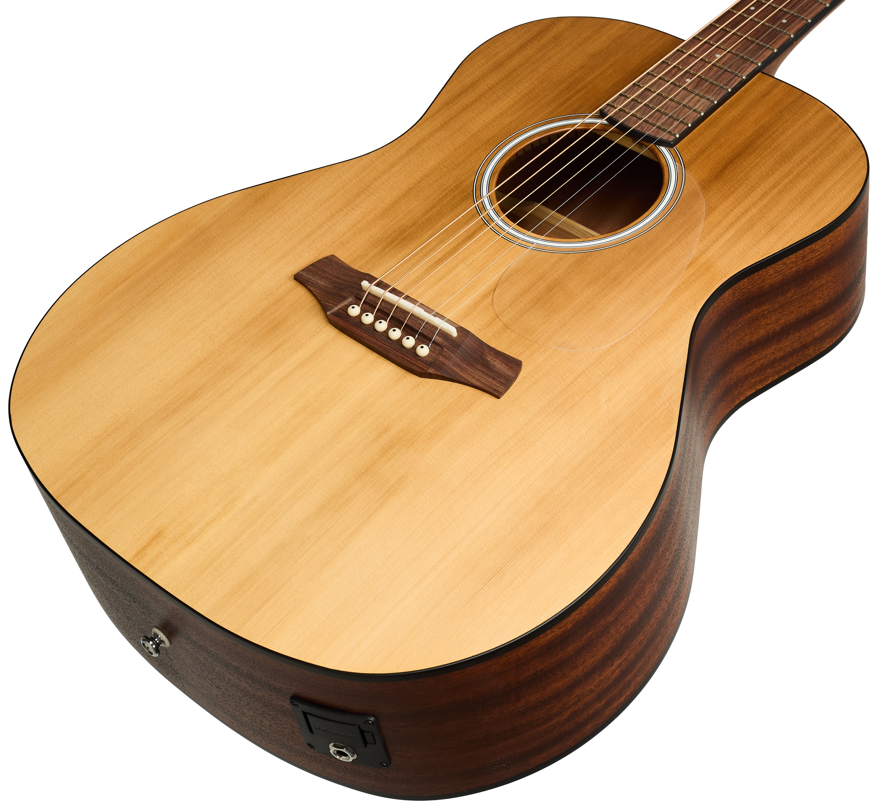 Elektroakustická gitara Elektroakustická gitara GE50-CM od Adler Guitars je nástroj s moderným tvarom Grand Auditorium, vhodný ako pre hru prstami, tak aj trsátkom. Vrchná doska gitary je vyrobená z masívneho cédru, zatiaľ čo zadná doska a bočnice sú vyrobené z laminovaného mahagónu. Mahagónový krk je vybavený hmatníkom z pau ferro. Polohové bodky z imitácie perlete uľahčujú orientáciu na hmatníku. Elektronika Fishman Presys II</str